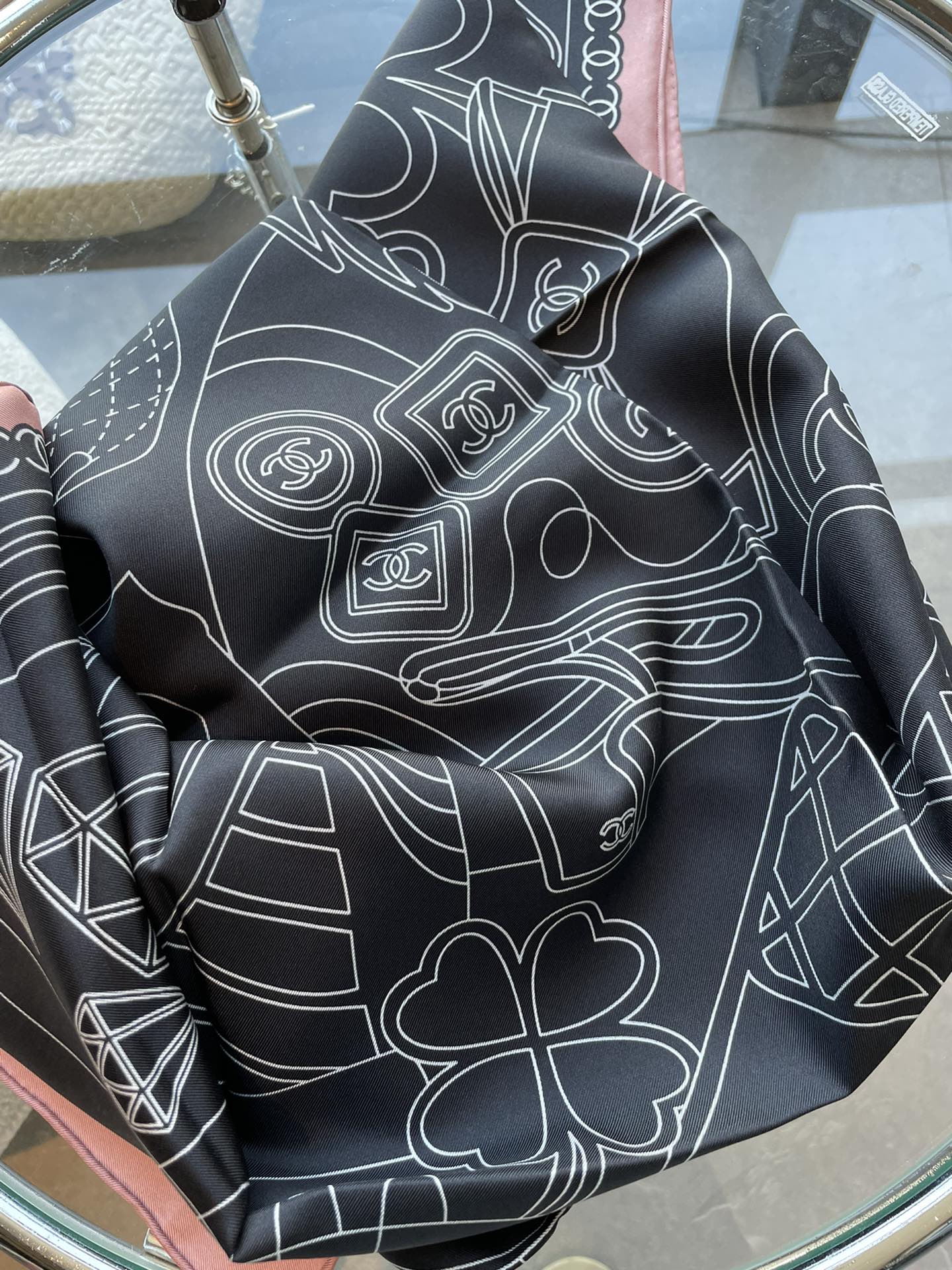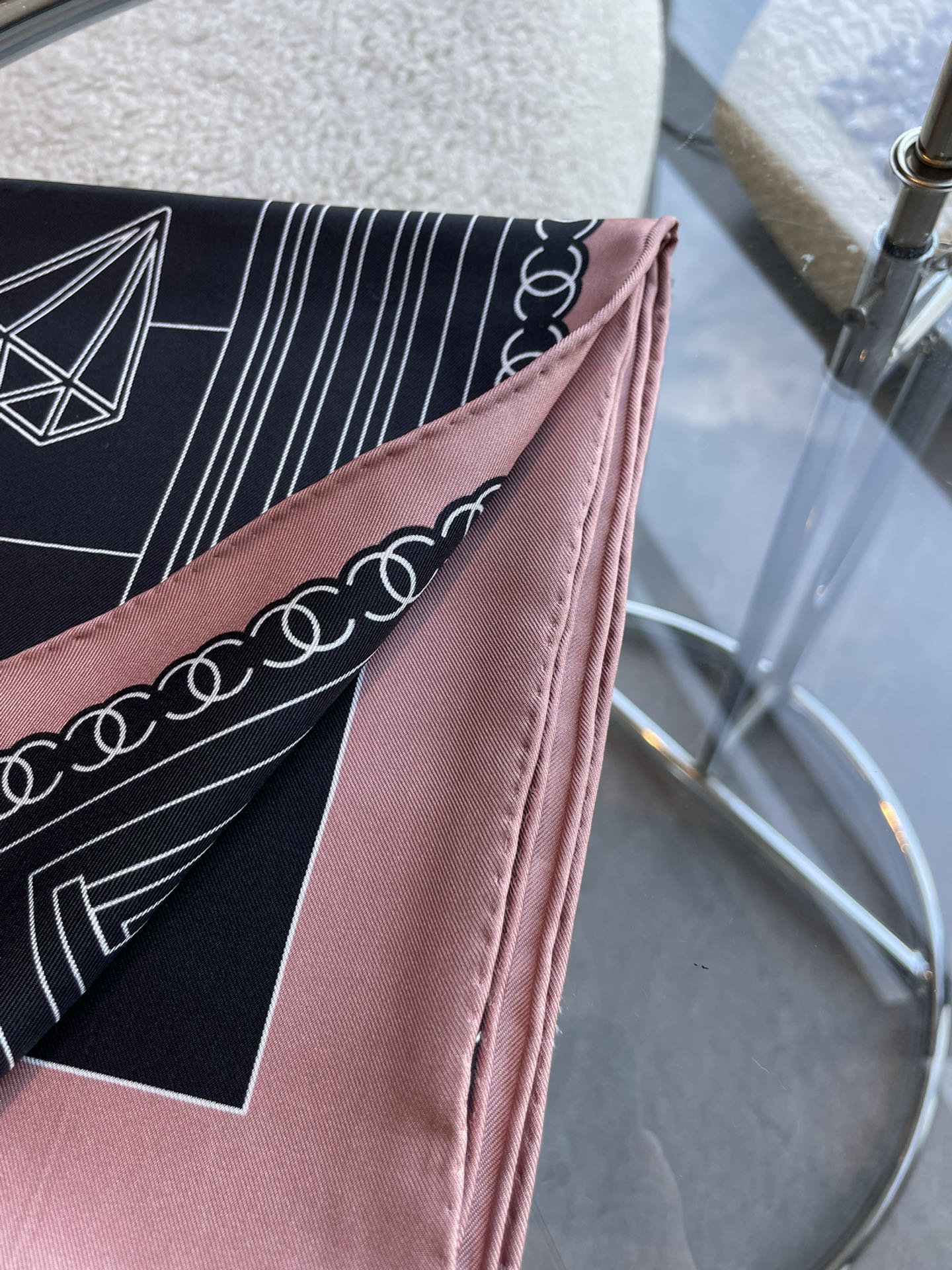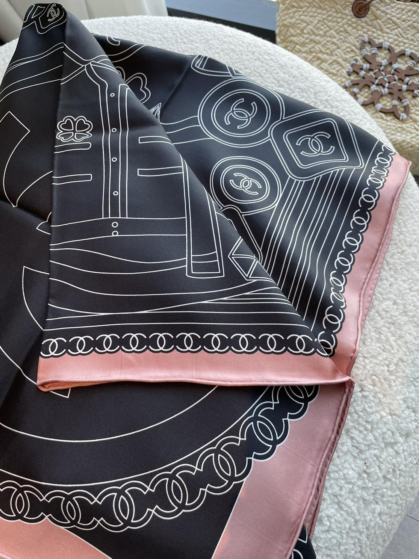 CC Square Scarf 90 CM In Black Mix White Pink Cashmere Silk 288707