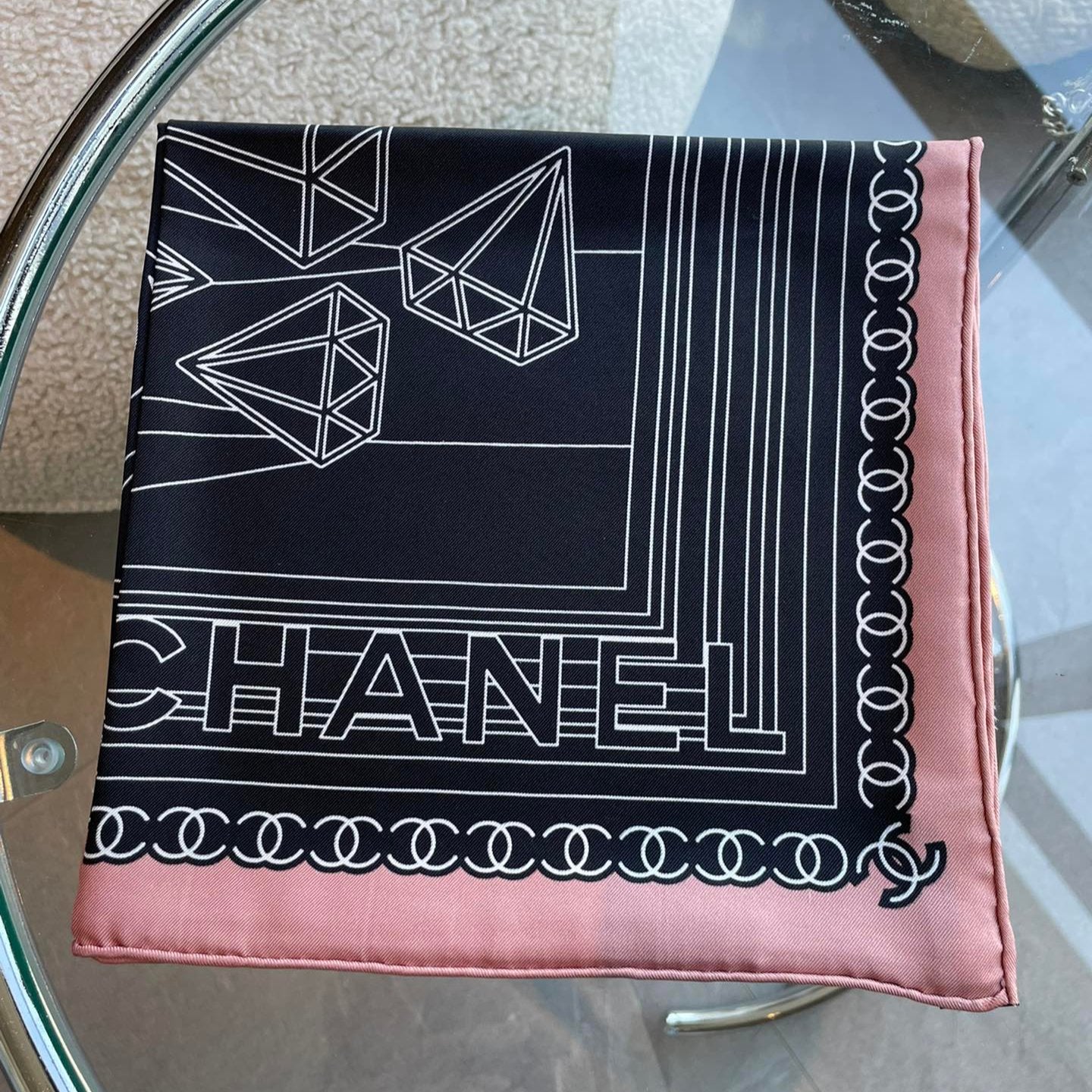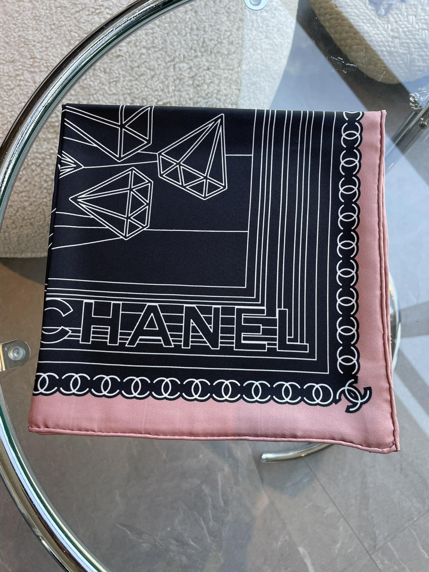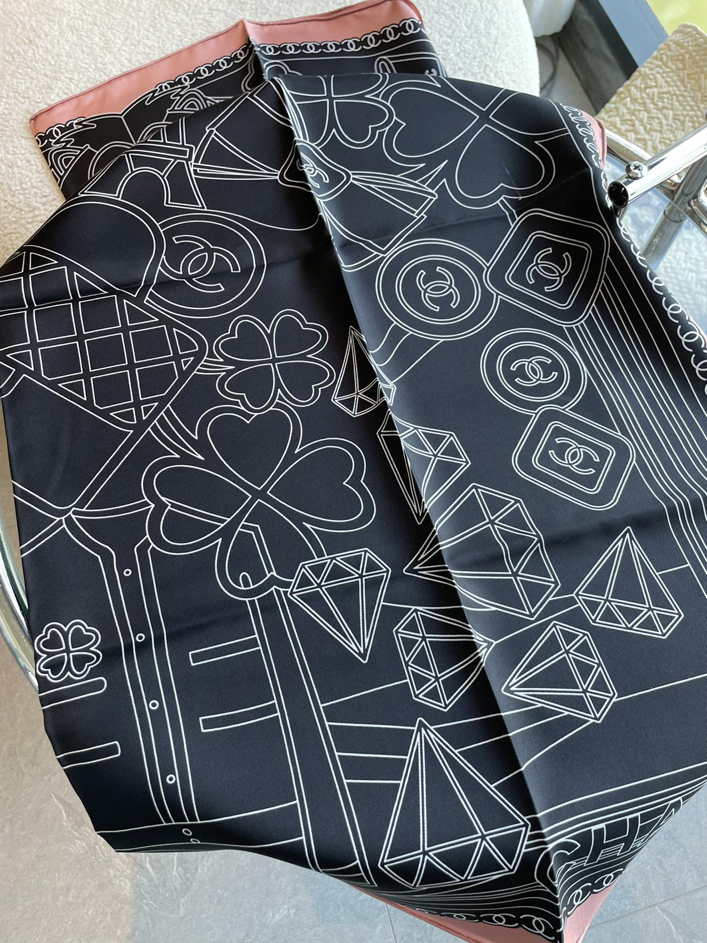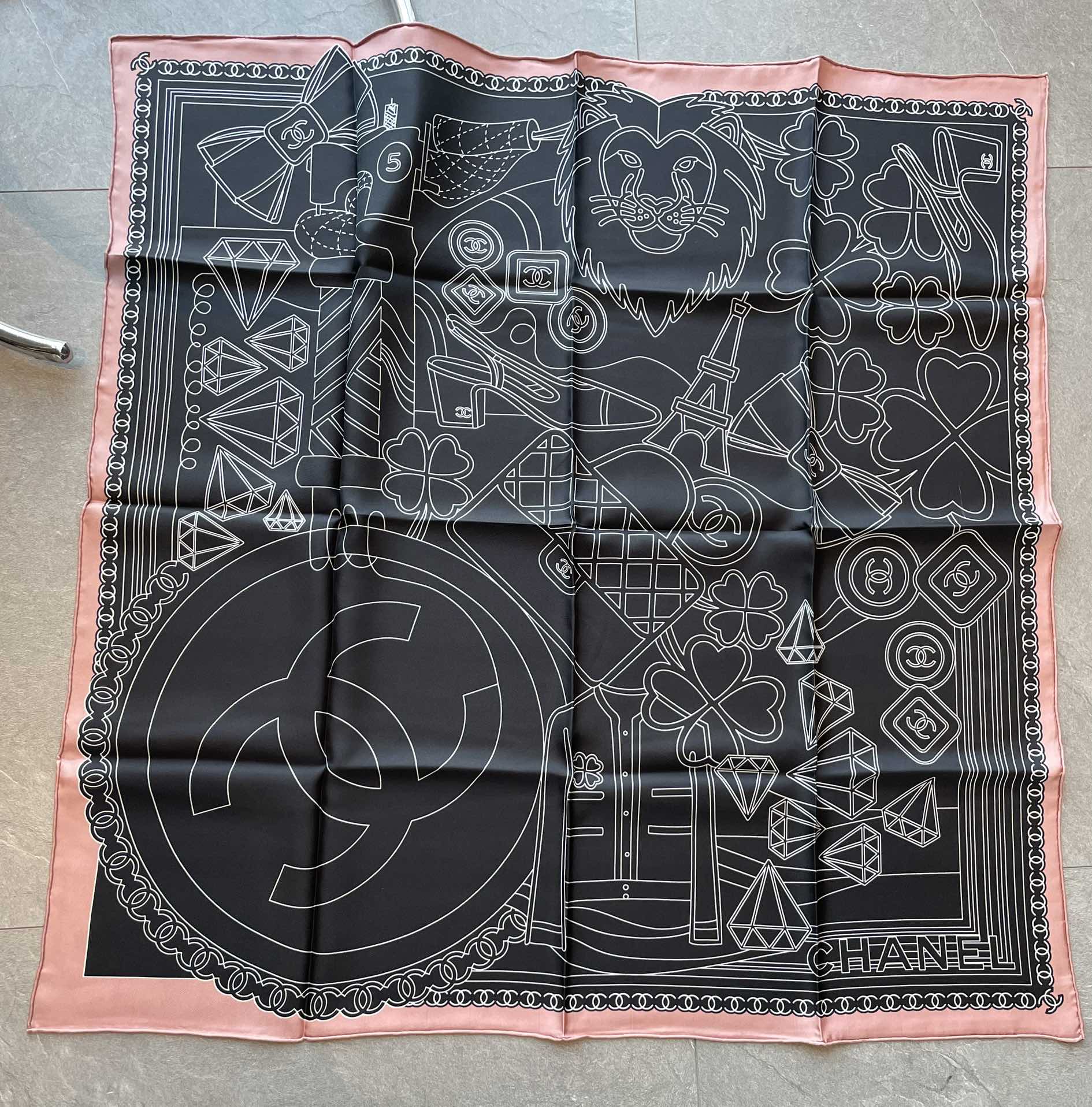 CC Square Scarf 90 CM In Black Mix White Pink Cashmere Silk 288707