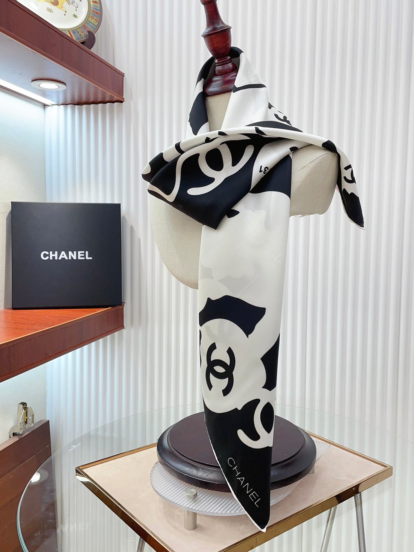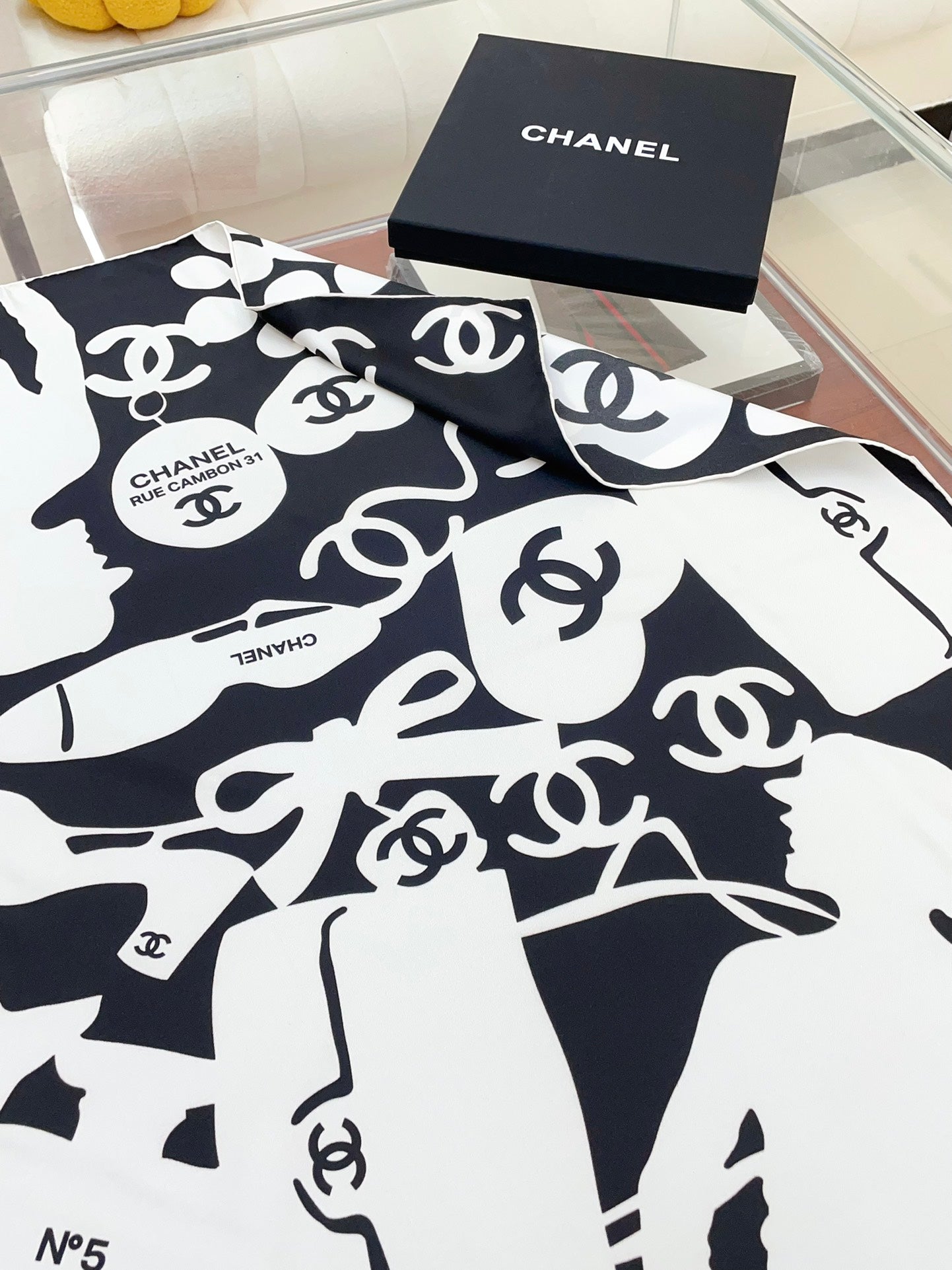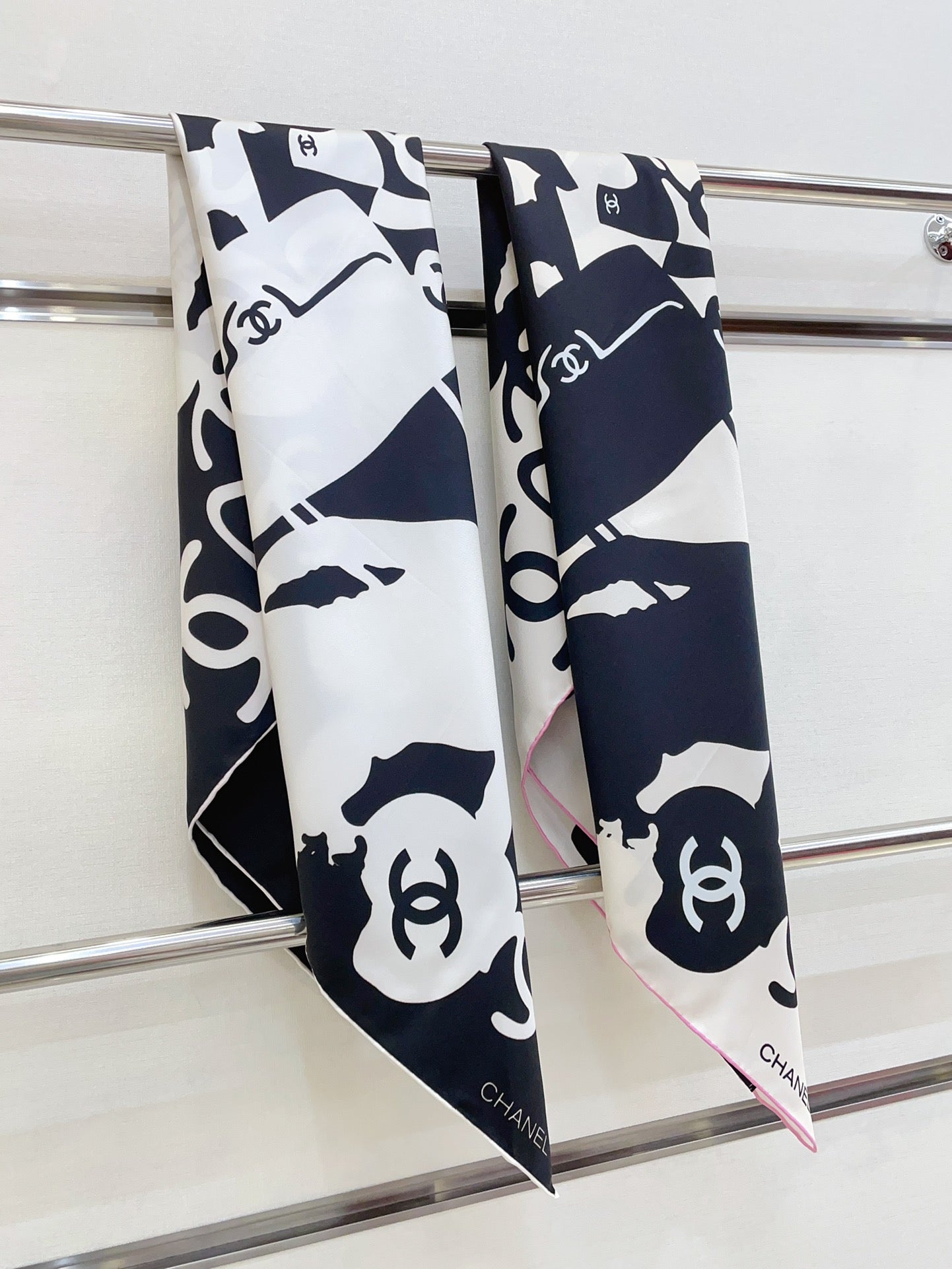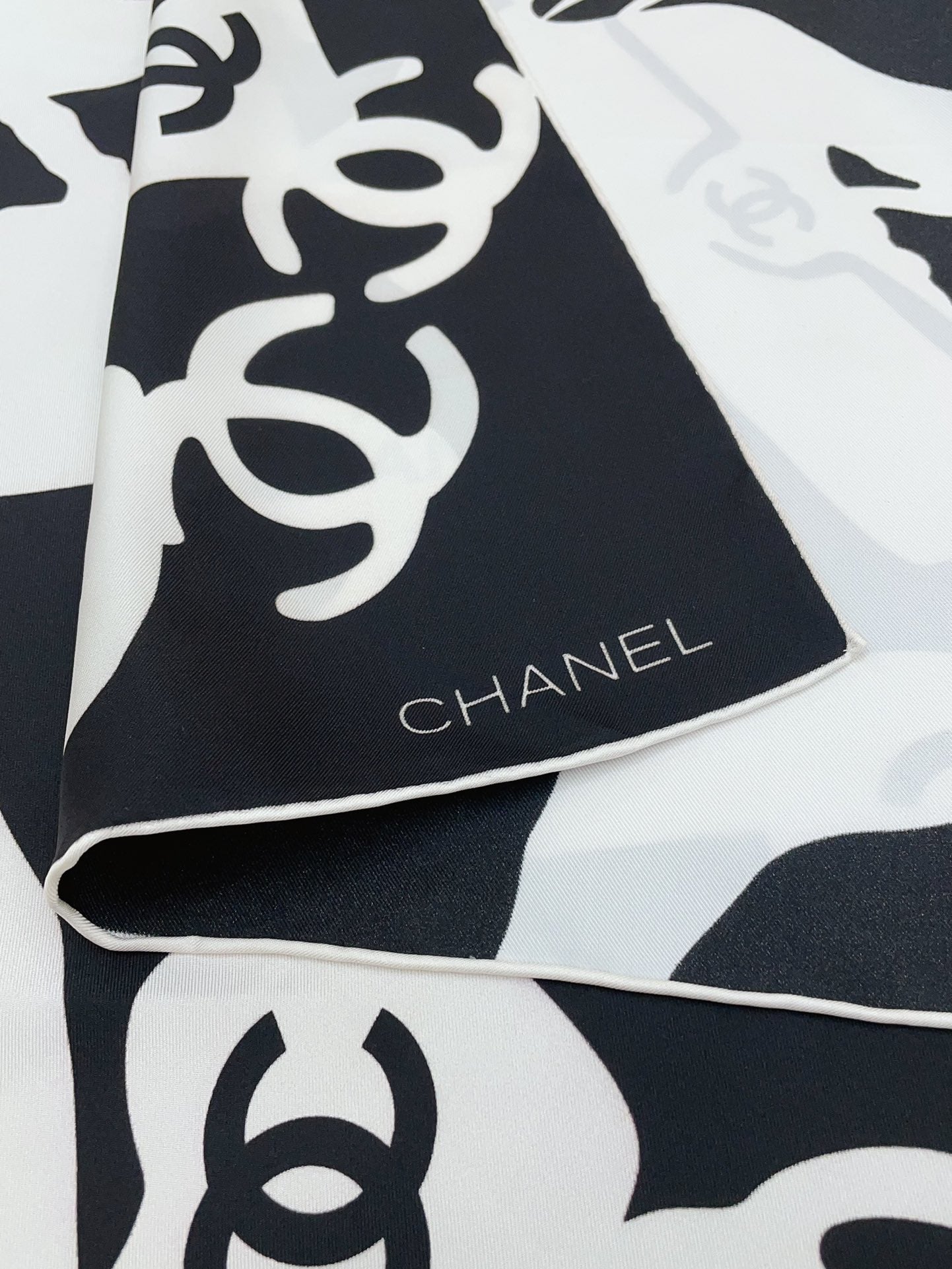CC Square Scarf 90 CM In Black Mix White Silk 305181