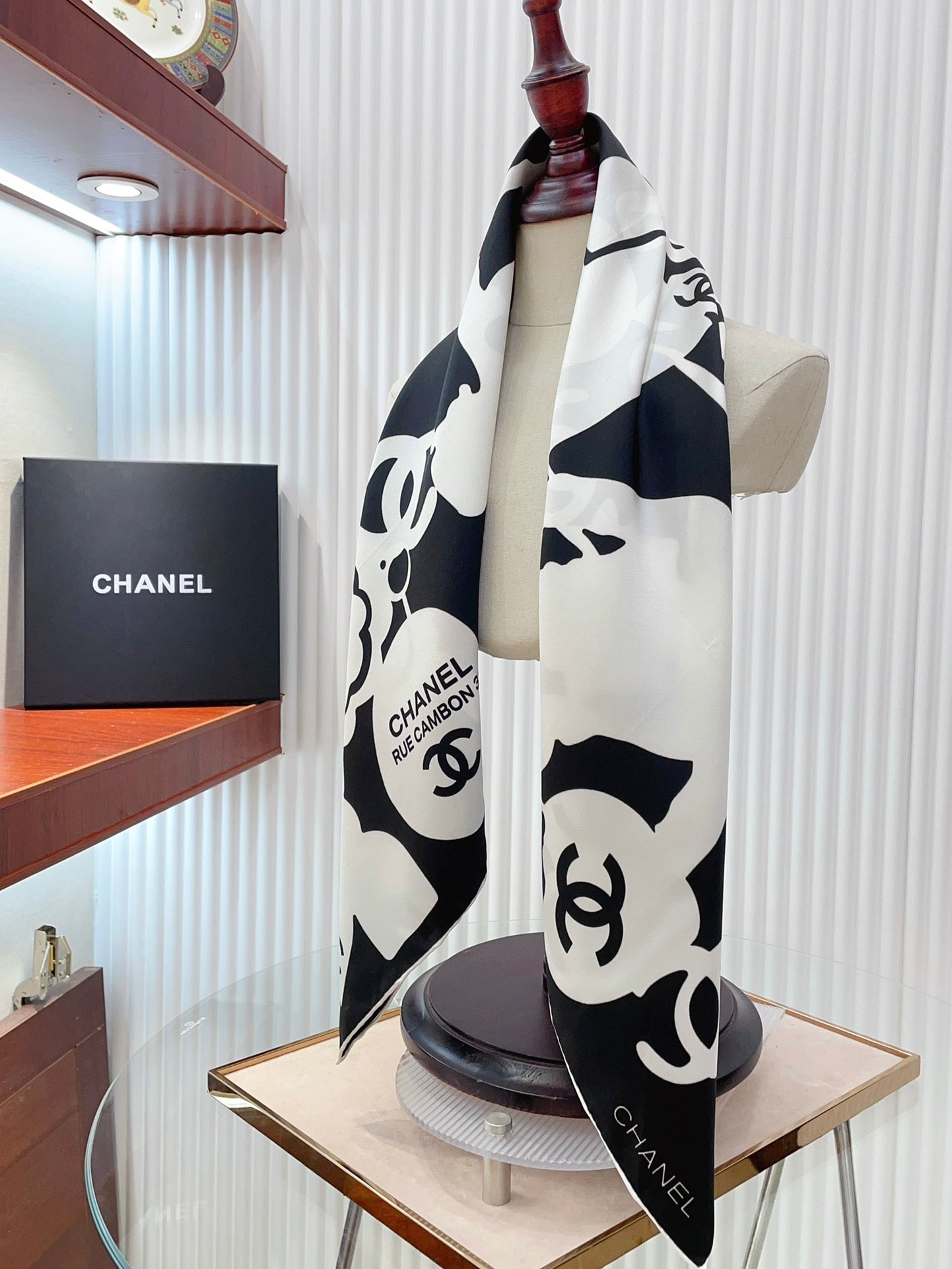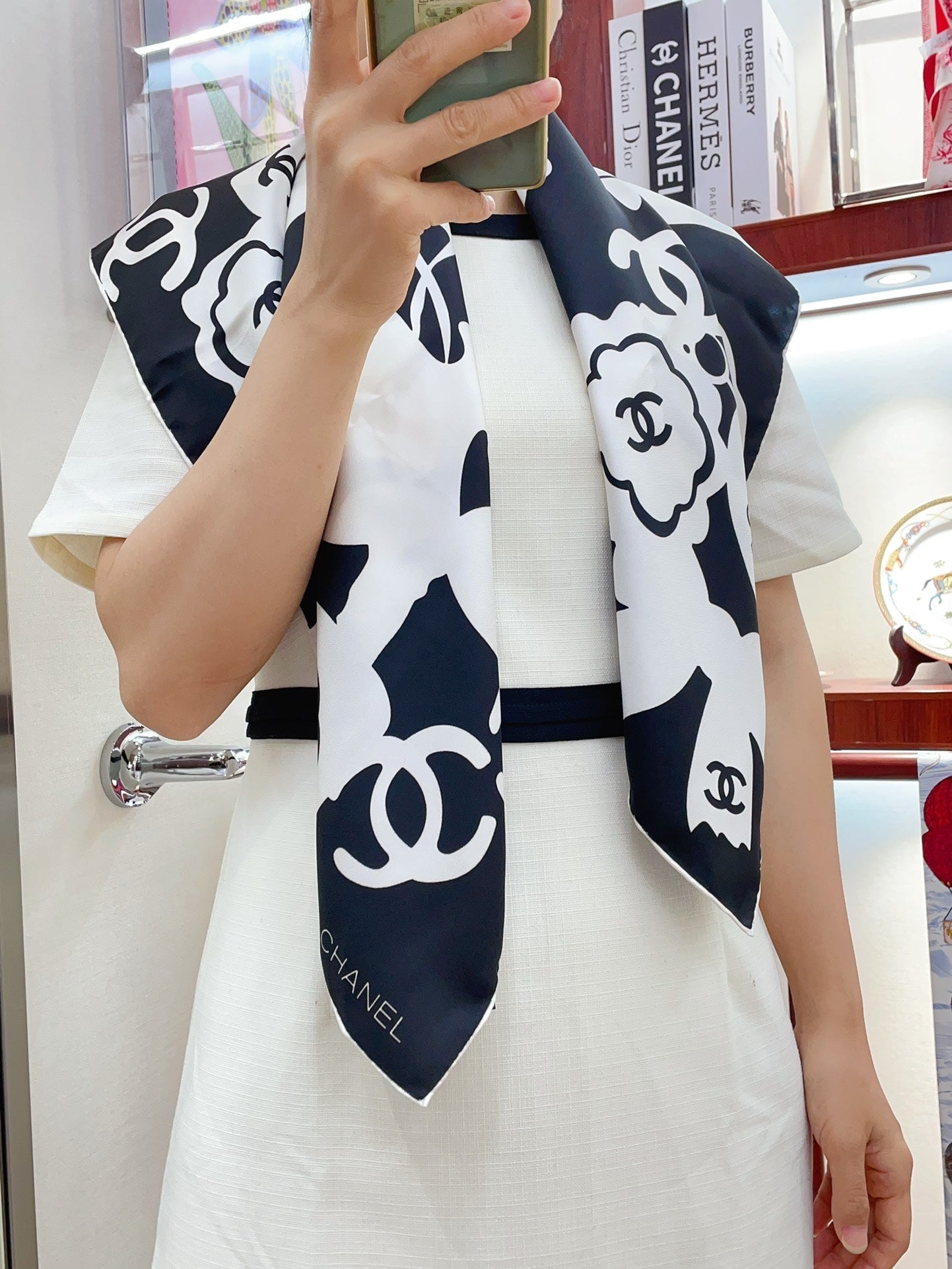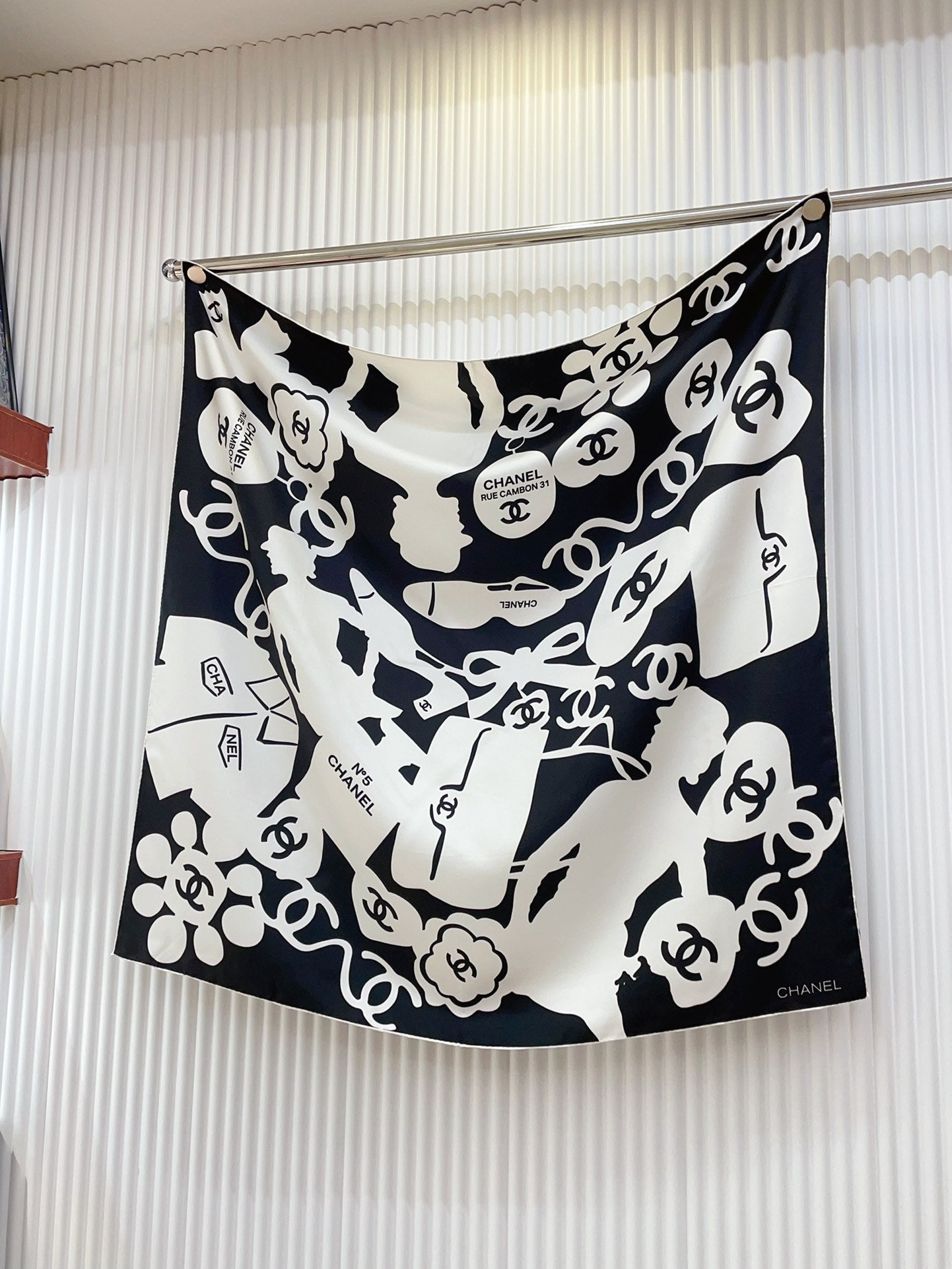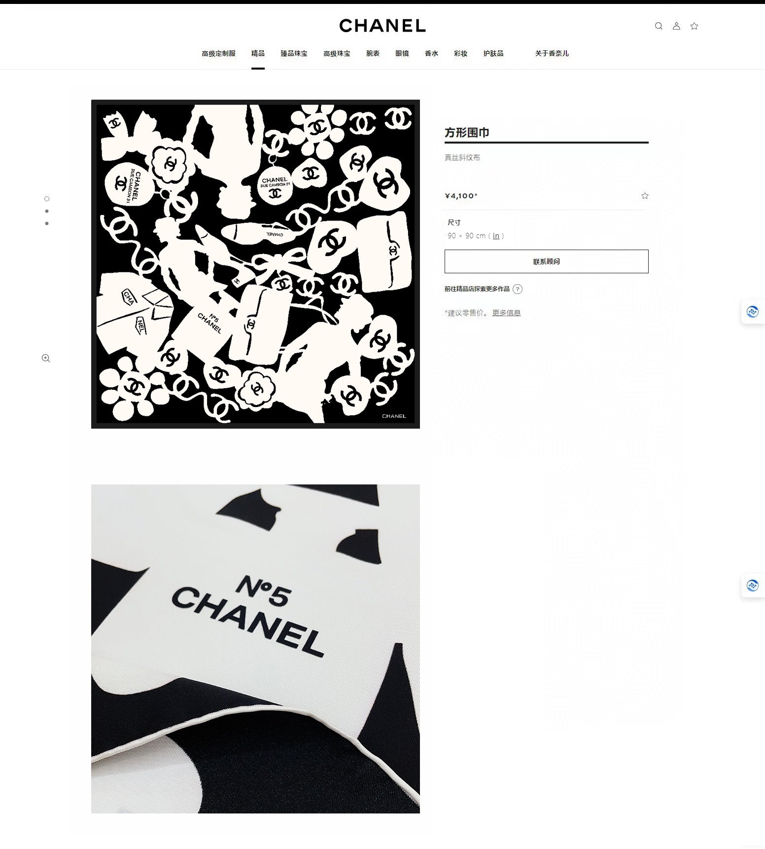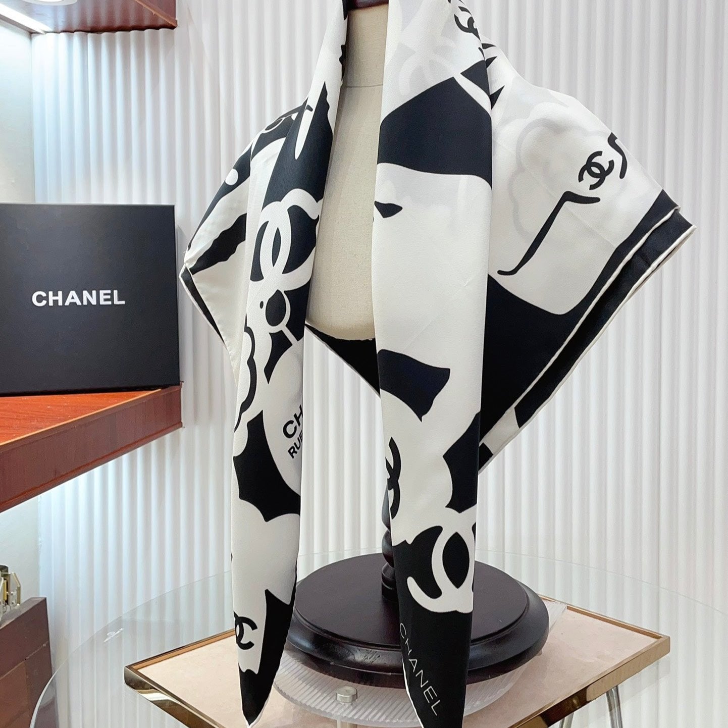 CC Square Scarf 90 CM In Black Mix White Silk 305181