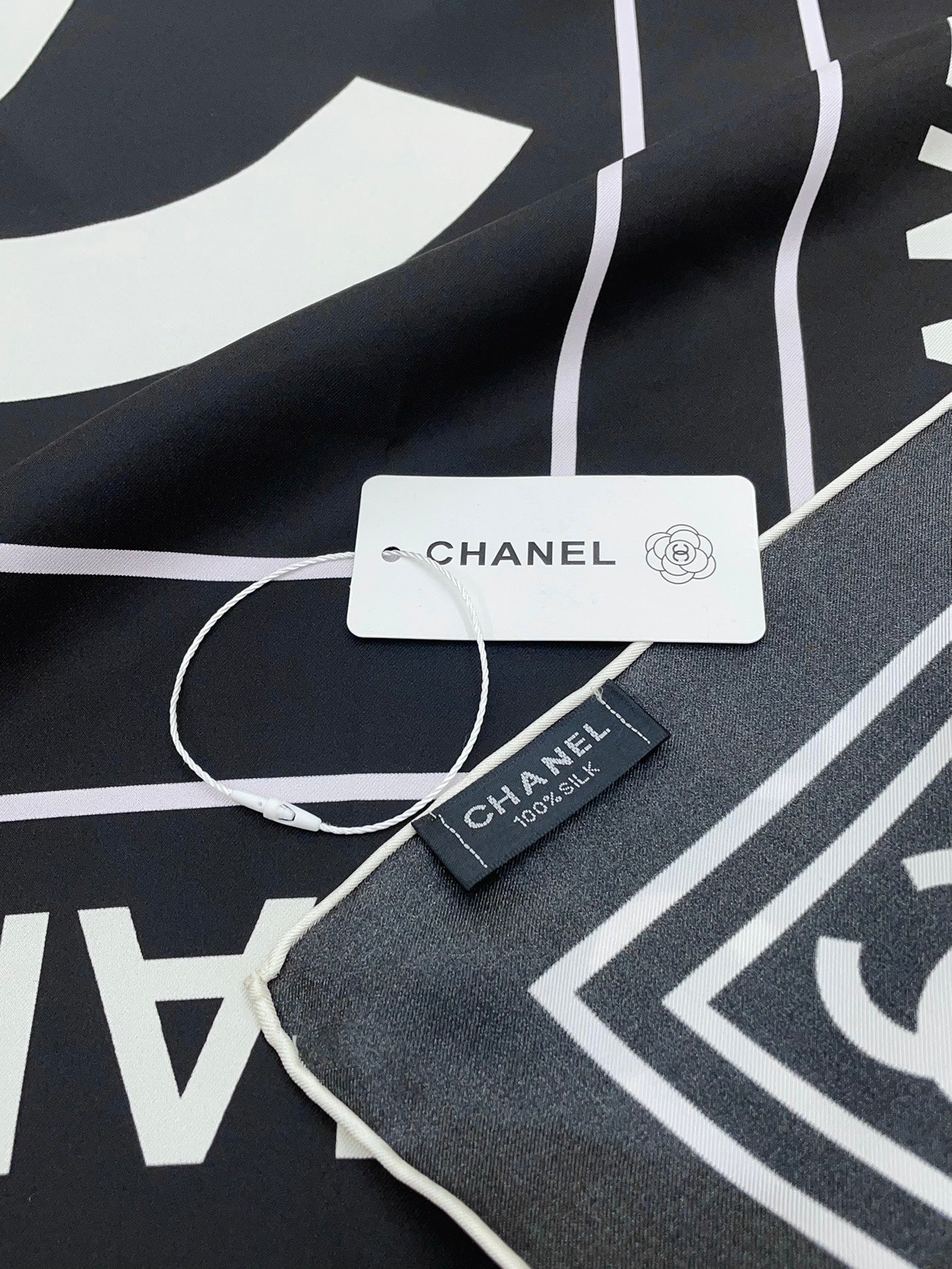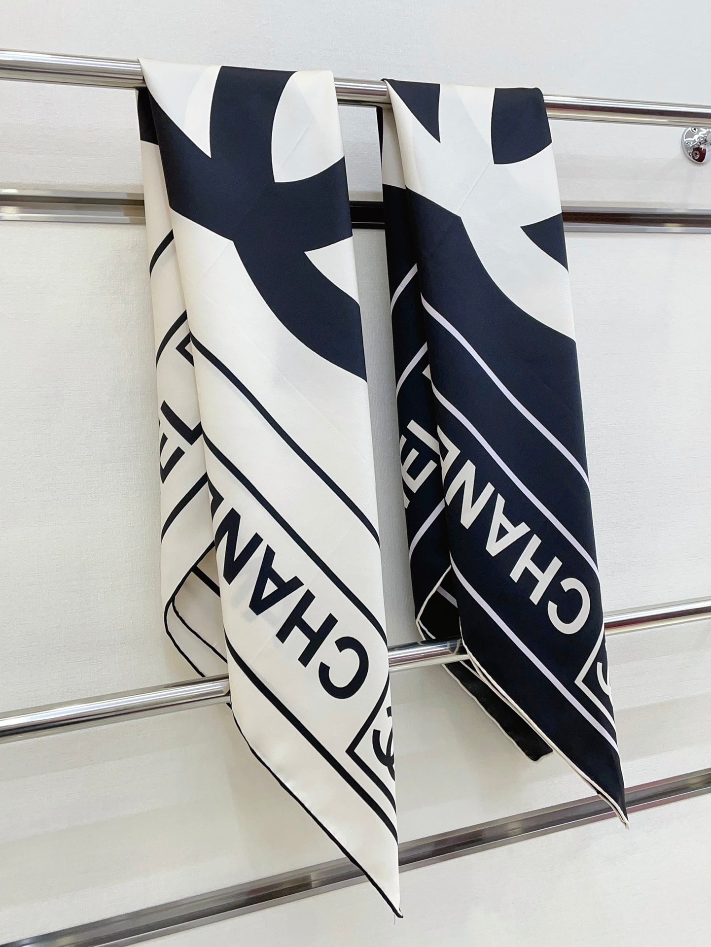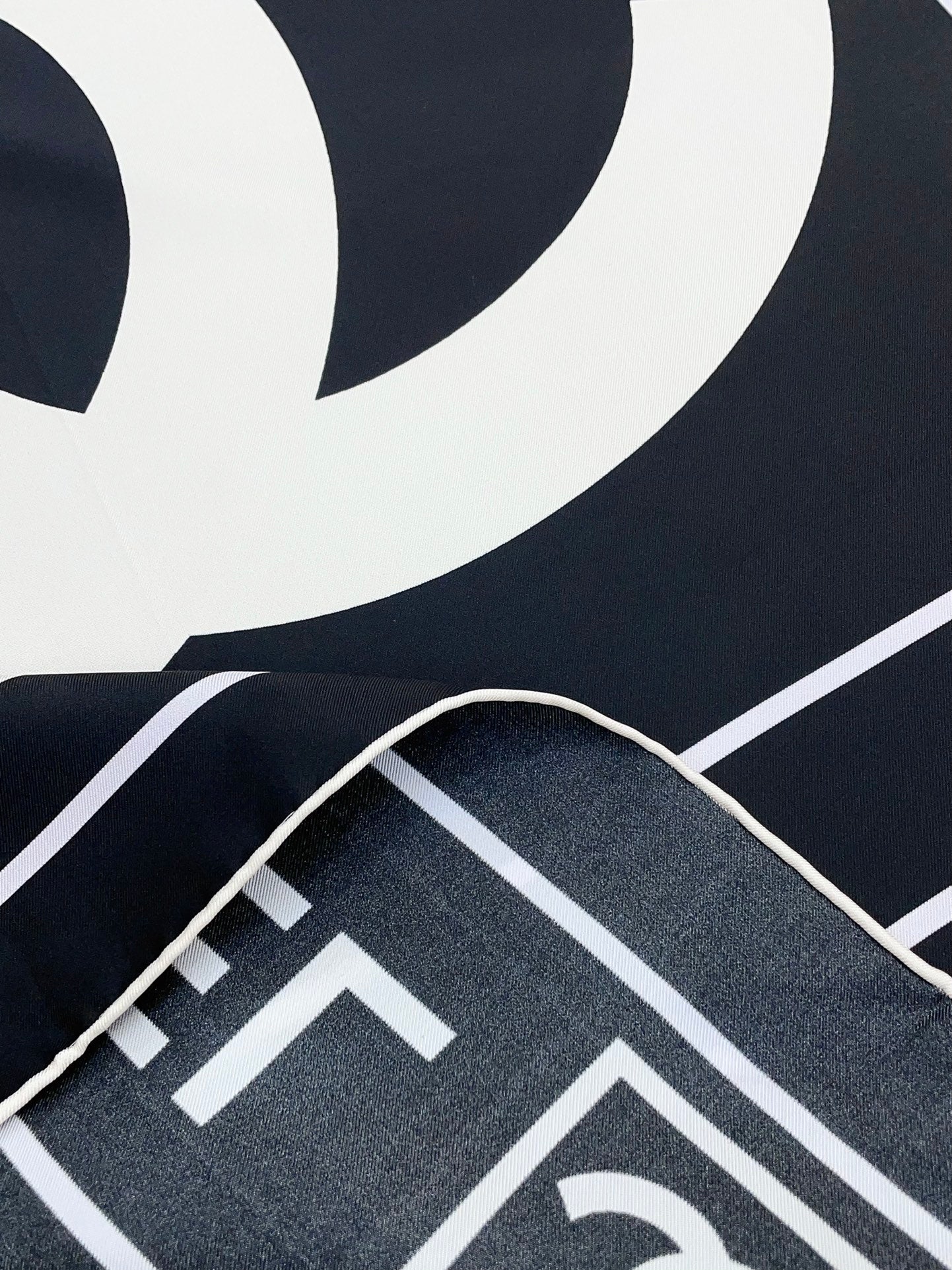 CC Square Scarf 90 CM In Black Mix White Silk Twill 167961