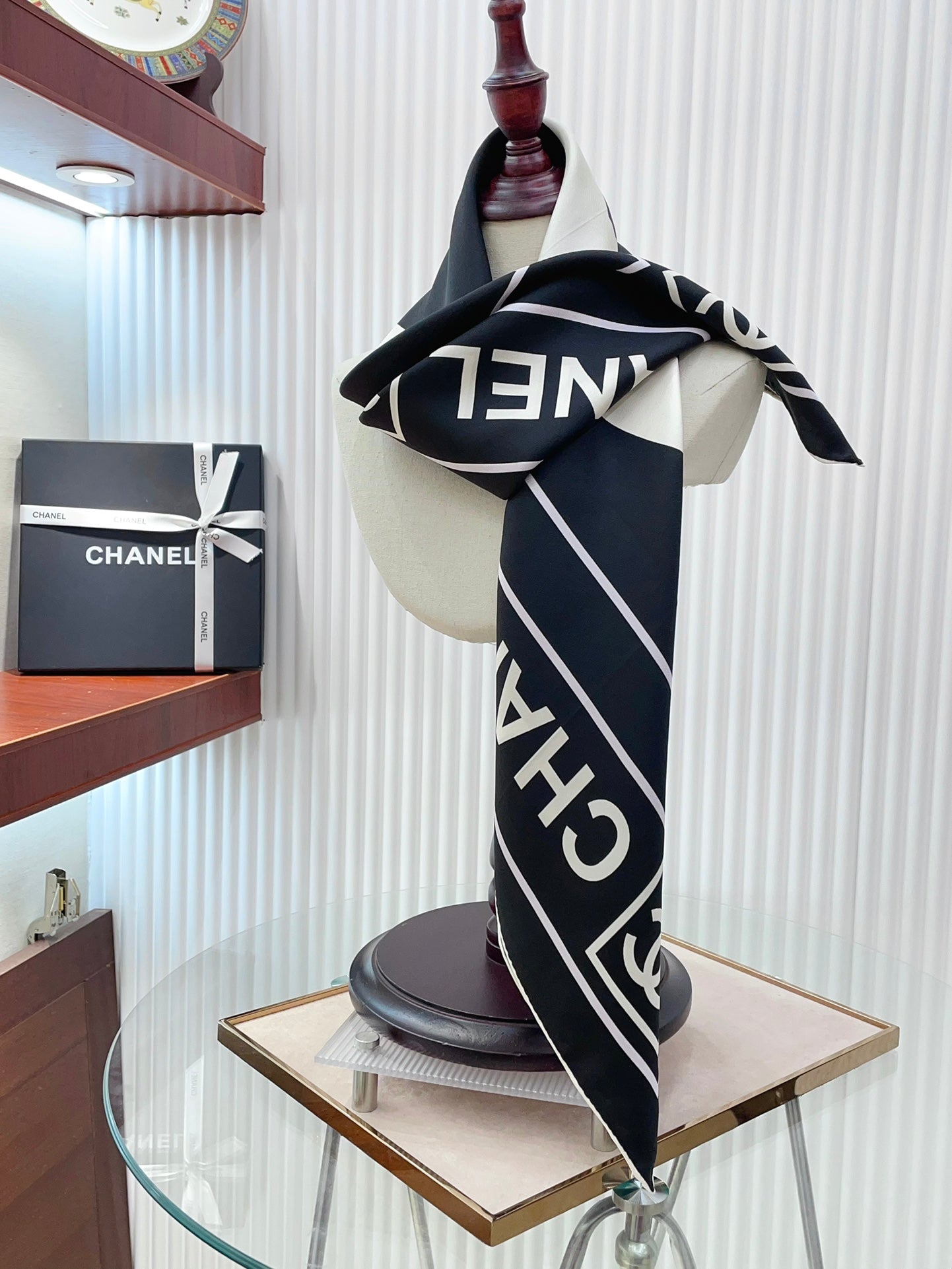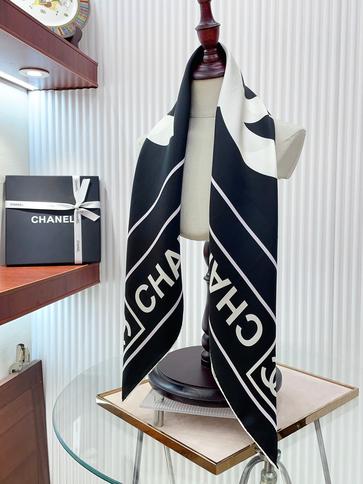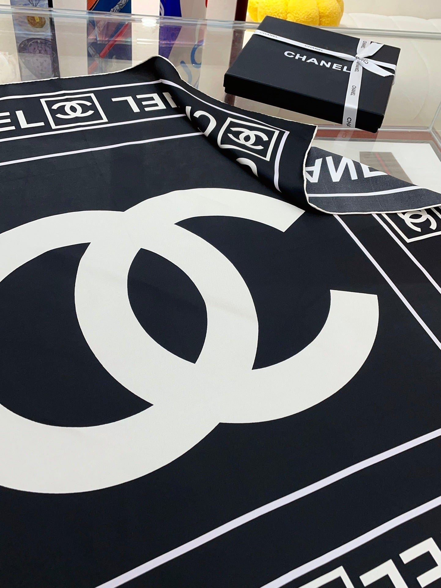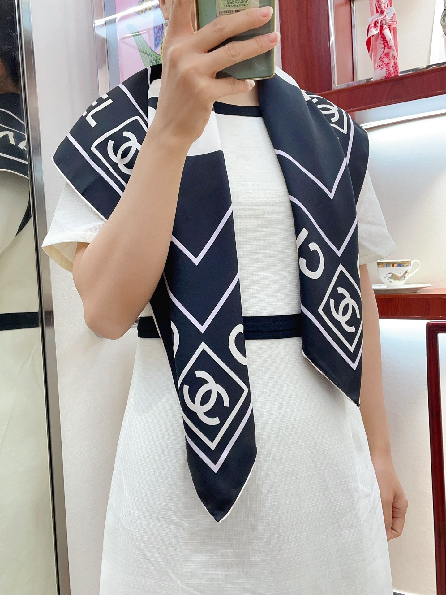 CC Square Scarf 90 CM In Black Mix White Silk Twill 167961