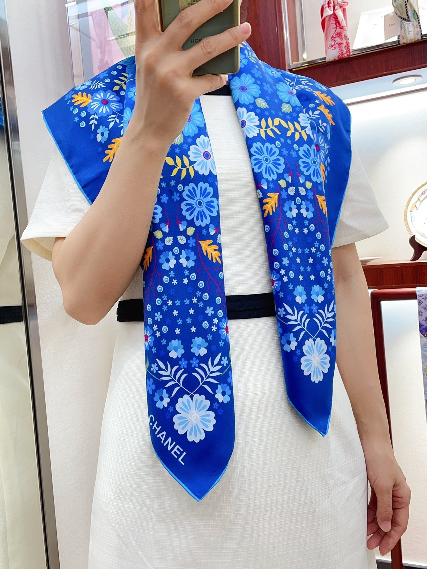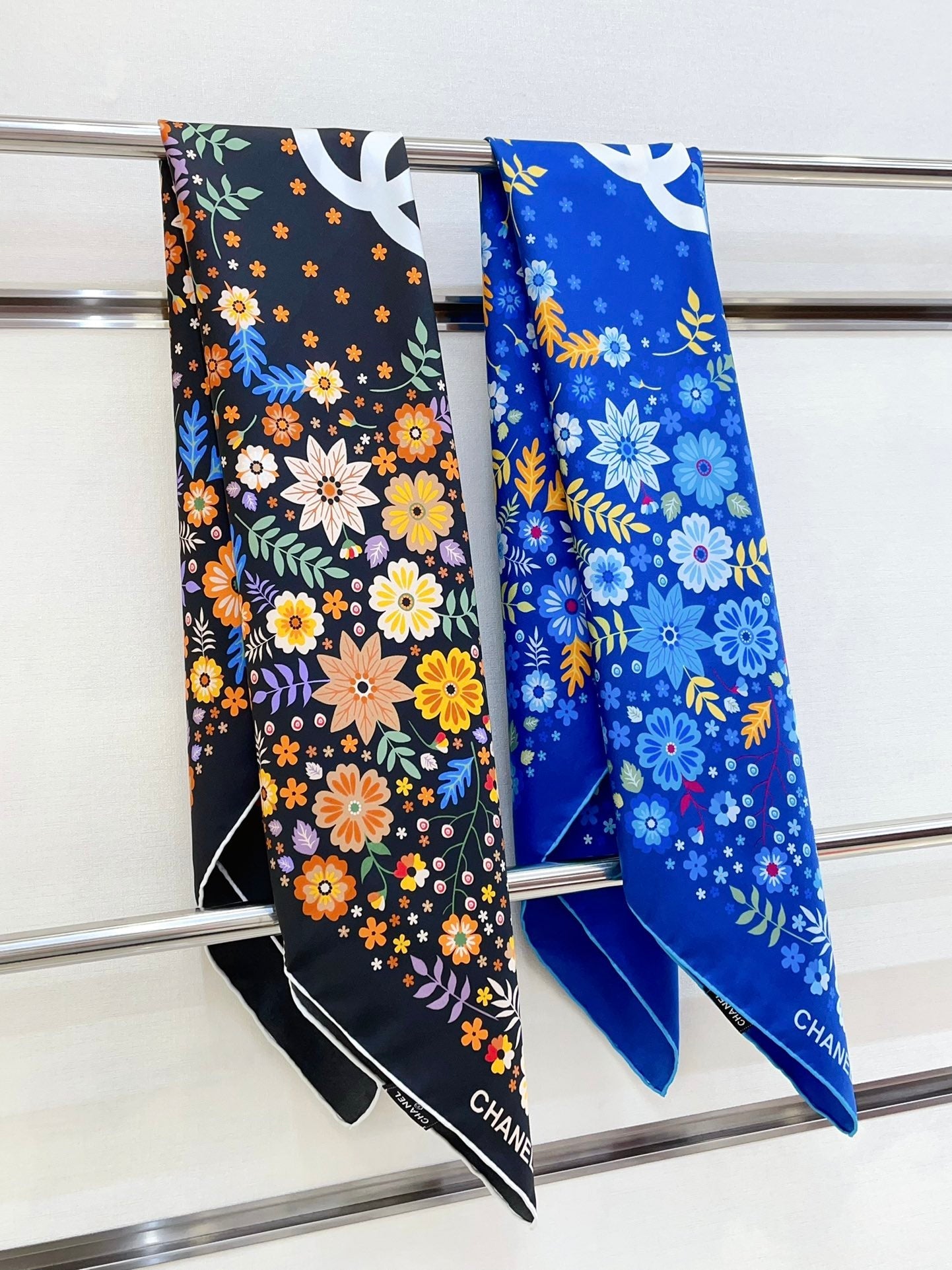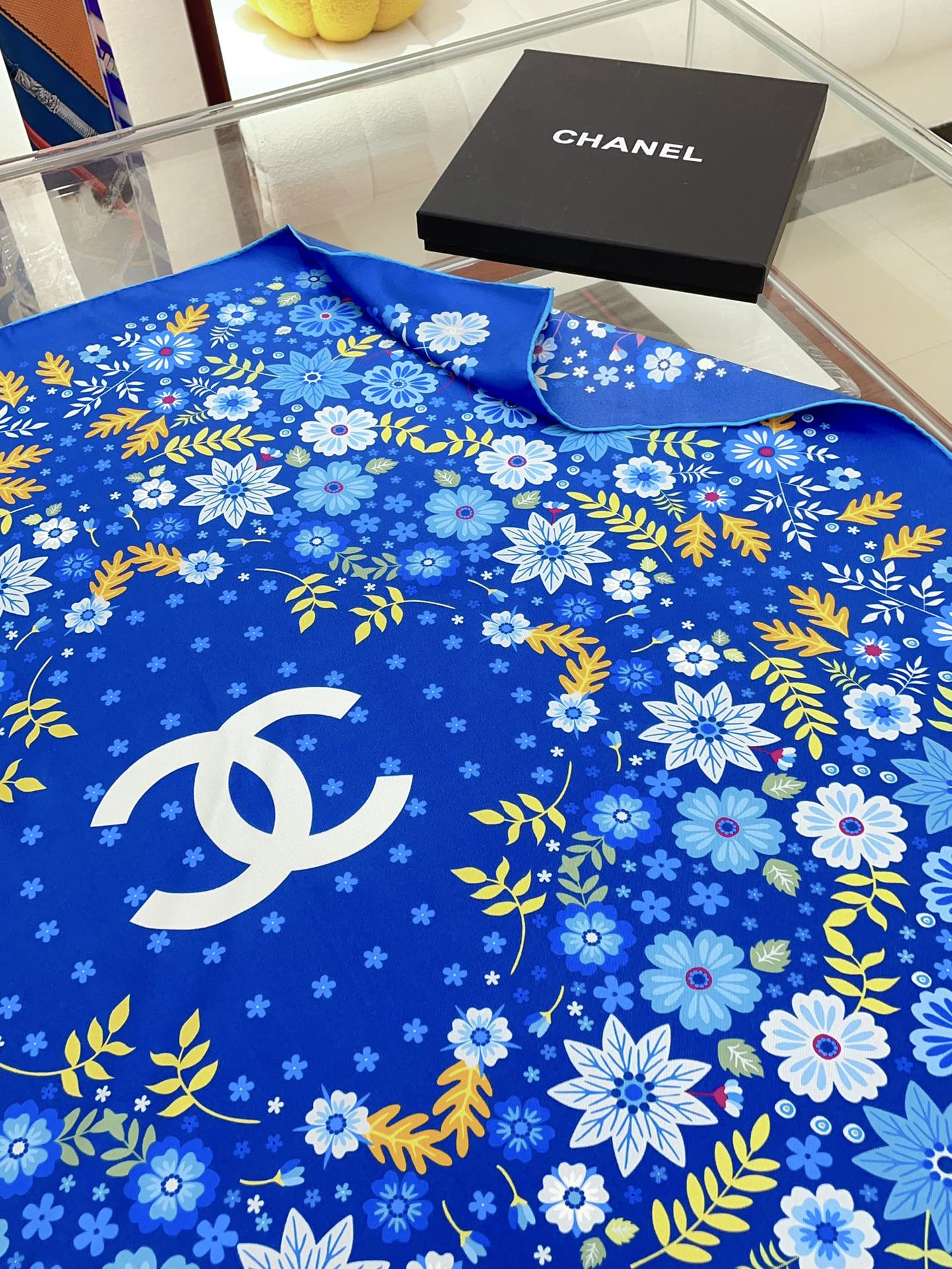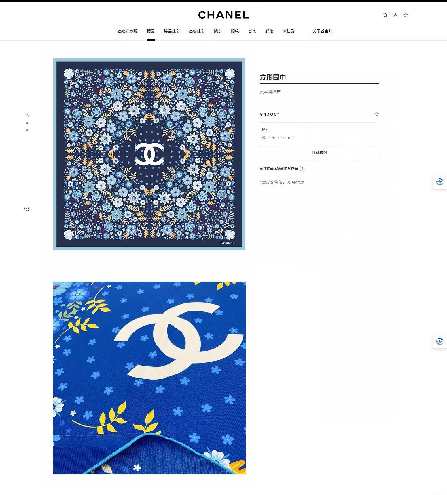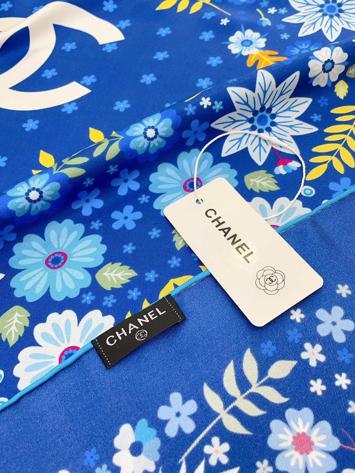 CC Square Scarf 90 CM In Blue Colorful Silk Twill 234598