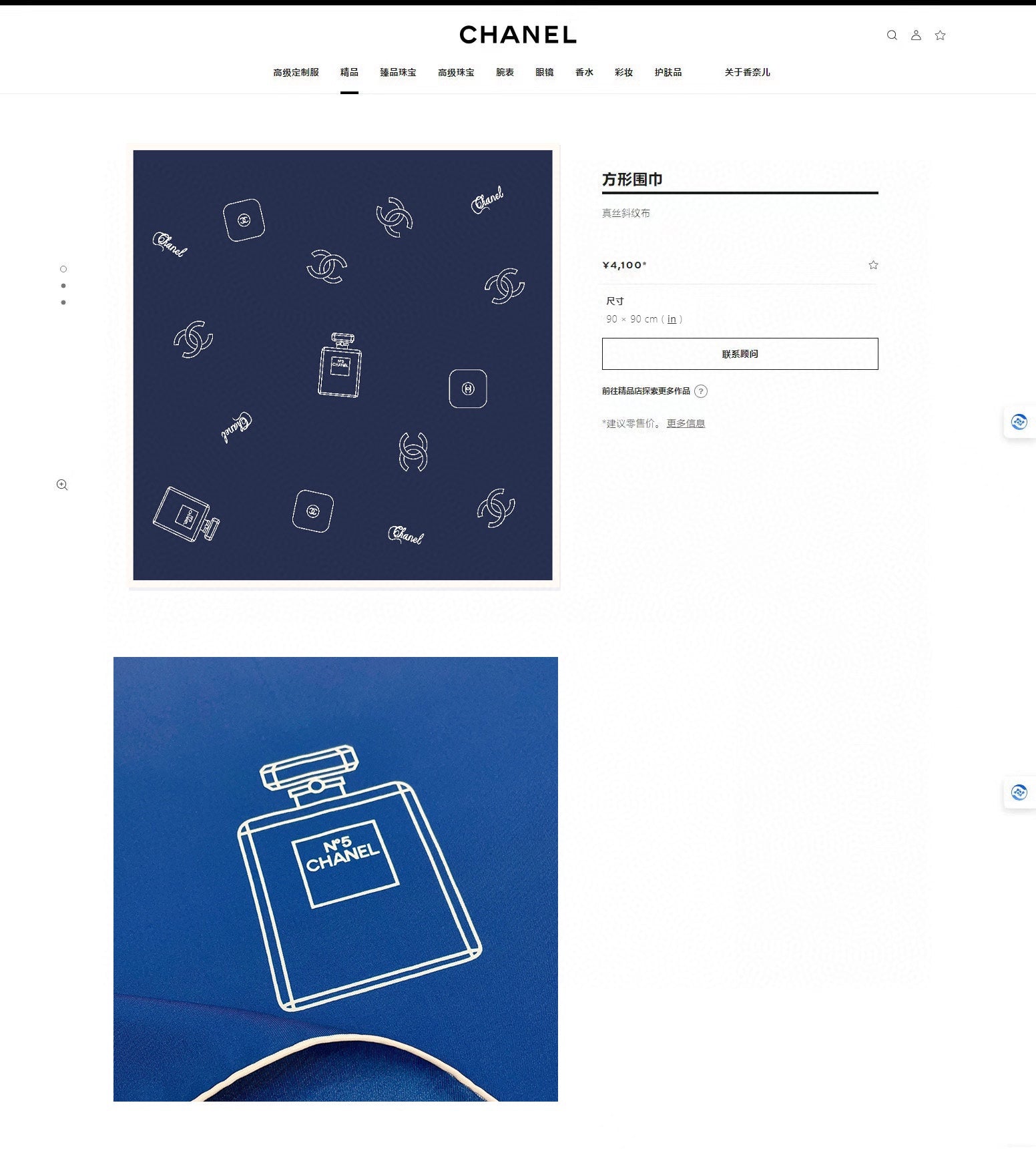 CC Square Scarf 90 CM In Blue Silk Twill 201029