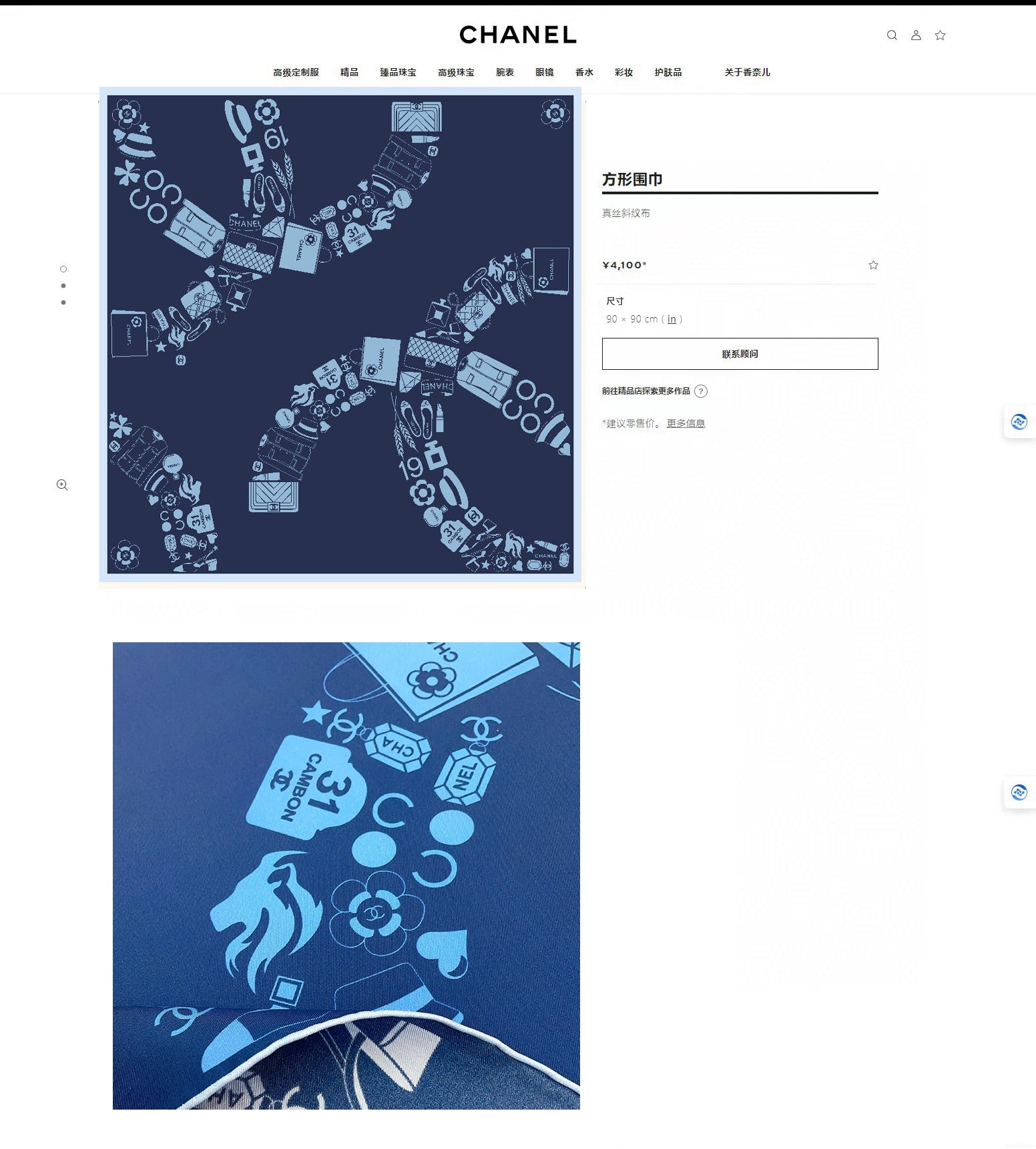 CC Square Scarf 90 CM In Blue Silk Twill 211102