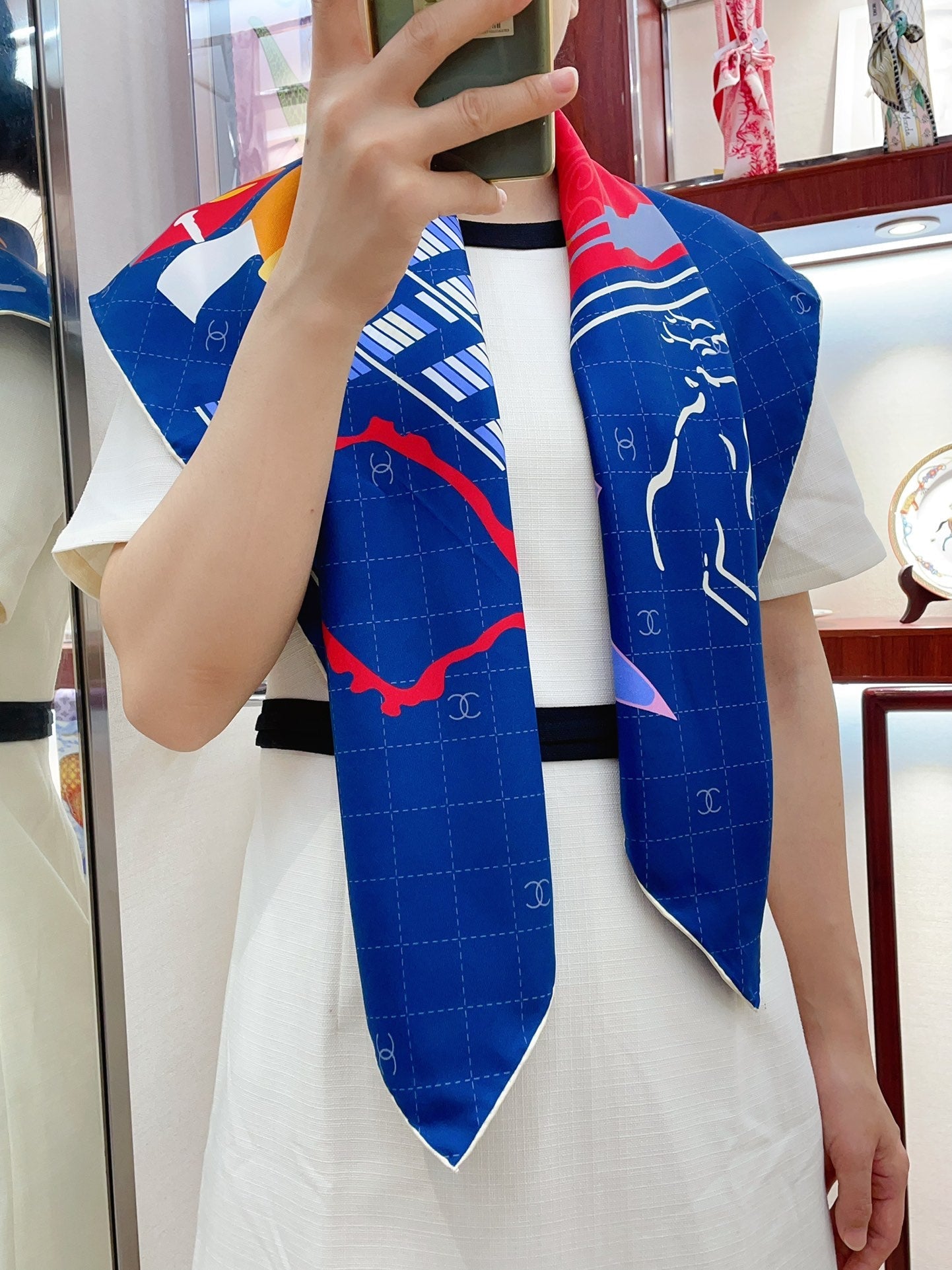 CC Square Scarf 90 CM In Dark Blue Colorful Silk Twill 187427