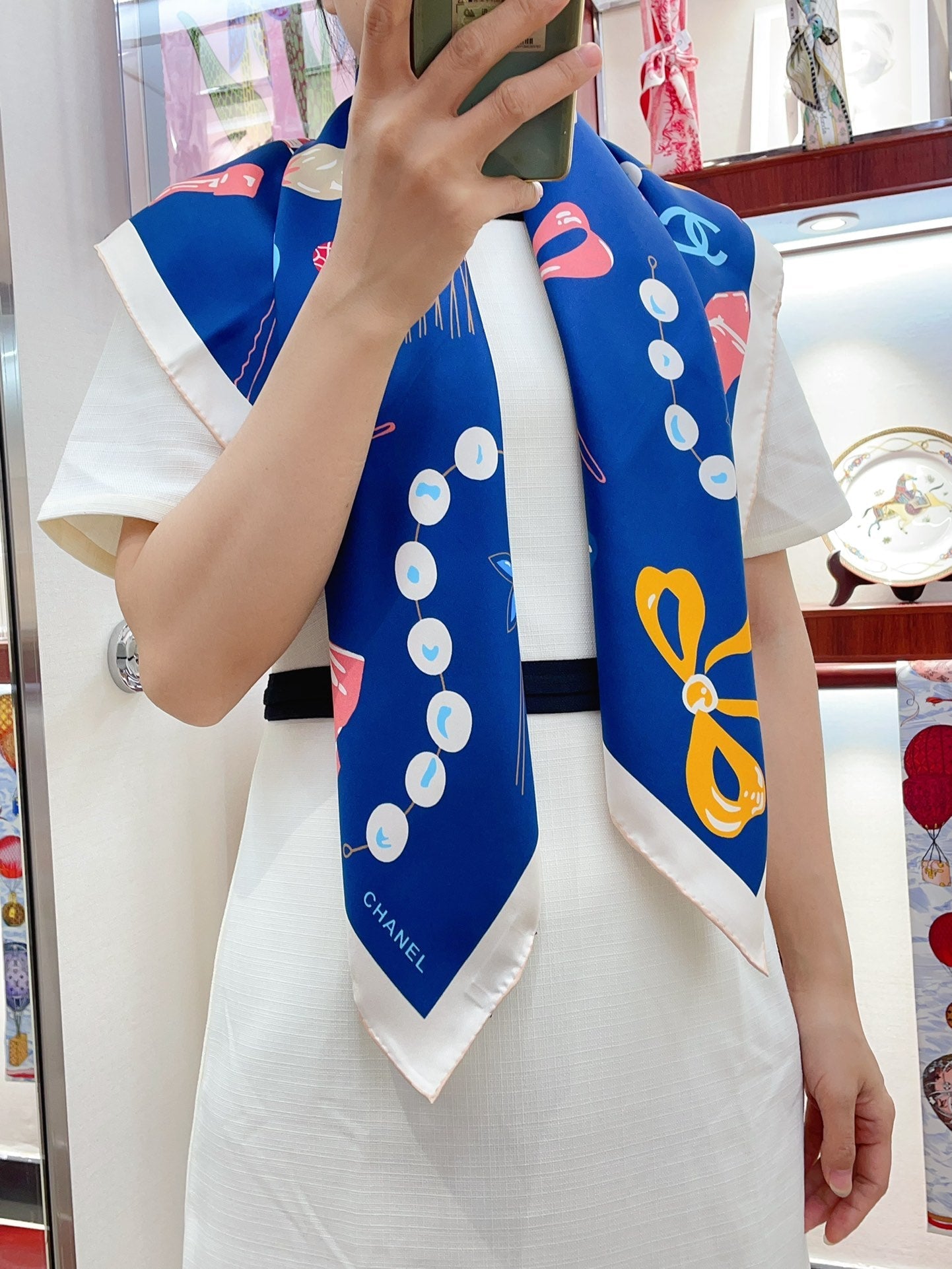 CC Square Scarf 90 CM In Dark Blue Colorful Silk Twill 213690