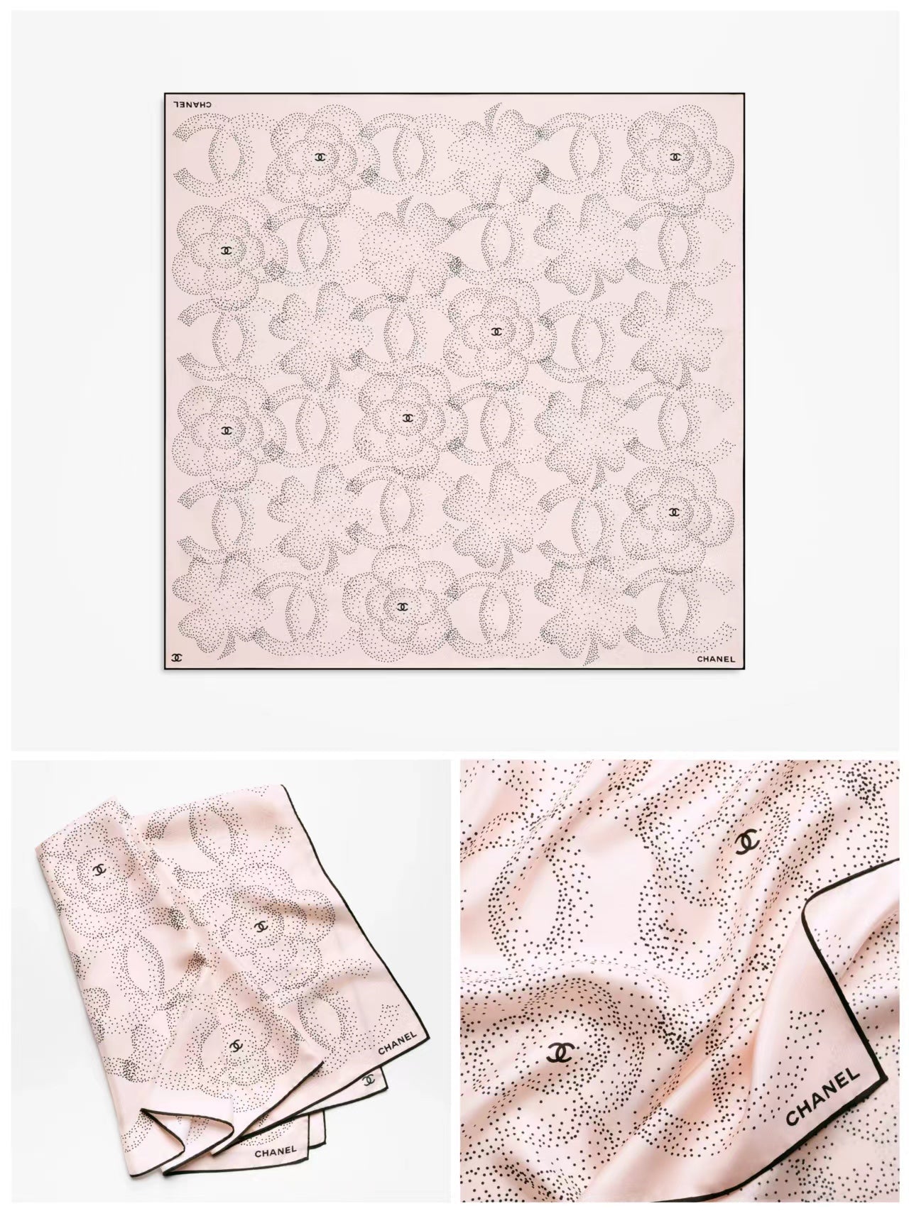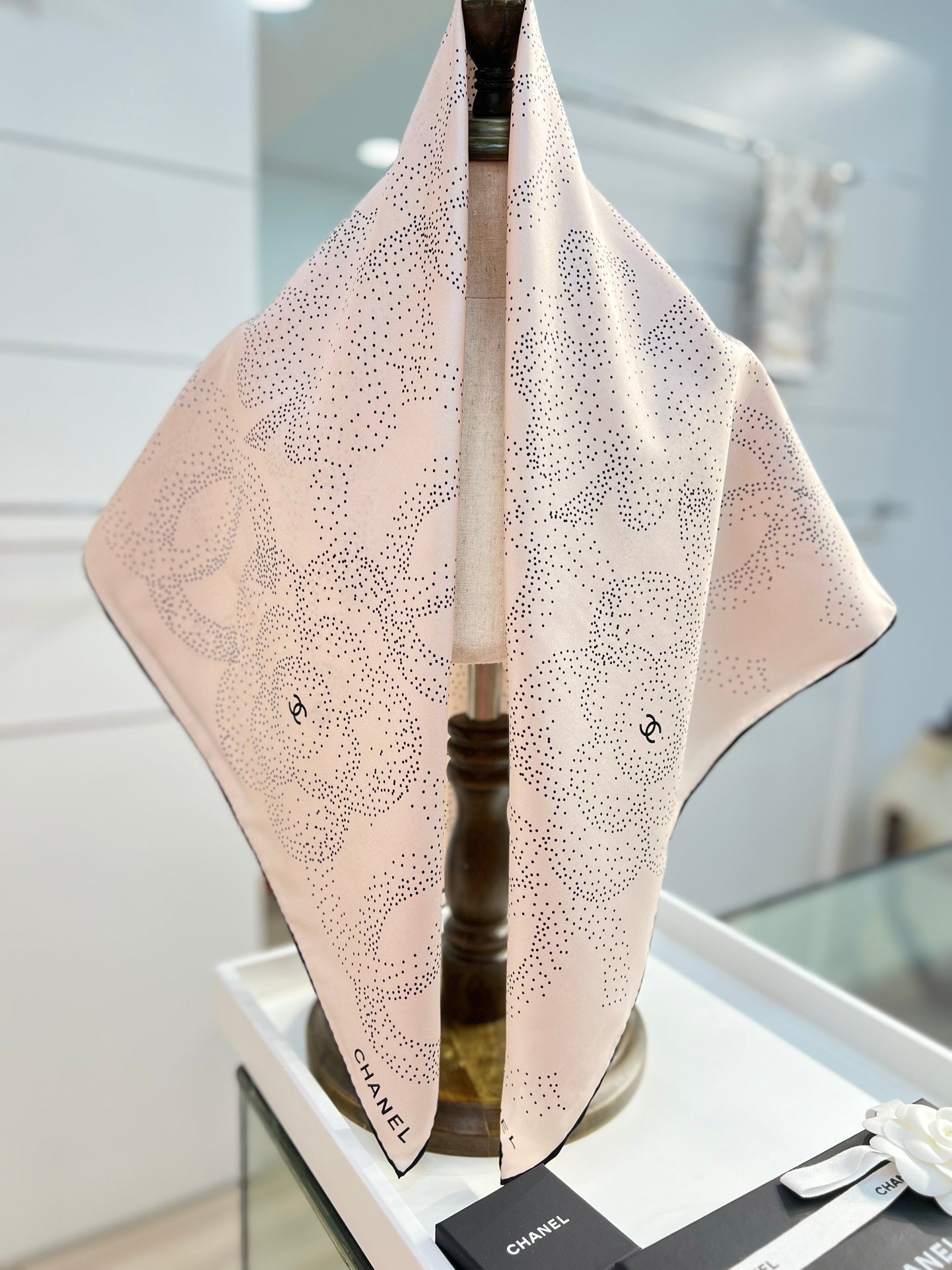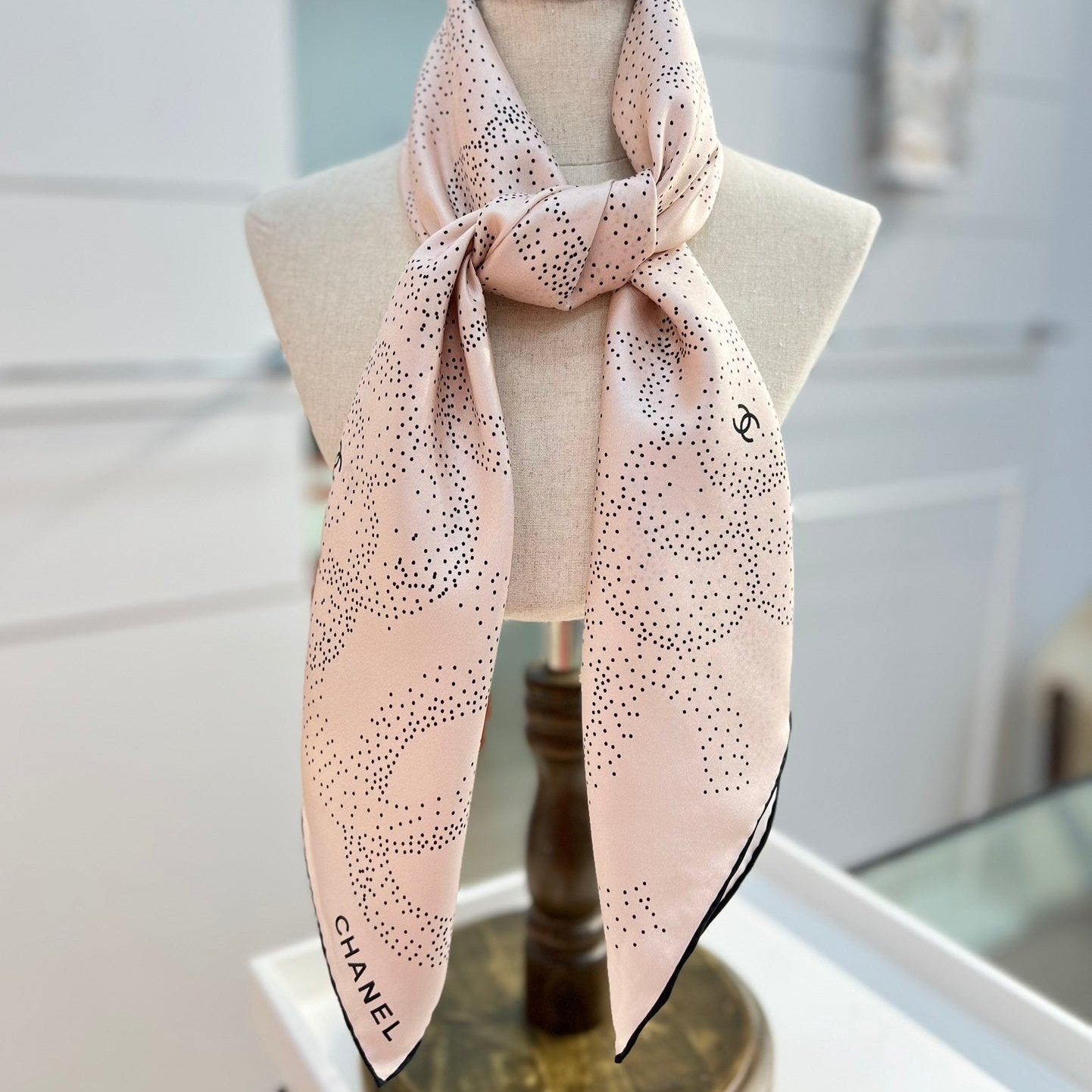 CC Square Scarf 90 CM In Light Pink Camellia Polka Dot Silk 288737