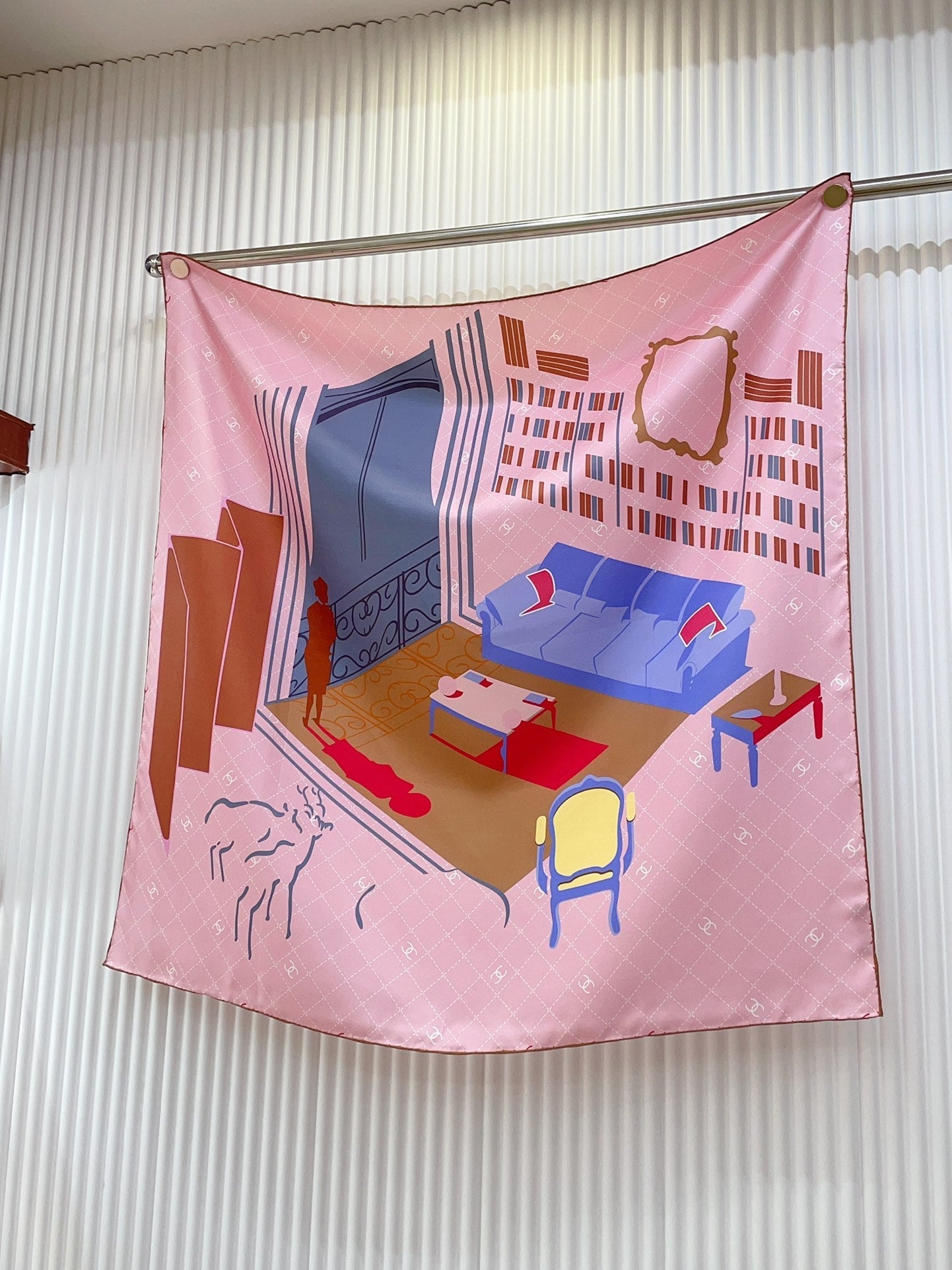 CC Square Scarf 90 CM In Pink Colorful Silk Twill 187428