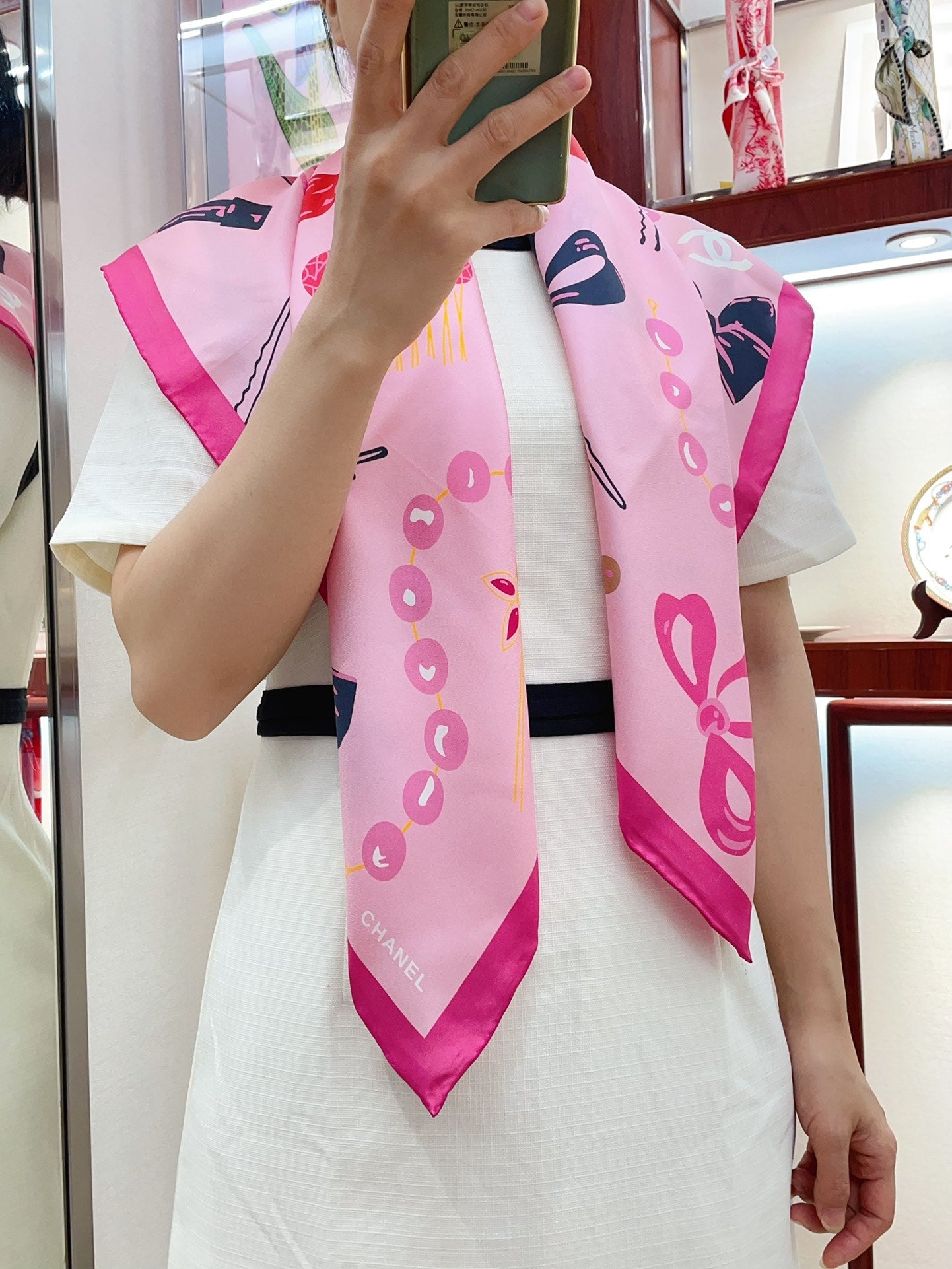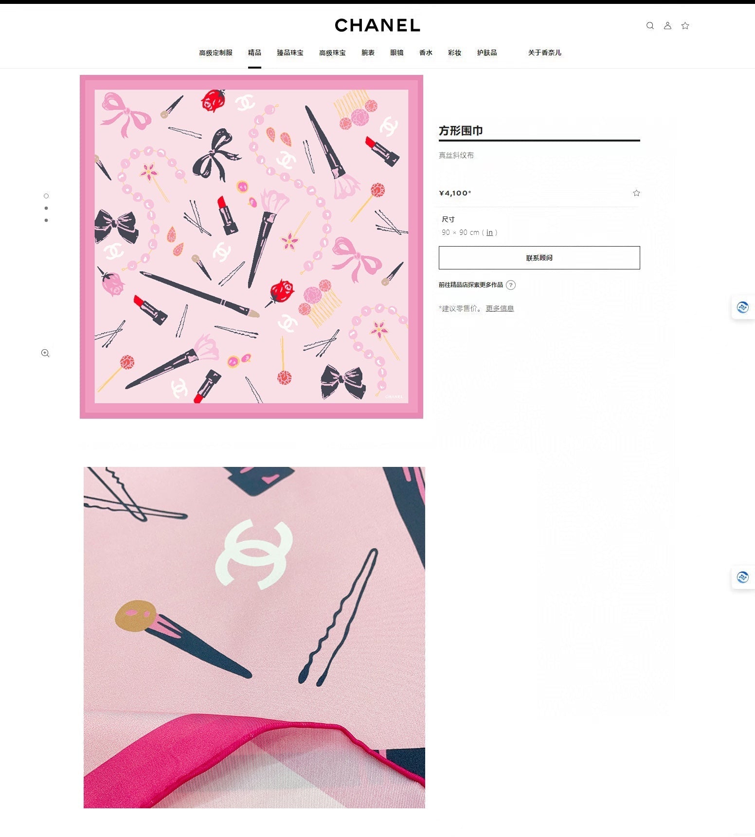 CC Square Scarf 90 CM In Pink Colorful Silk Twill 213689