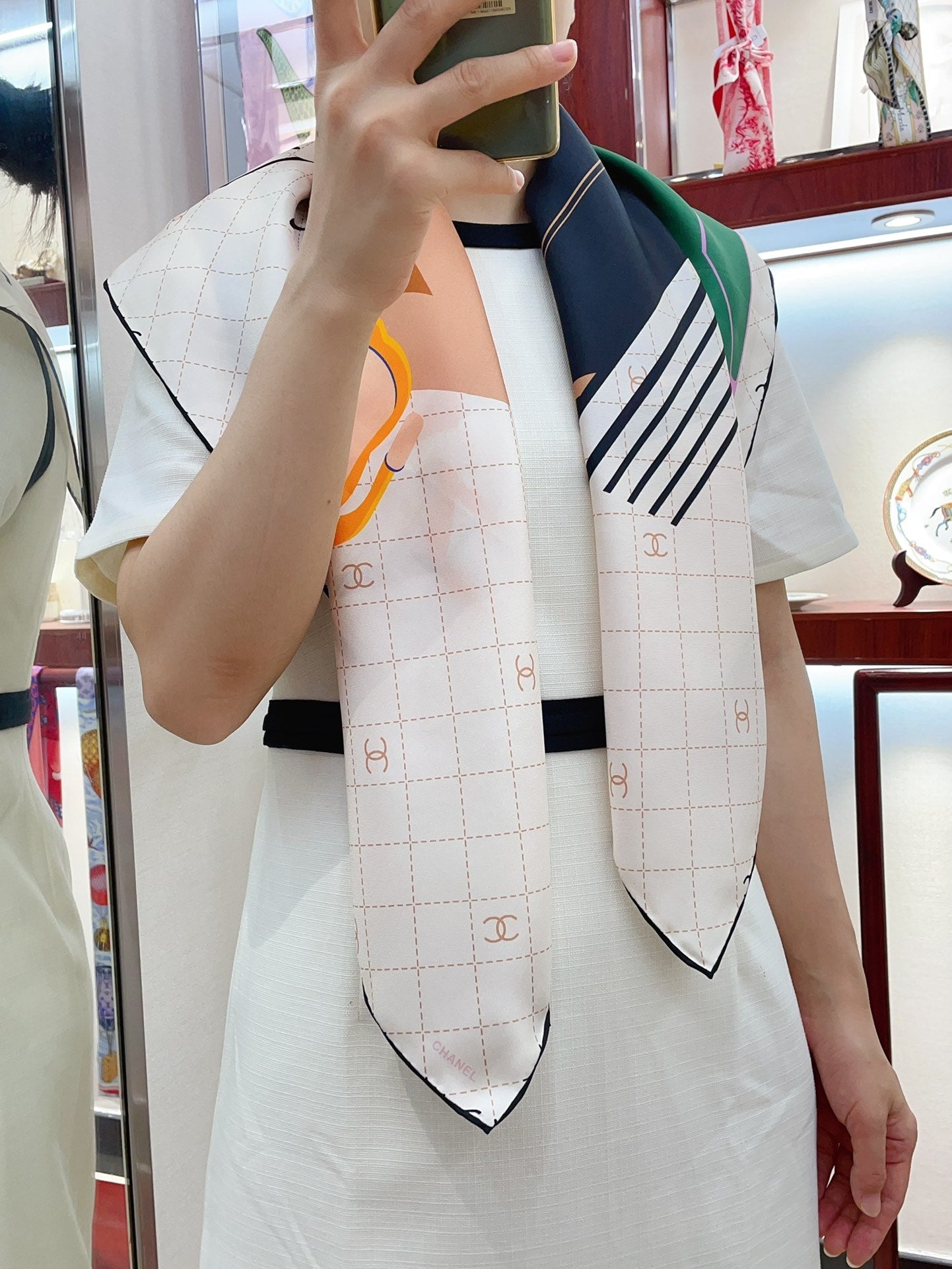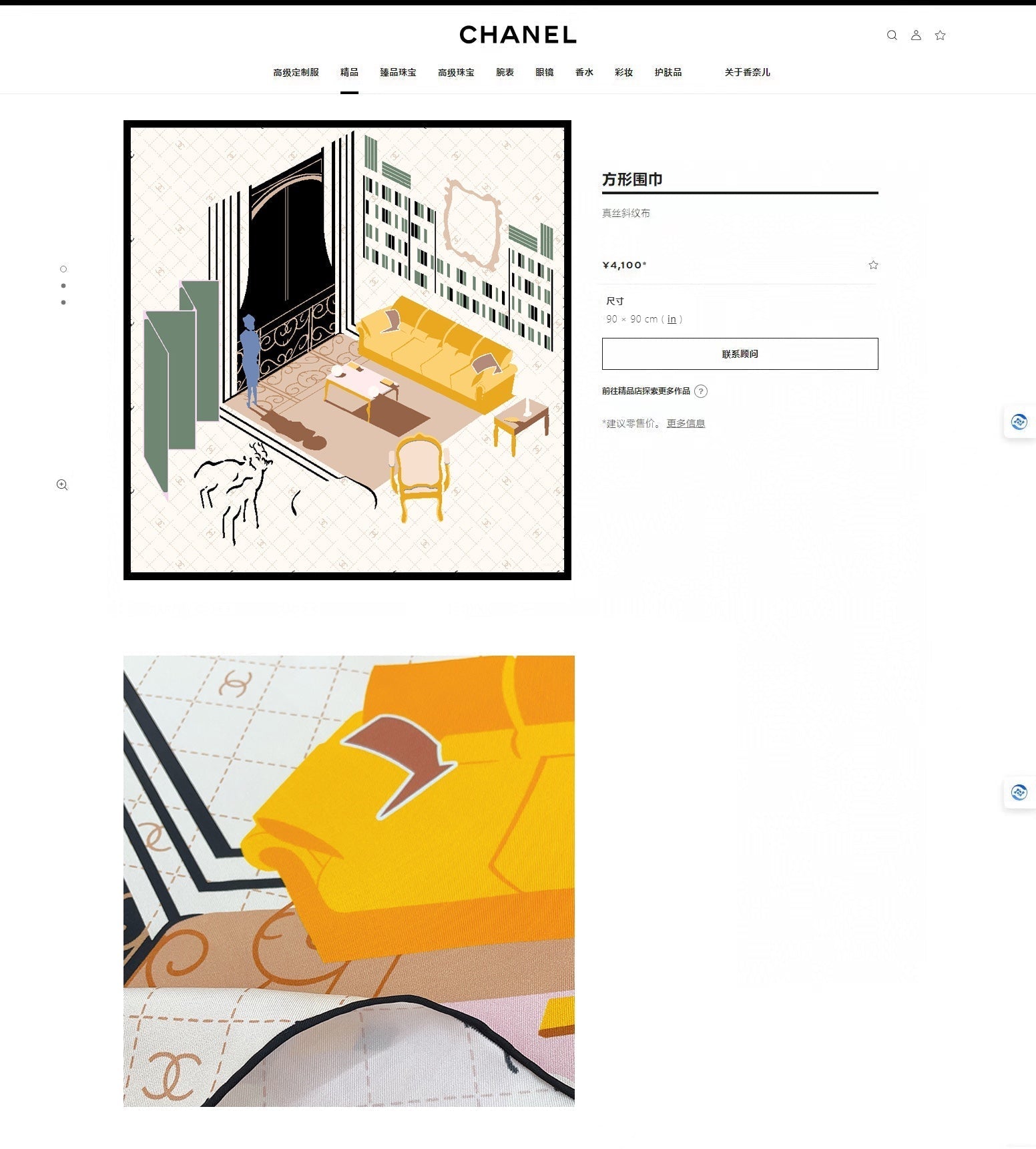 CC Square Scarf 90 CM In White Colorful Silk Twill 187426