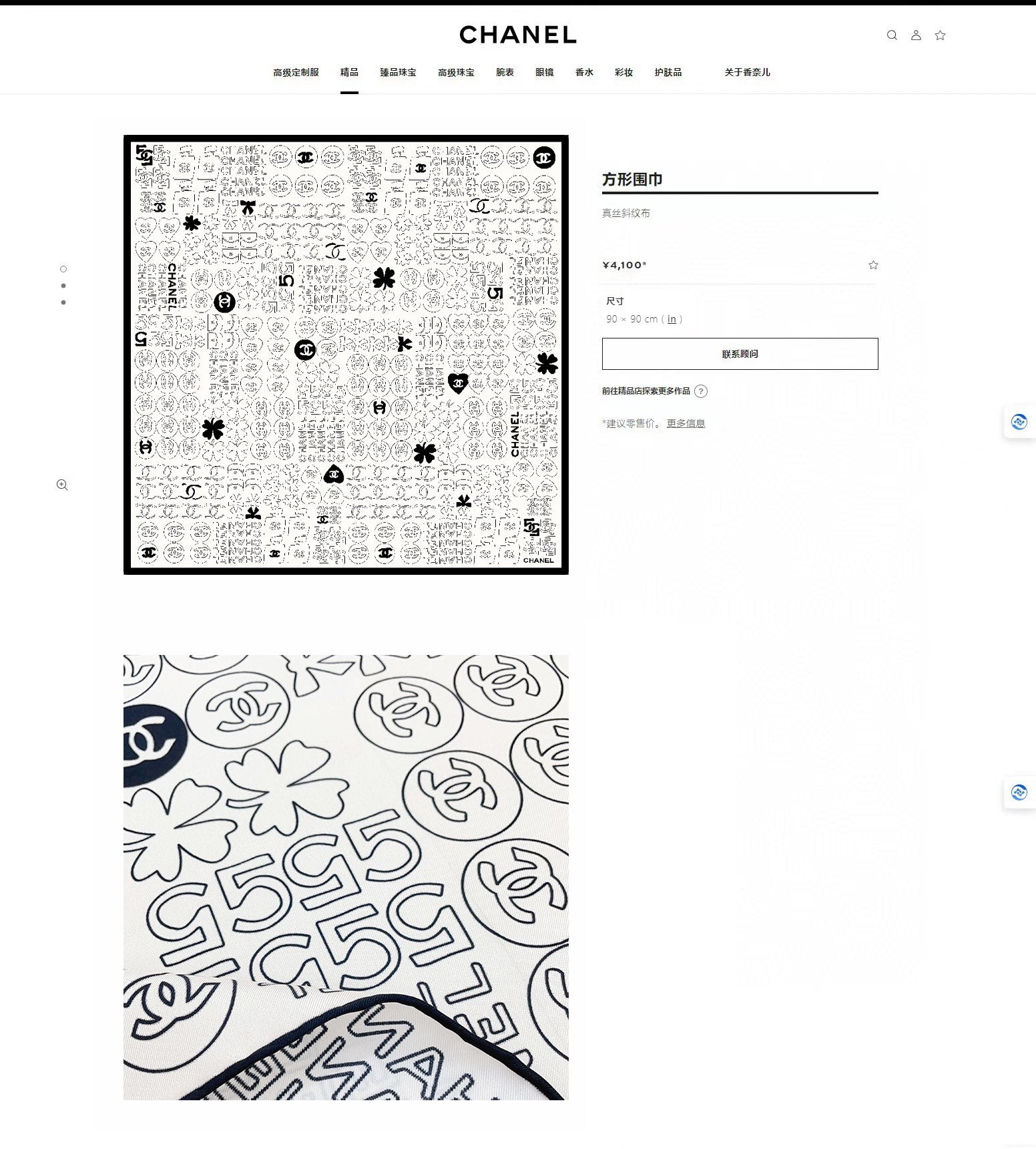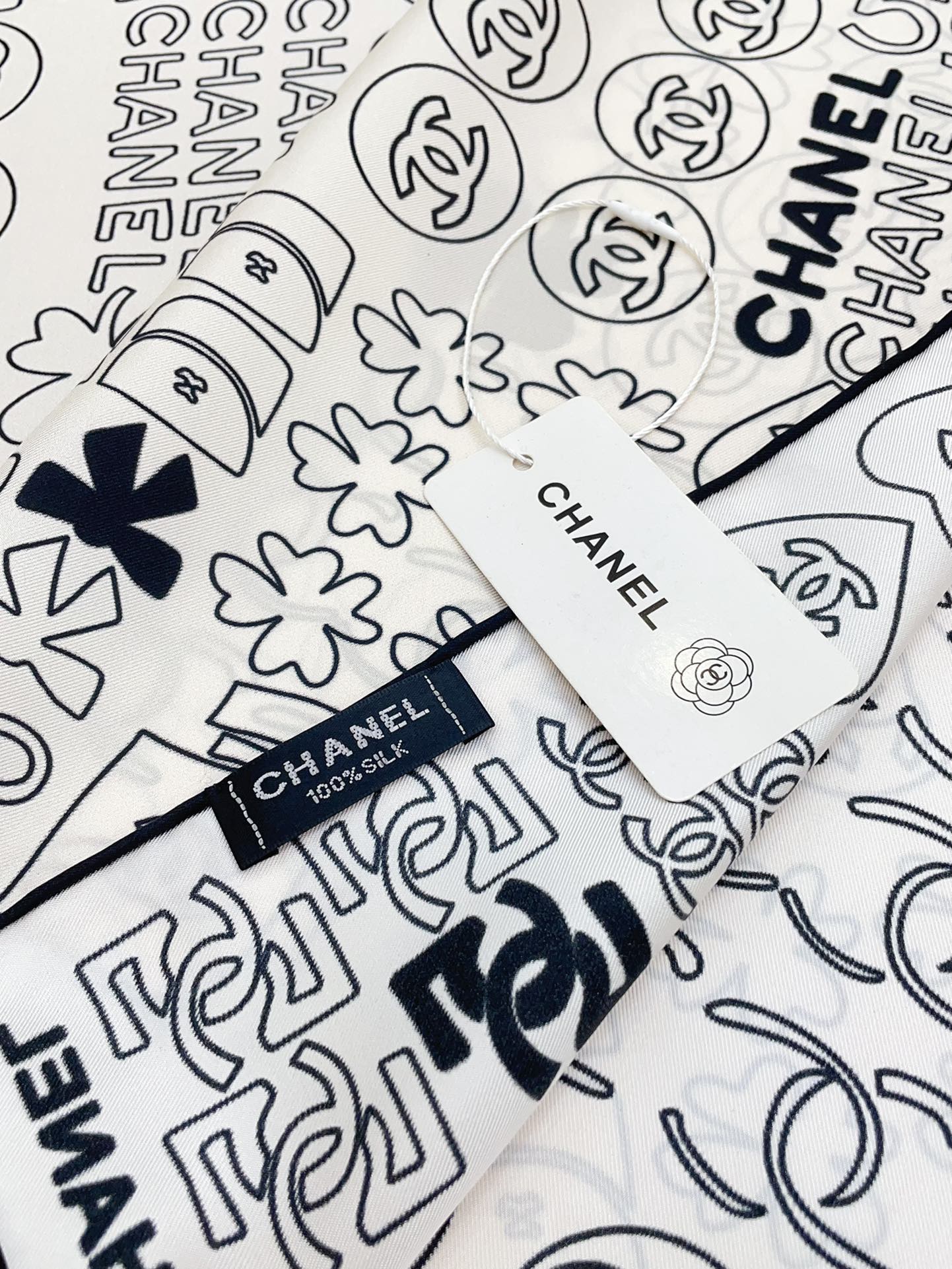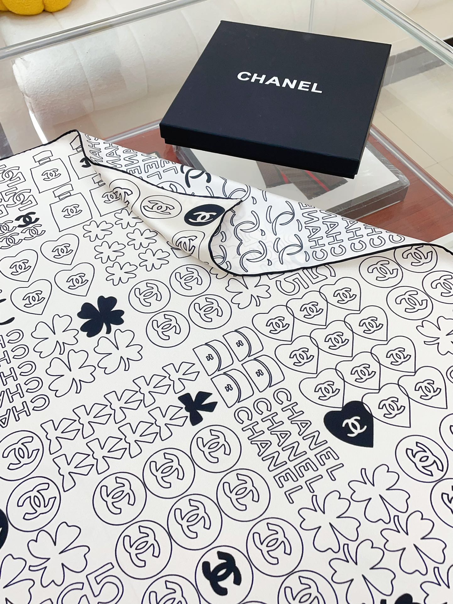 CC Square Scarf 90 CM In White Mix Black Cashmere Silk 316269