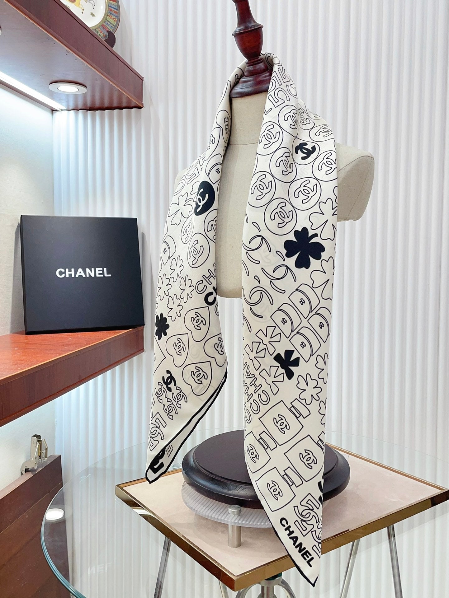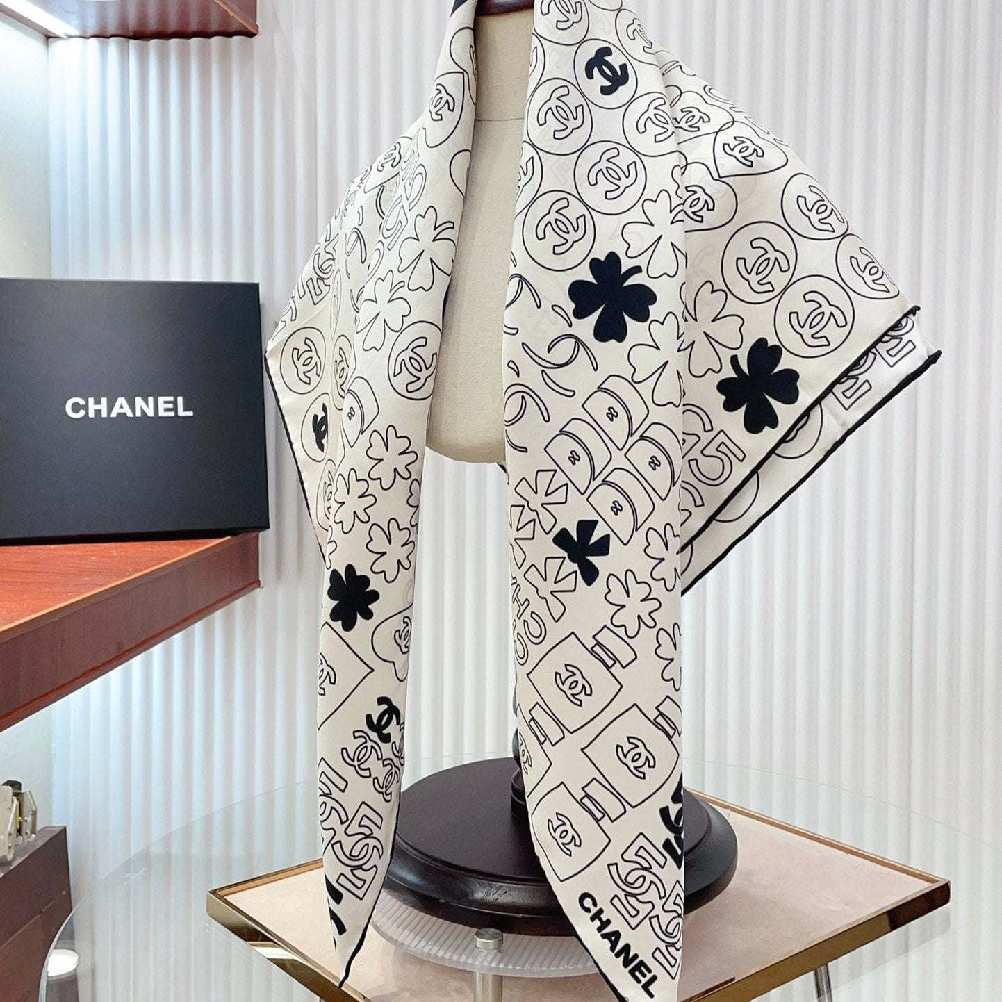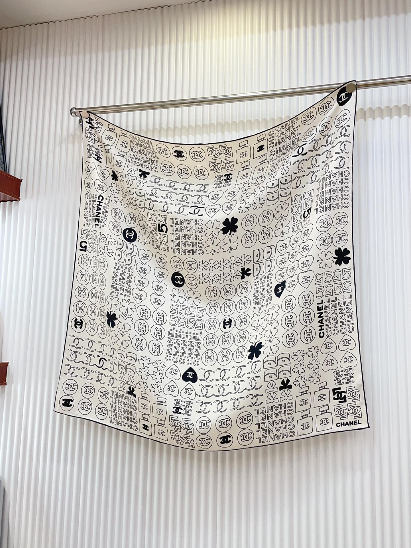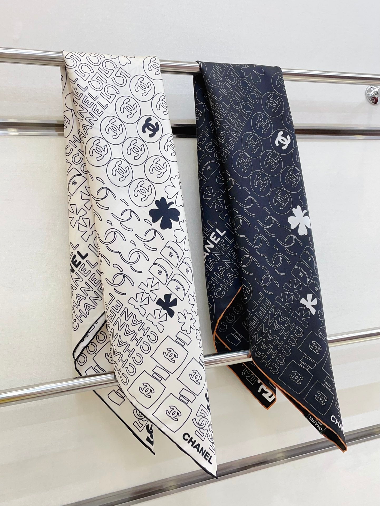 CC Square Scarf 90 CM In White Mix Black Cashmere Silk 316269