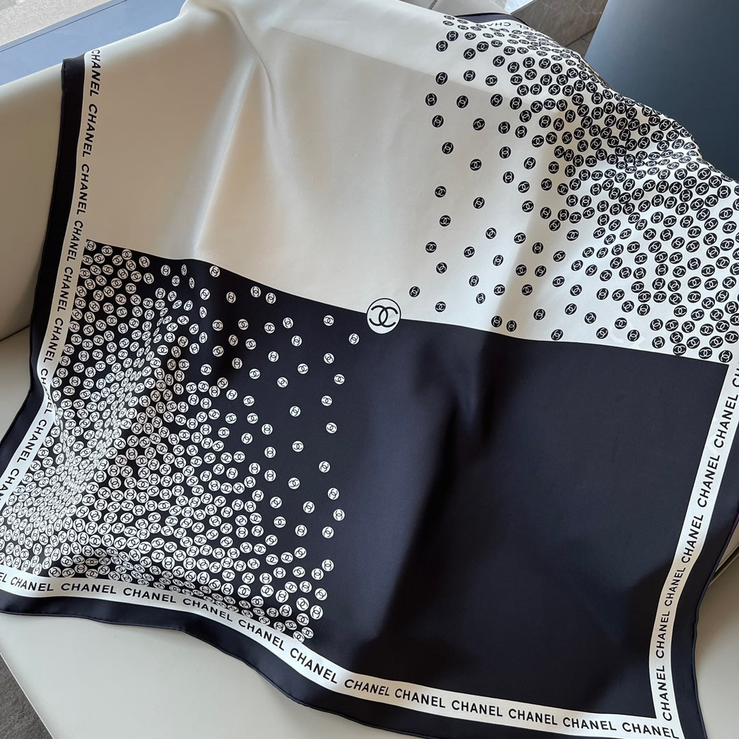 CC Square Scarf 90 CM In White Mix Black Logo Print Silk Twill 288696