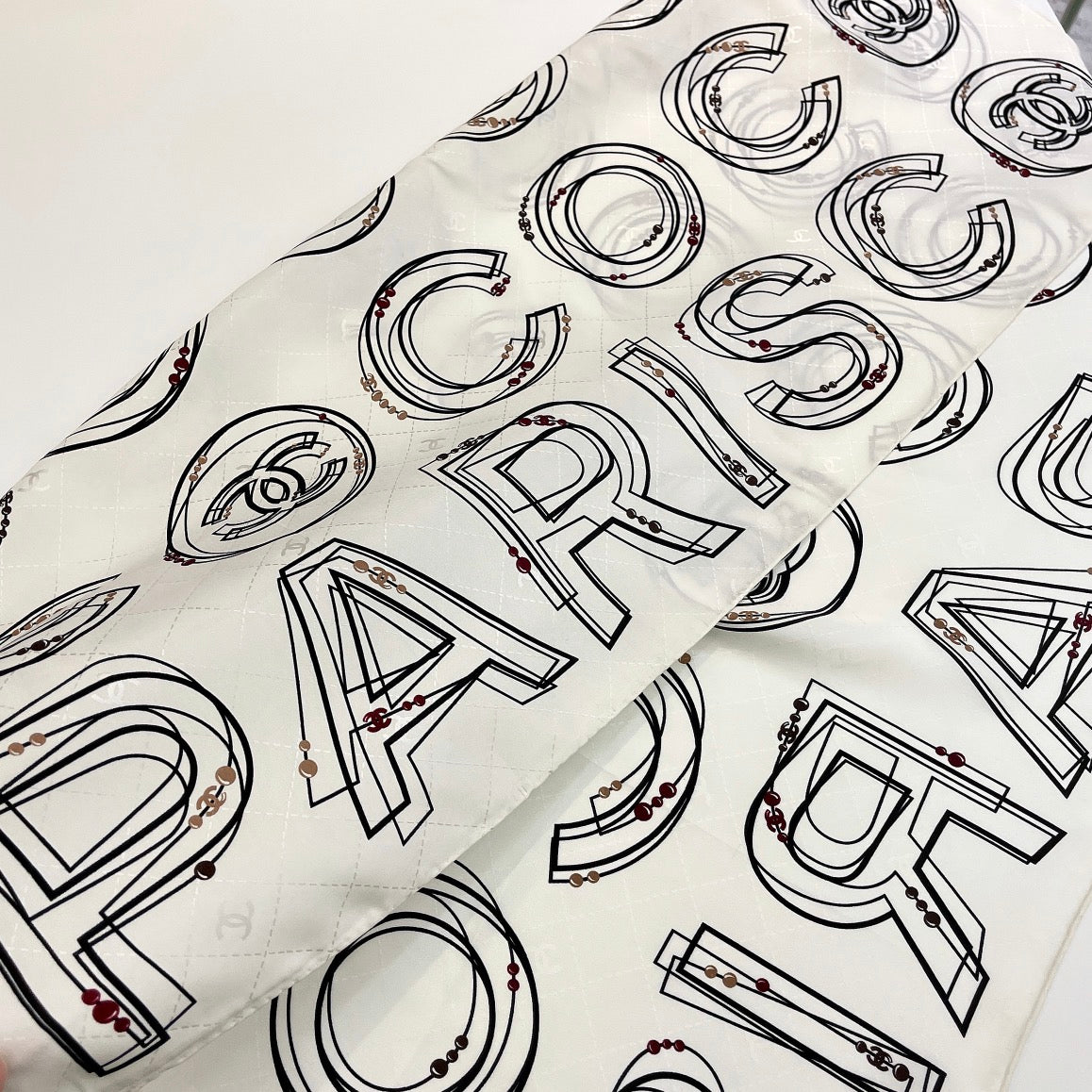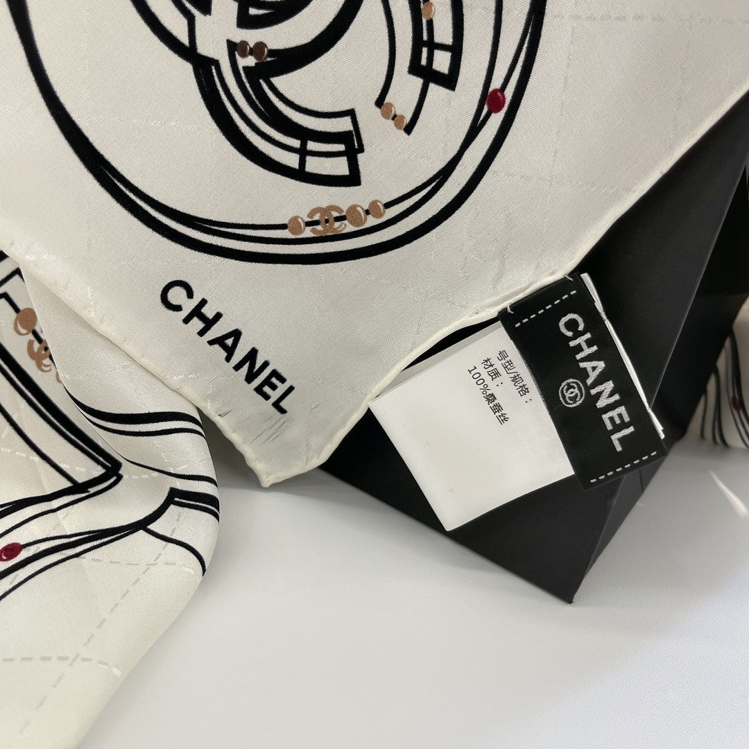CC Square Scarf 90 CM In White Mix Black Silk 288721