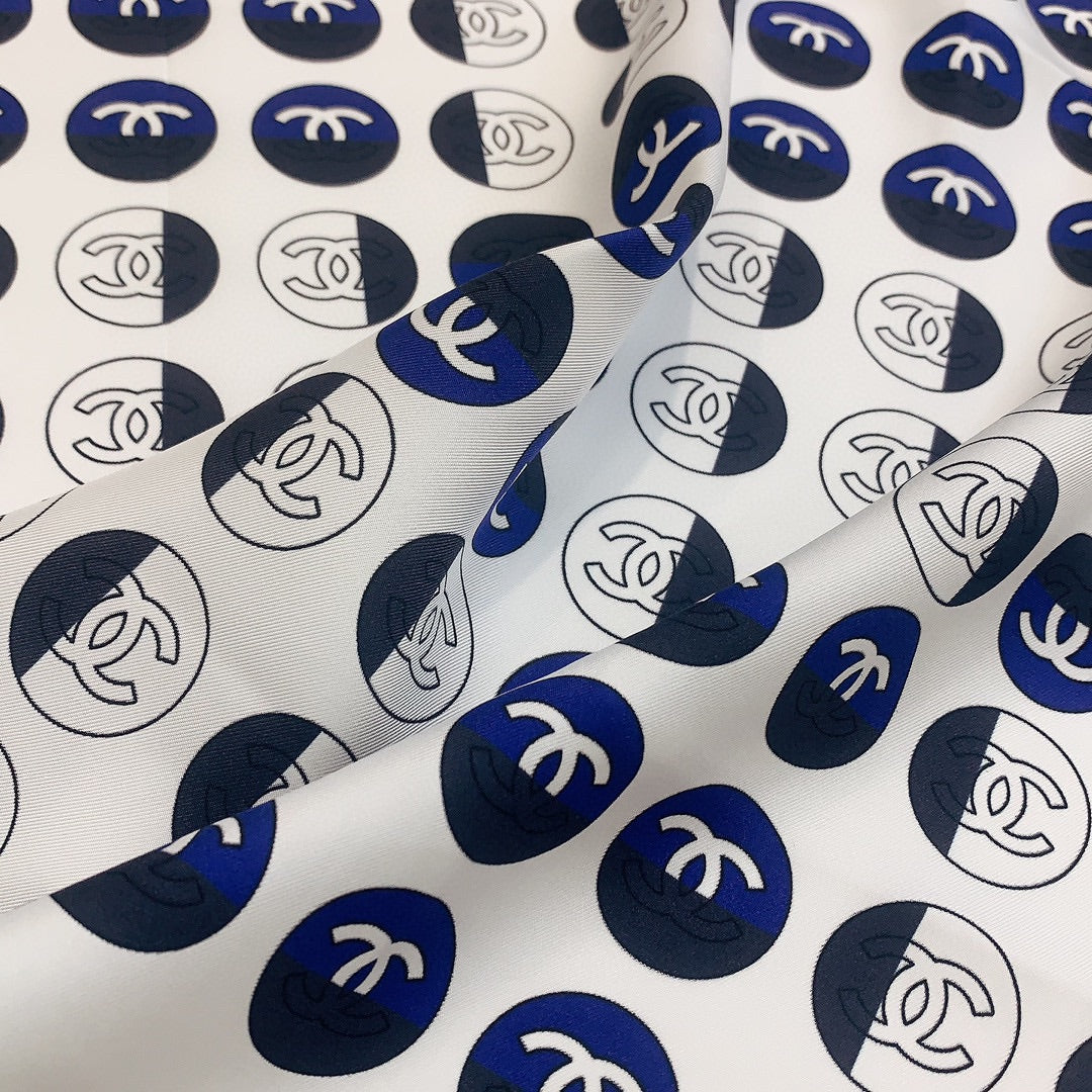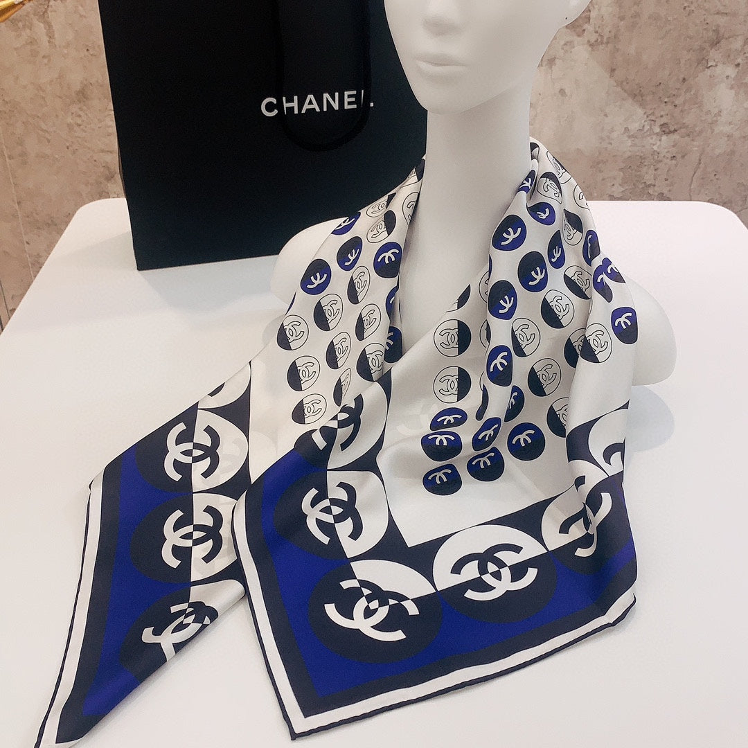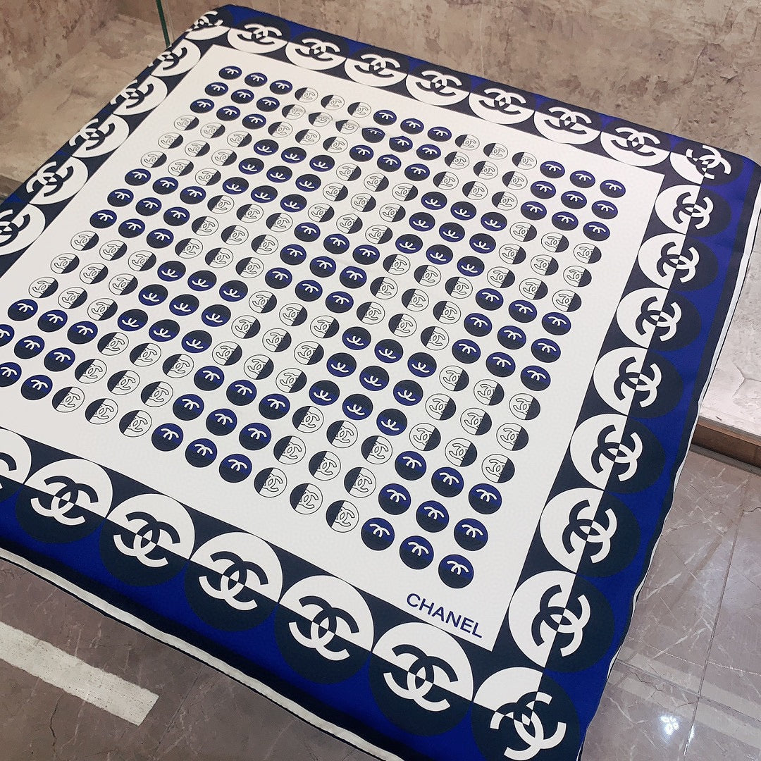 CC Square Scarf 90 CM In White Mix Blue Silk Twill 288718