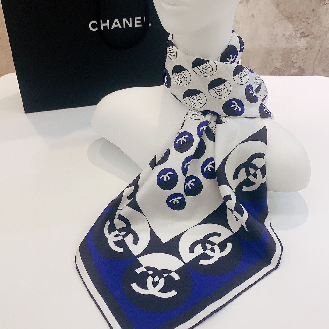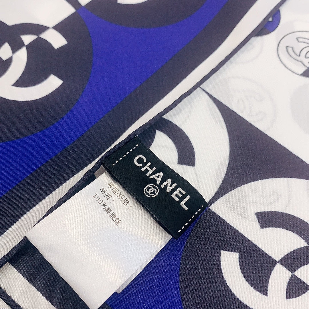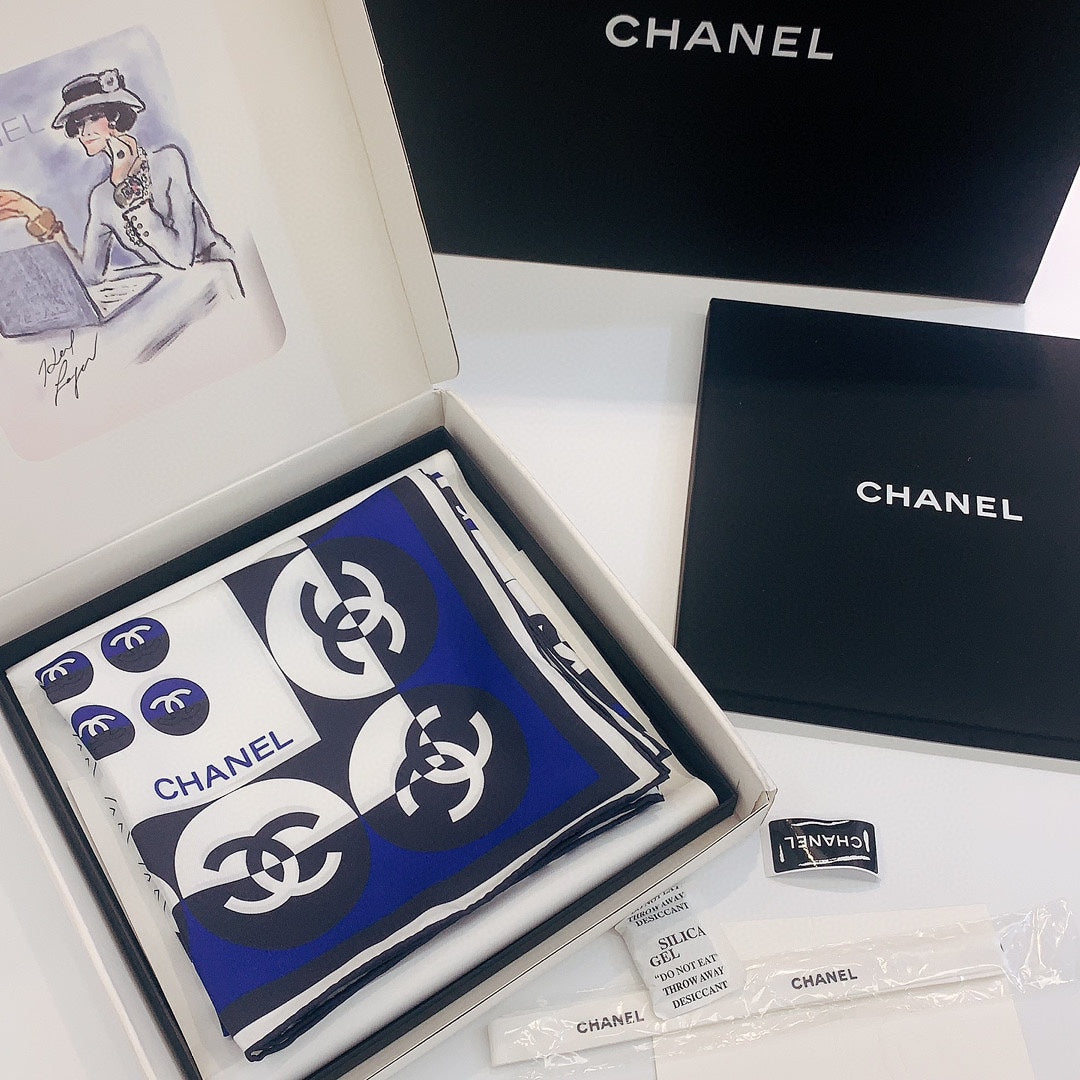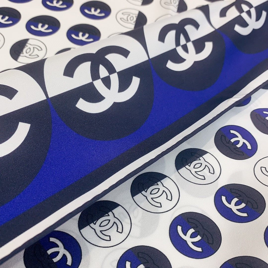CC Square Scarf 90 CM In White Mix Blue Silk Twill 288718