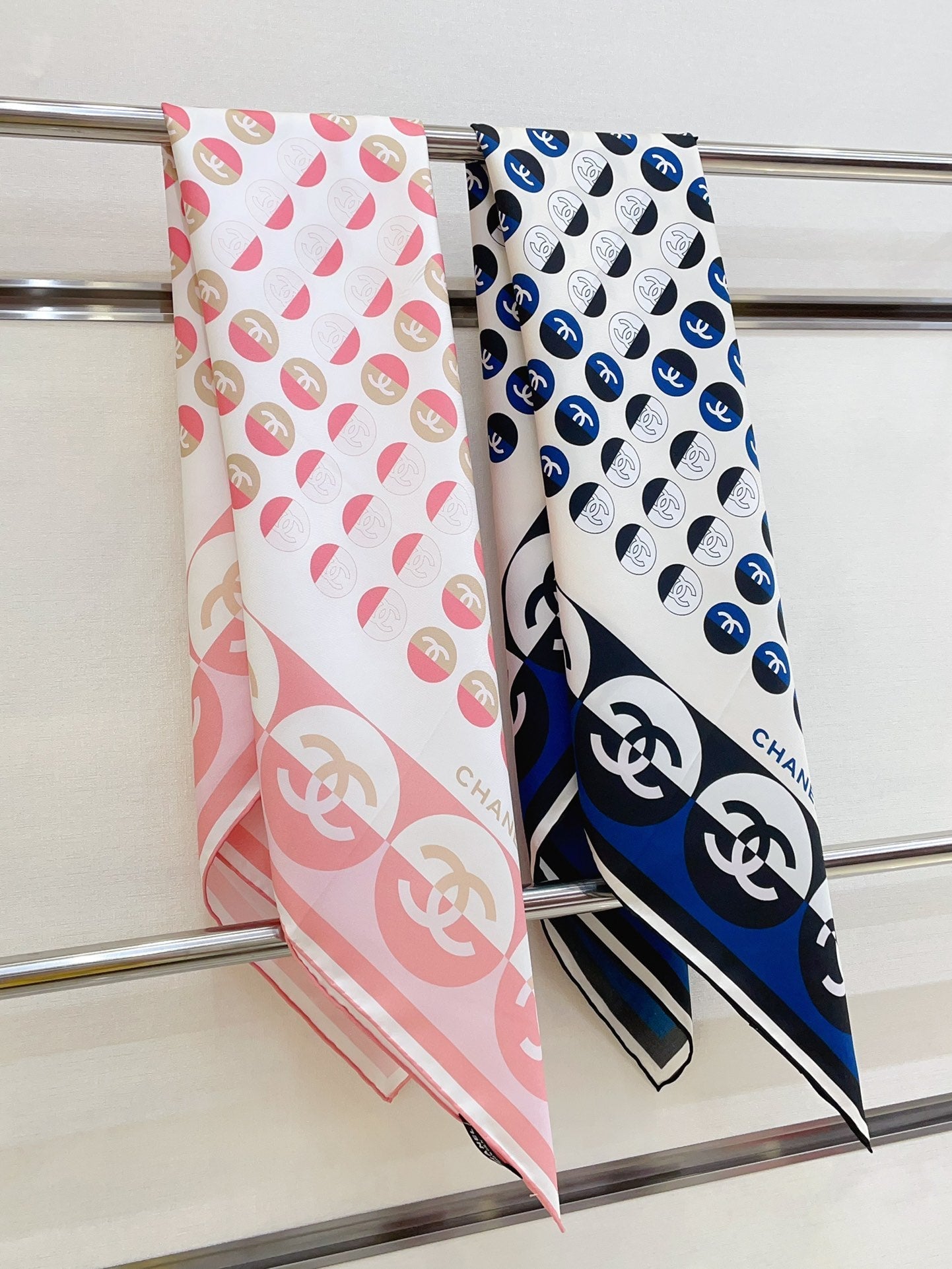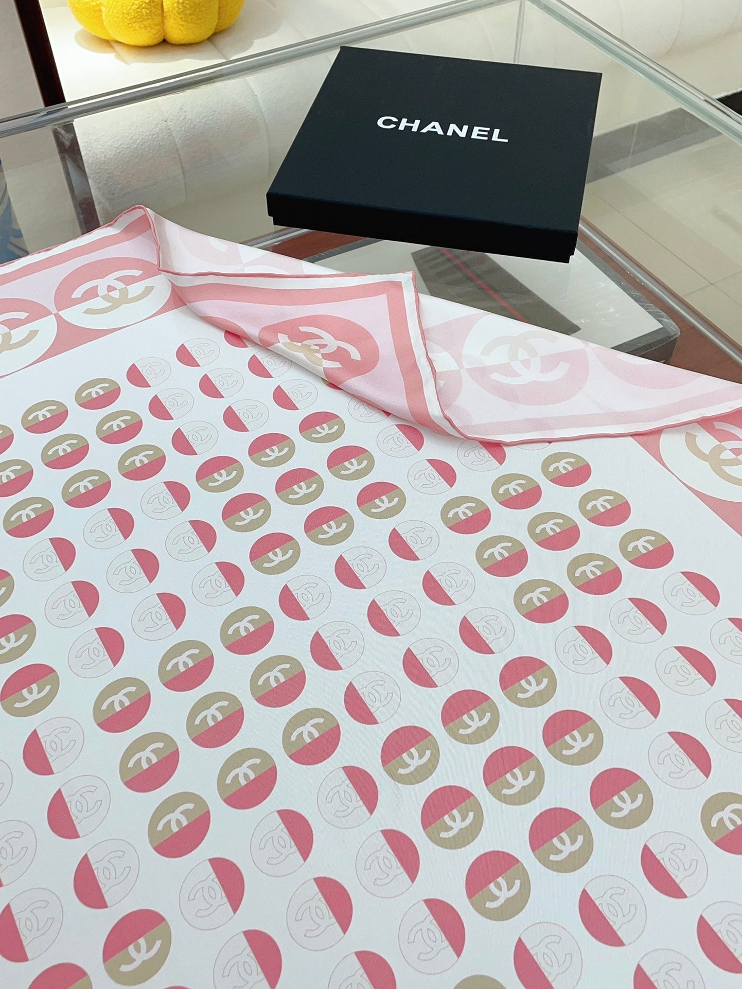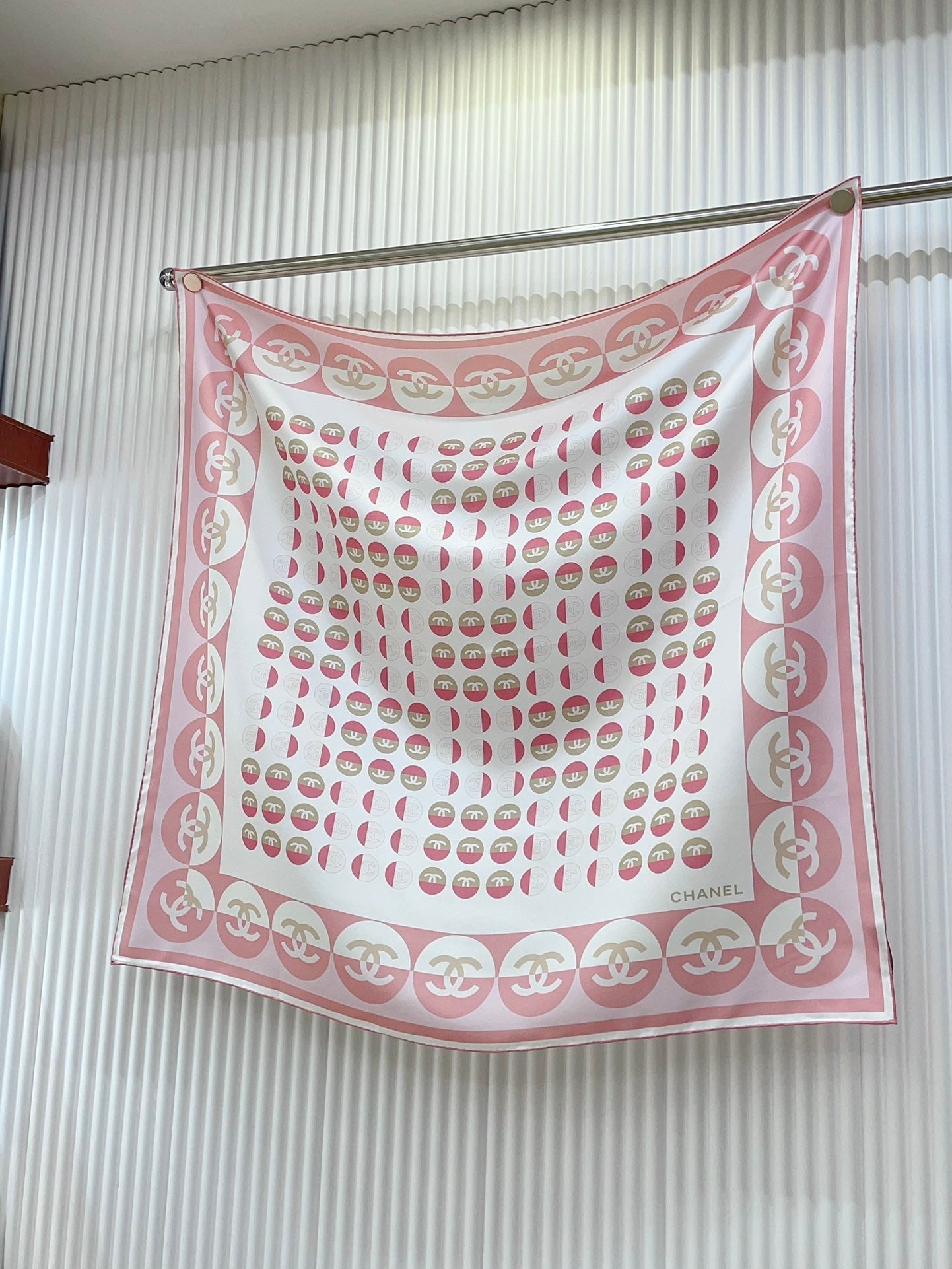 CC Square Scarf 90 CM In White Mix Pink Silk Twill 206464