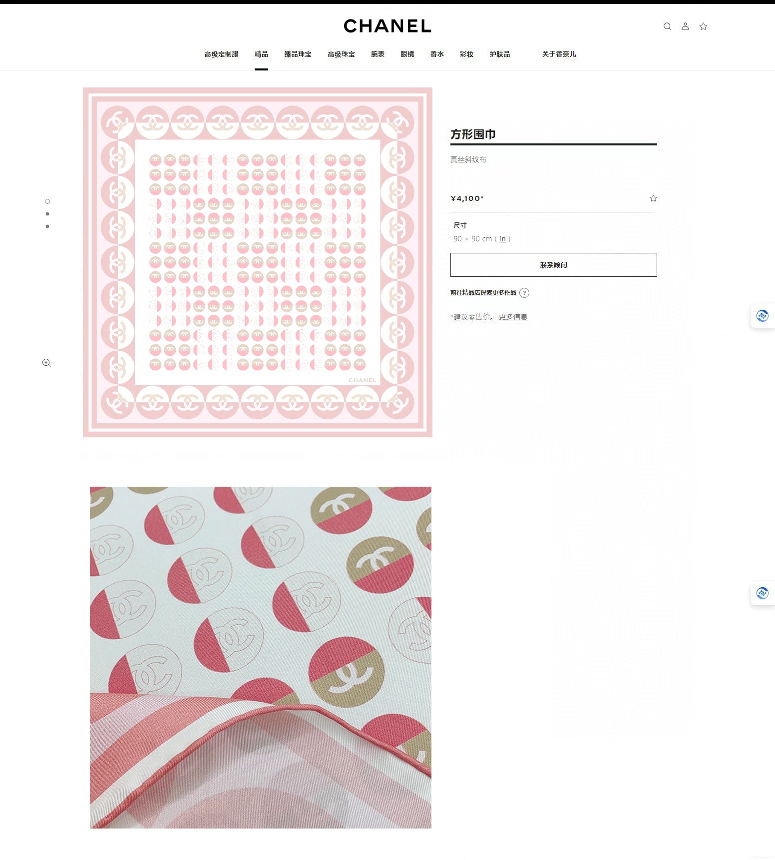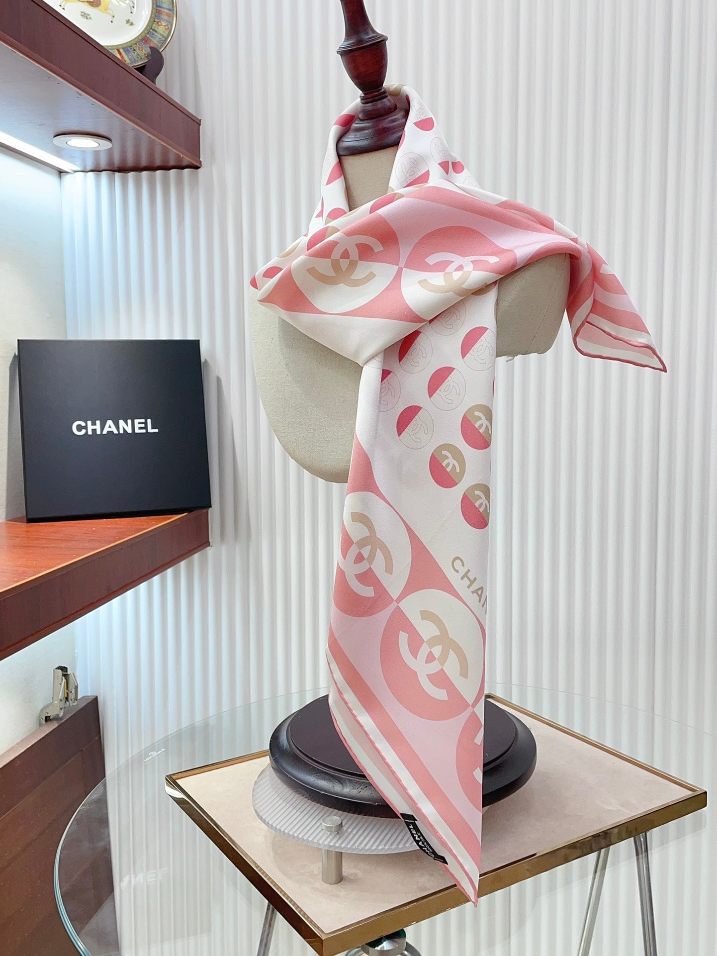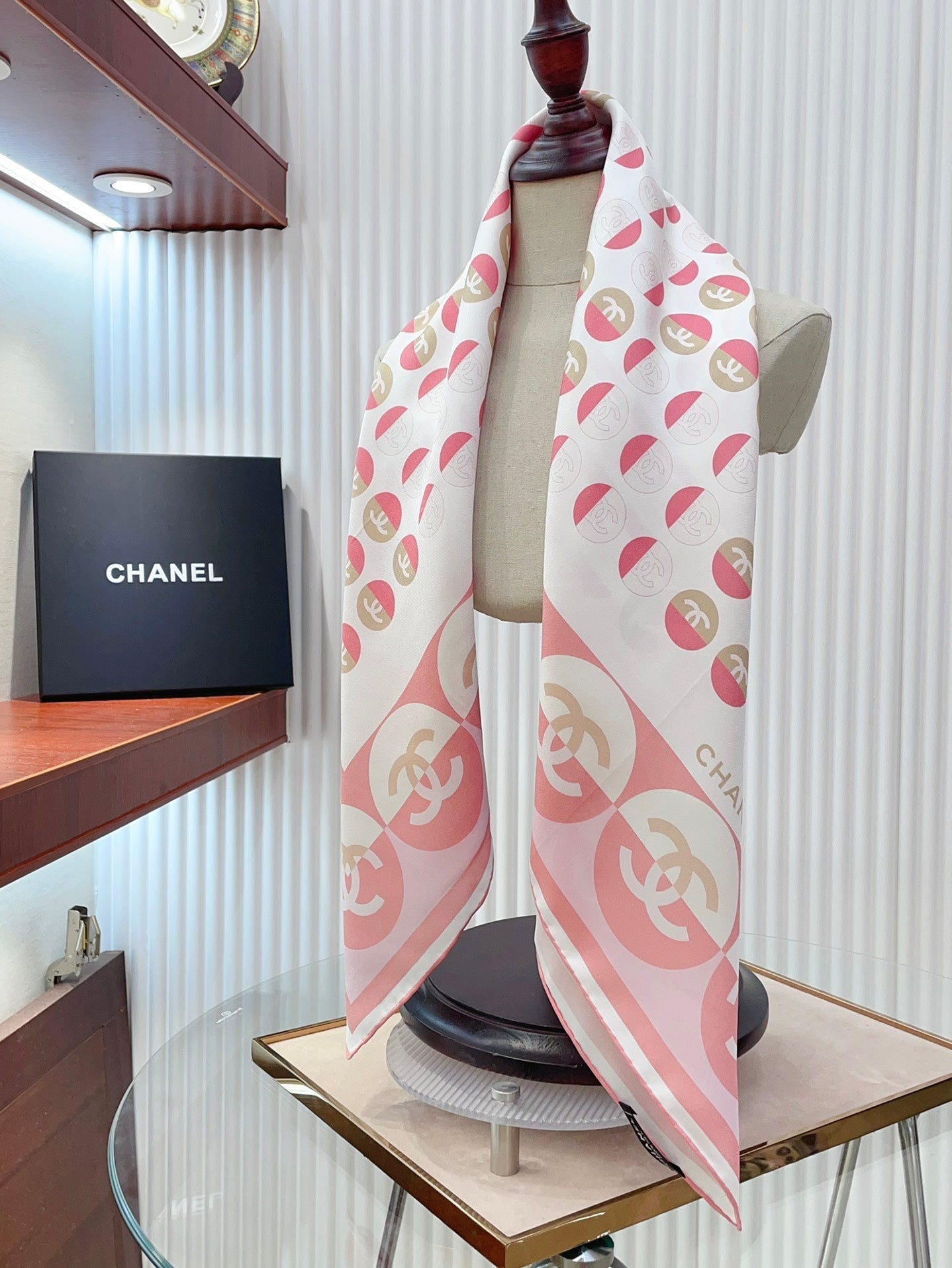 CC Square Scarf 90 CM In White Mix Pink Silk Twill 206464