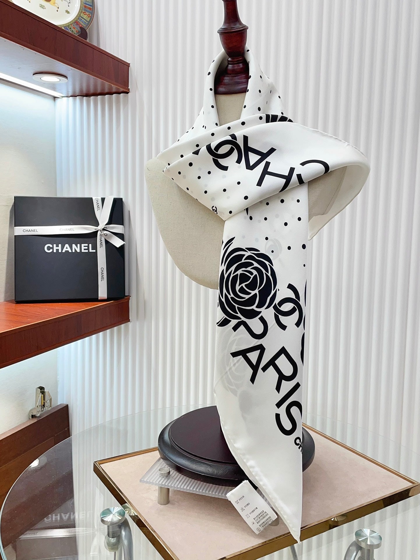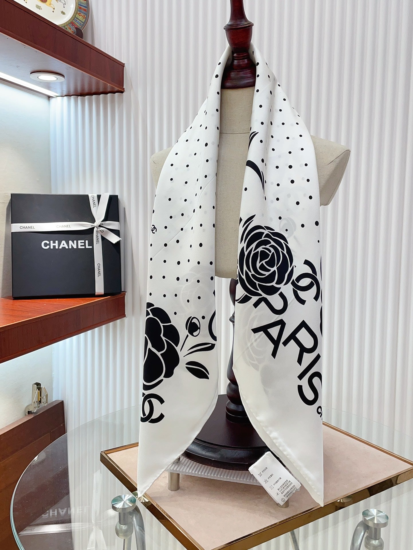 Color: White Polka Dot Black Camellia