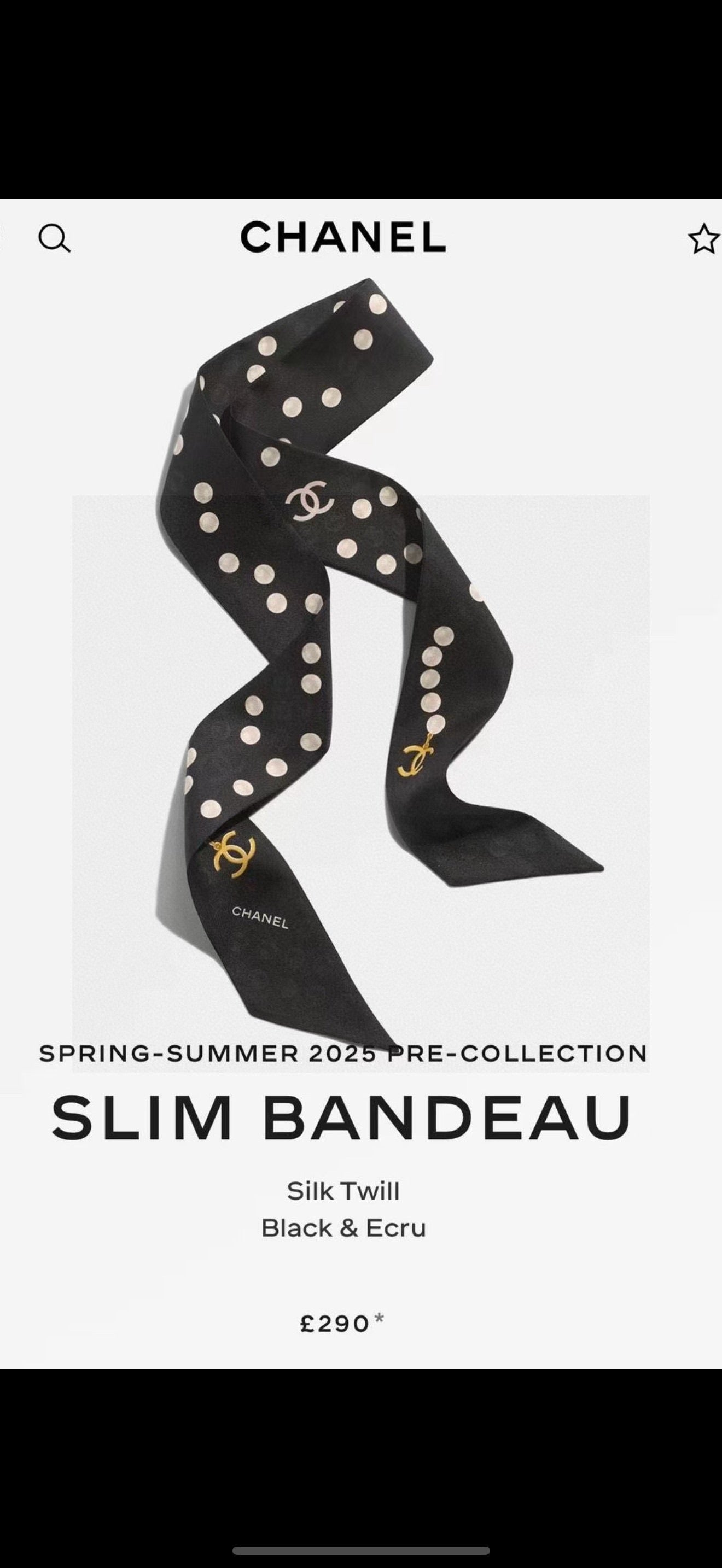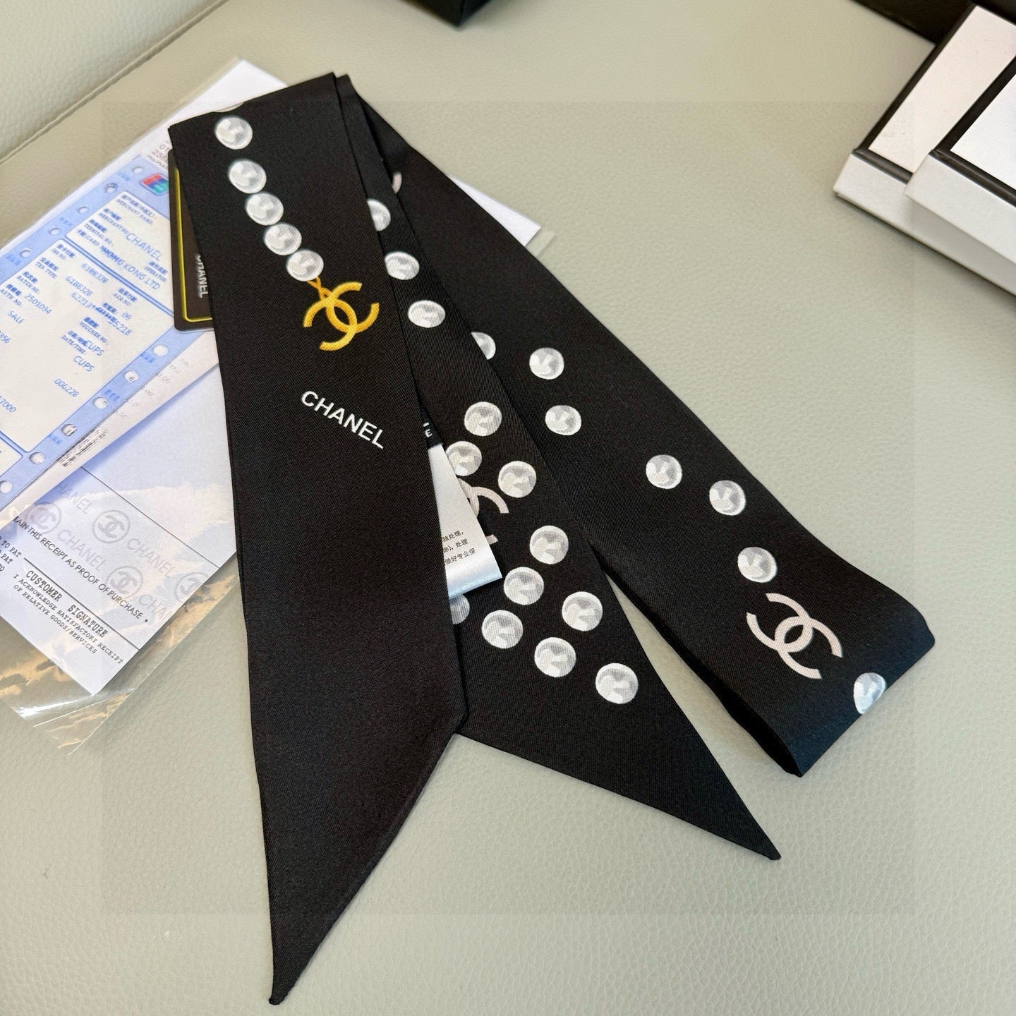 CC Twilly Mini Scarf 120cm Black White Mulberry Silk 949113