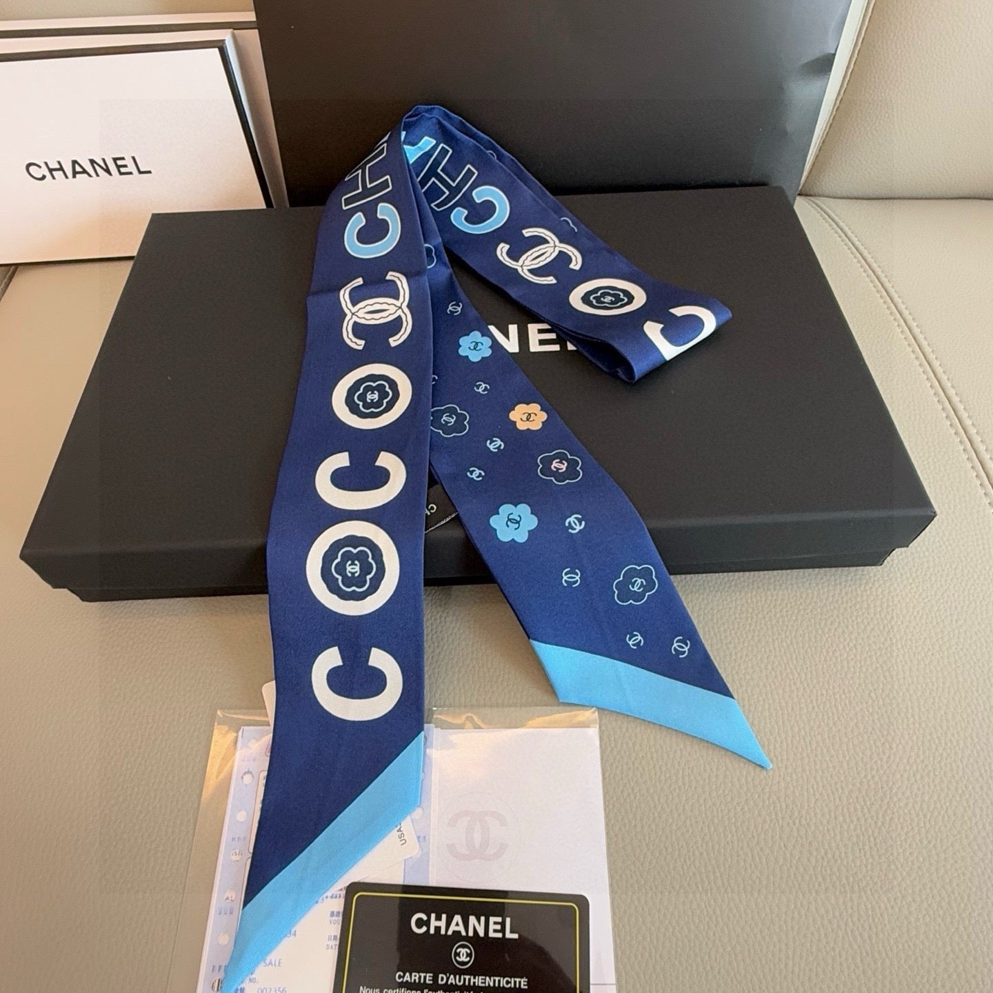 CC  Twilly Mini Scarf 120cm Dark Blue Mulberry Silk 949094