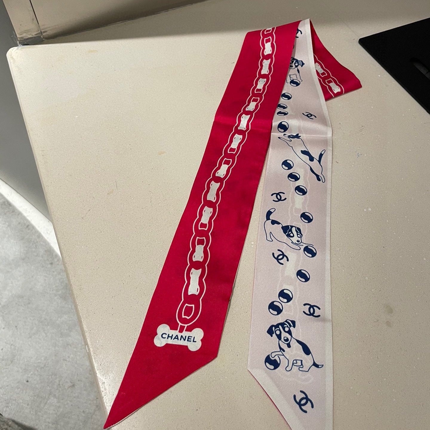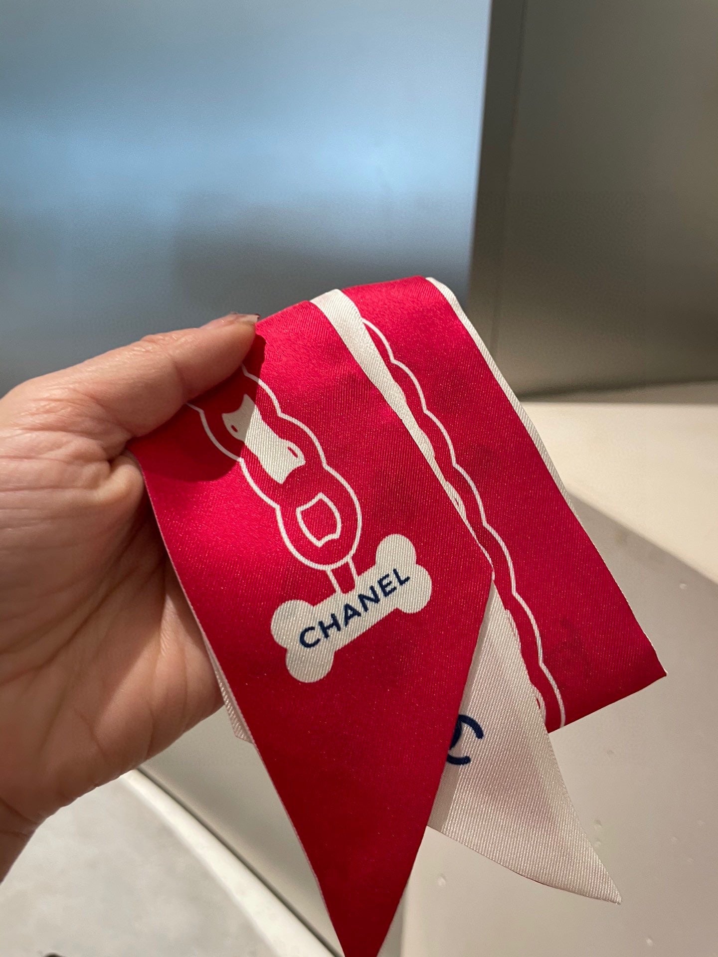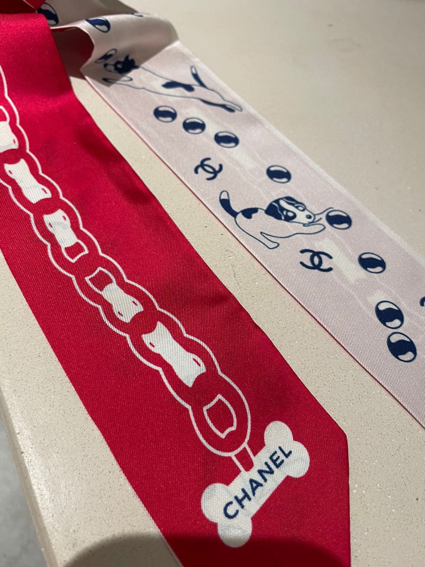 CC Twilly Mini Scarf 120cm Red White Mulberry Silk 798813