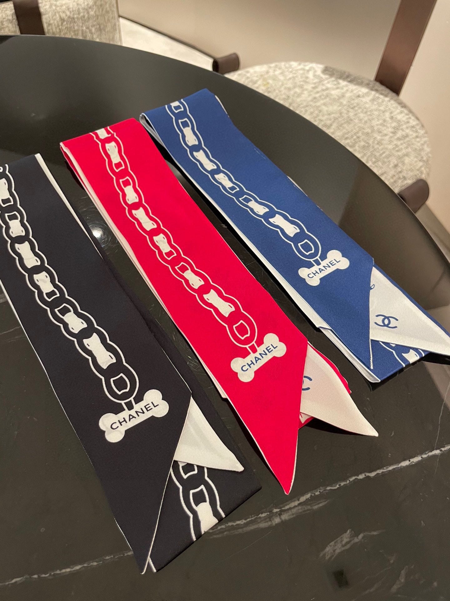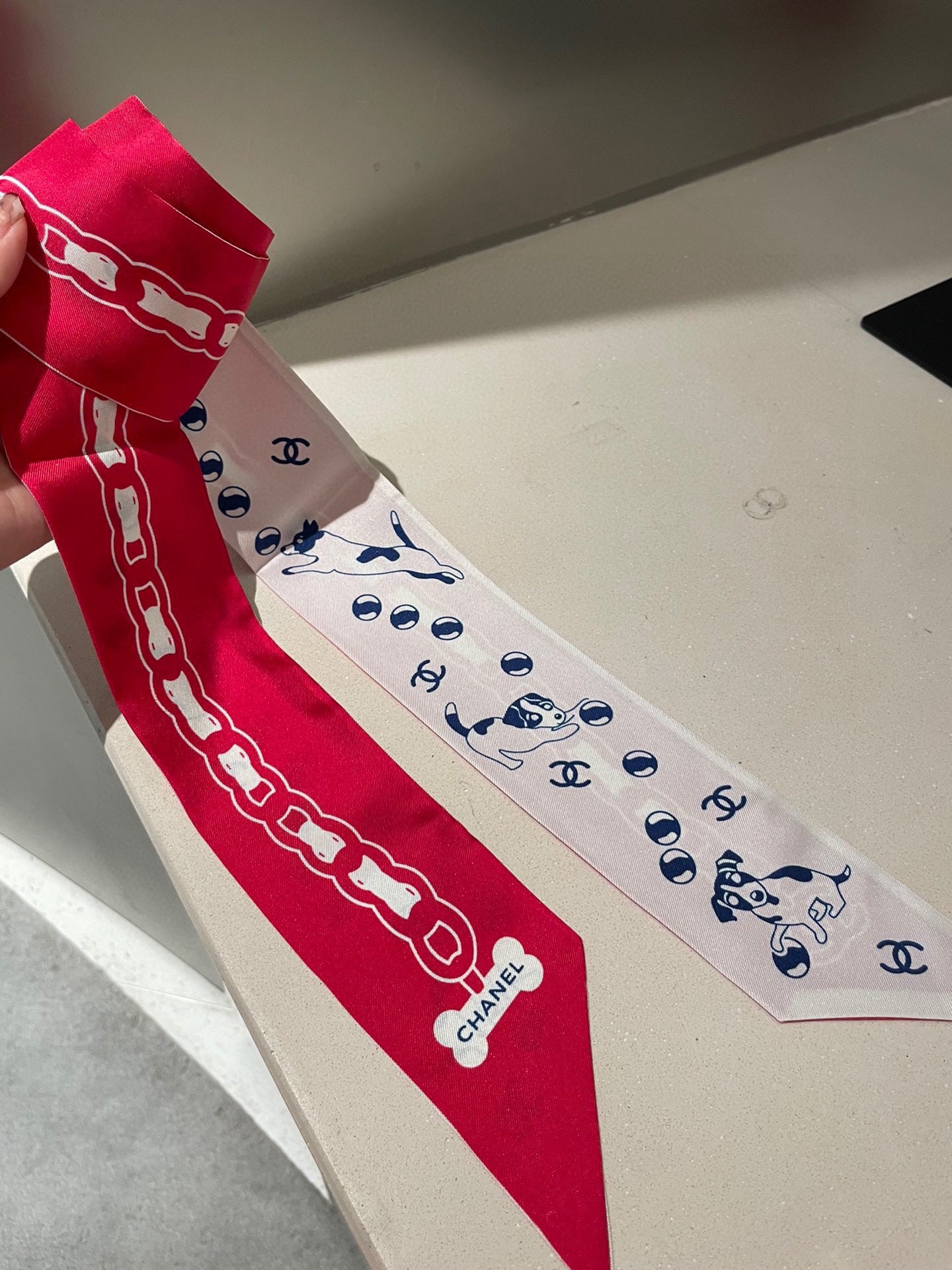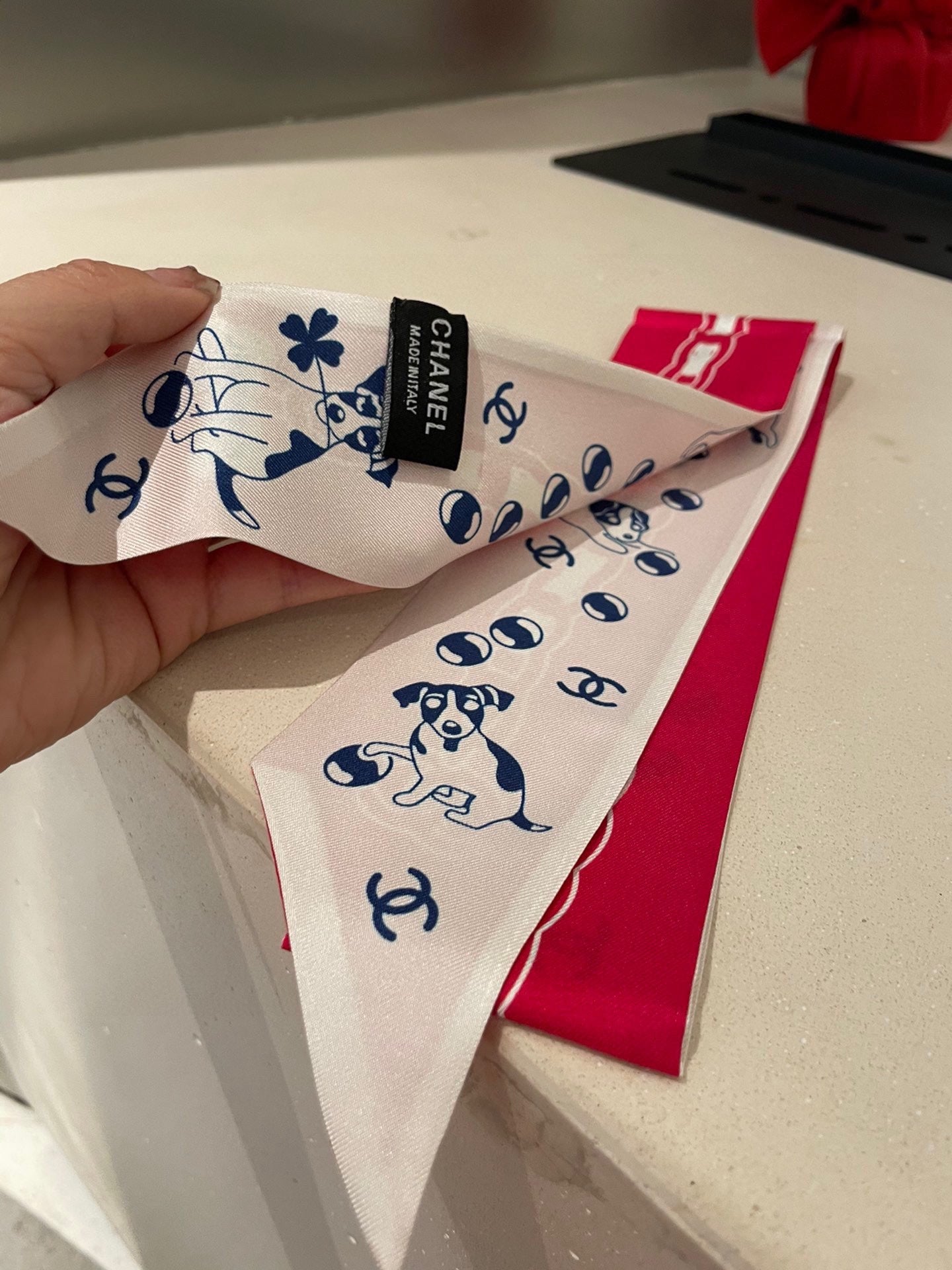 CC Twilly Mini Scarf 120cm Red White Mulberry Silk 798813