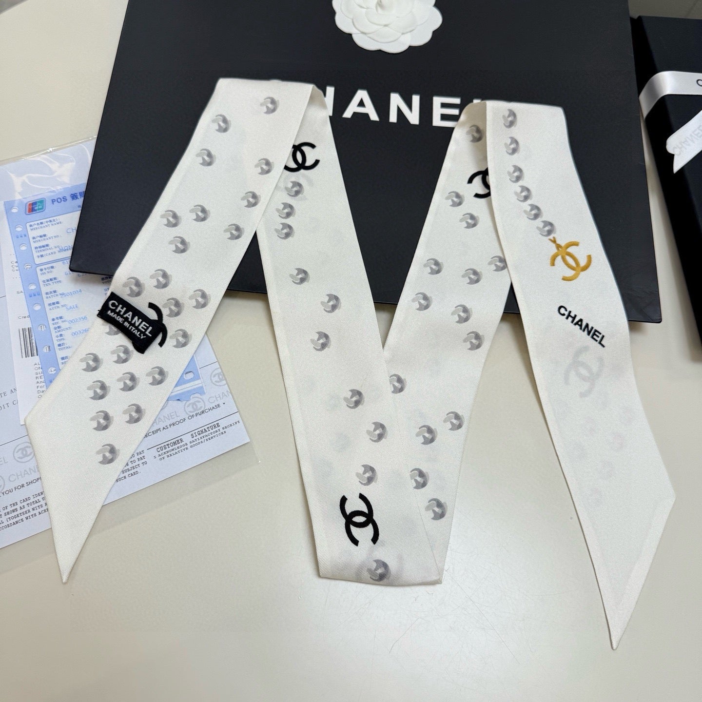 CC Twilly Mini Scarf 120cm White Mulberry Silk 949112