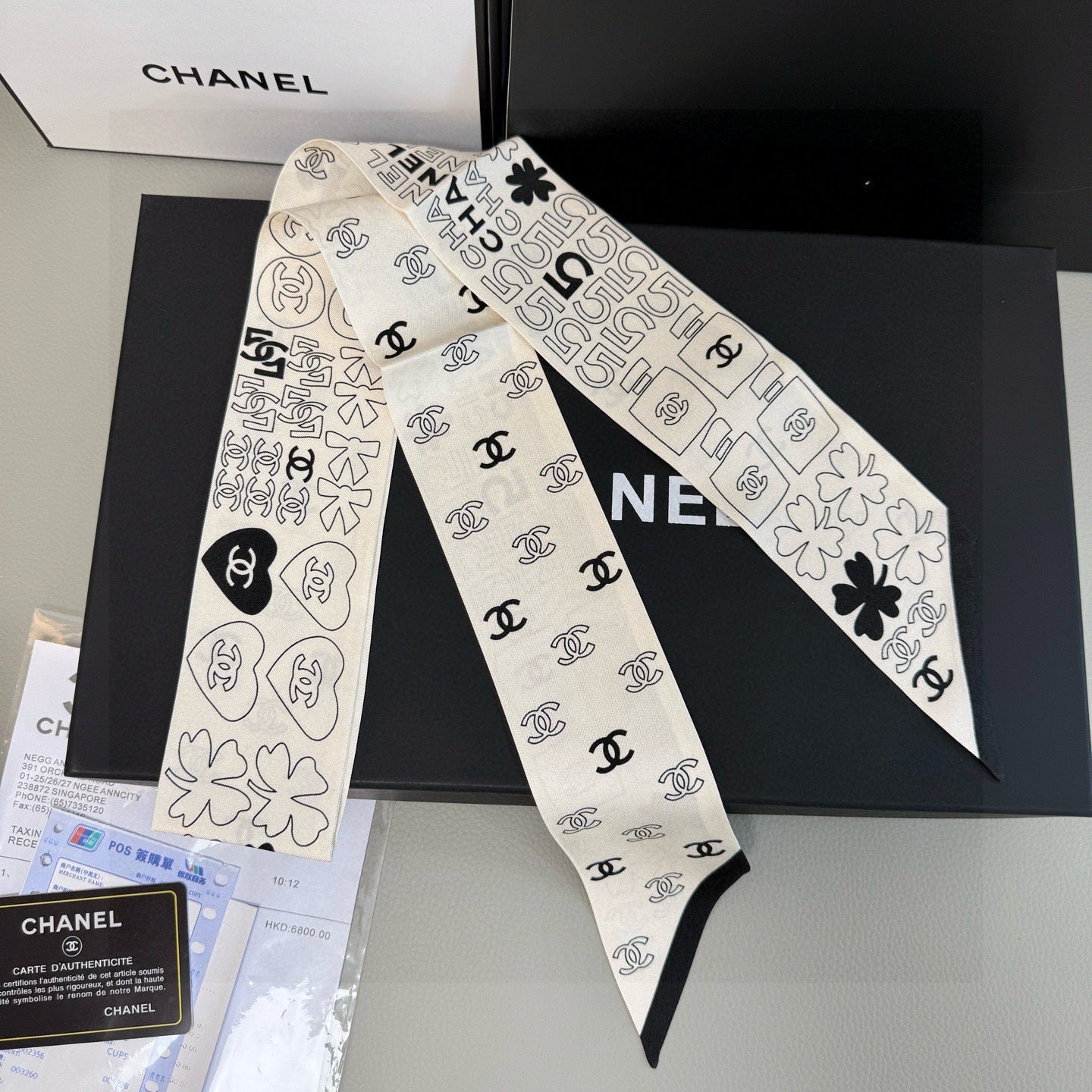 CC  Twilly Mini Scarf 120cm White Mulberry Silk 968851