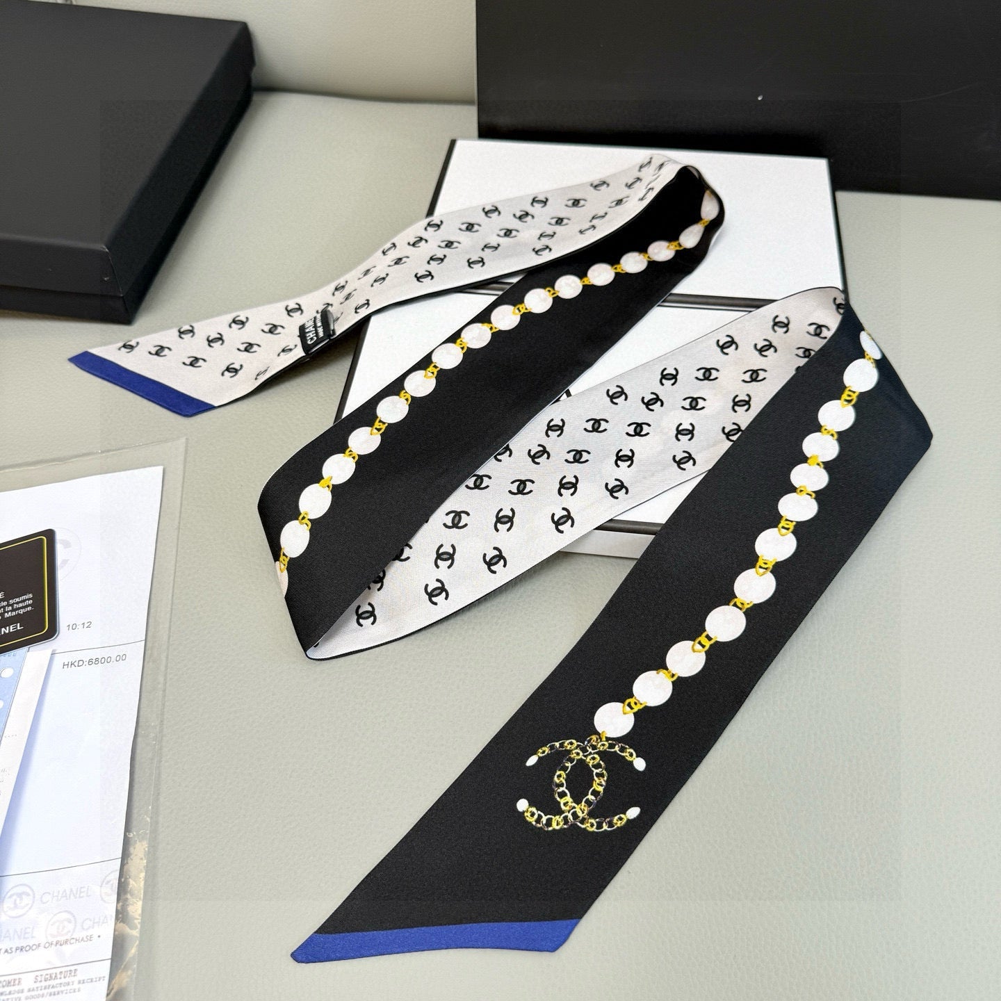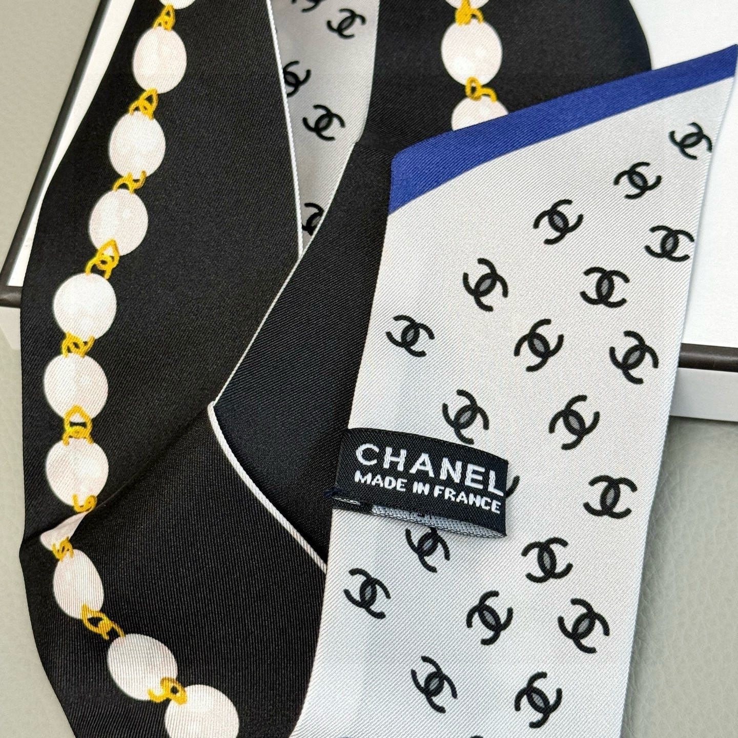 CC Twilly Mini Star 120cm Black White Blue Mulberry Silk 935261