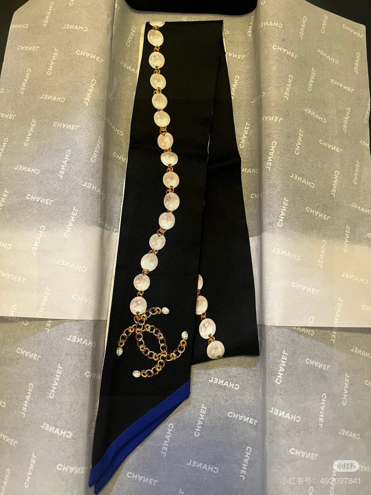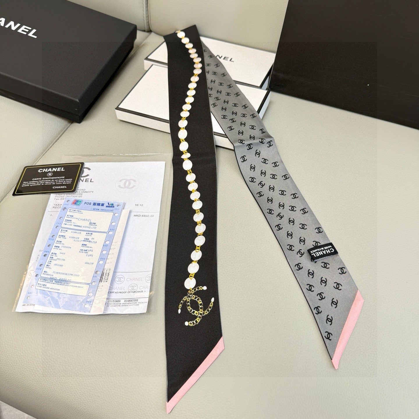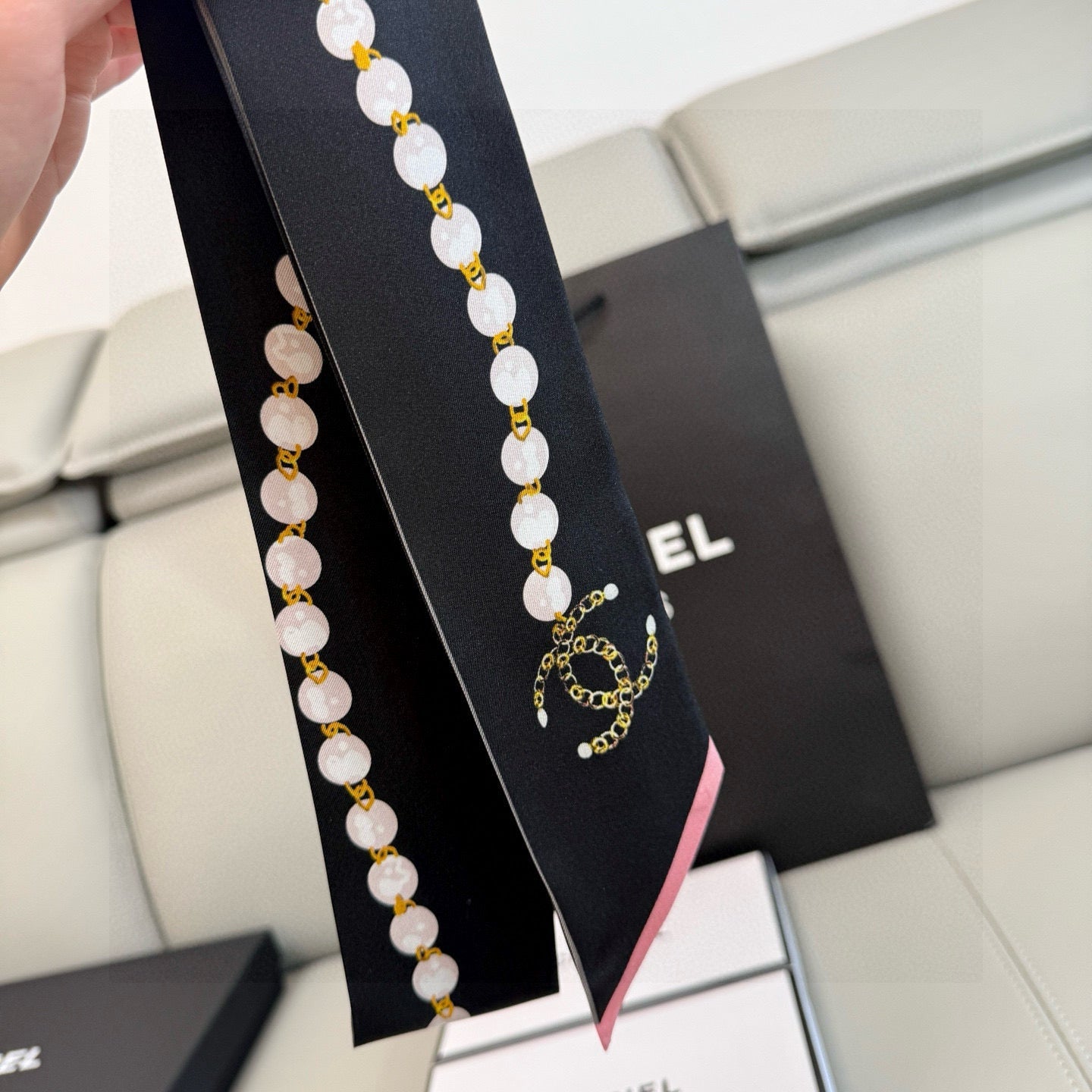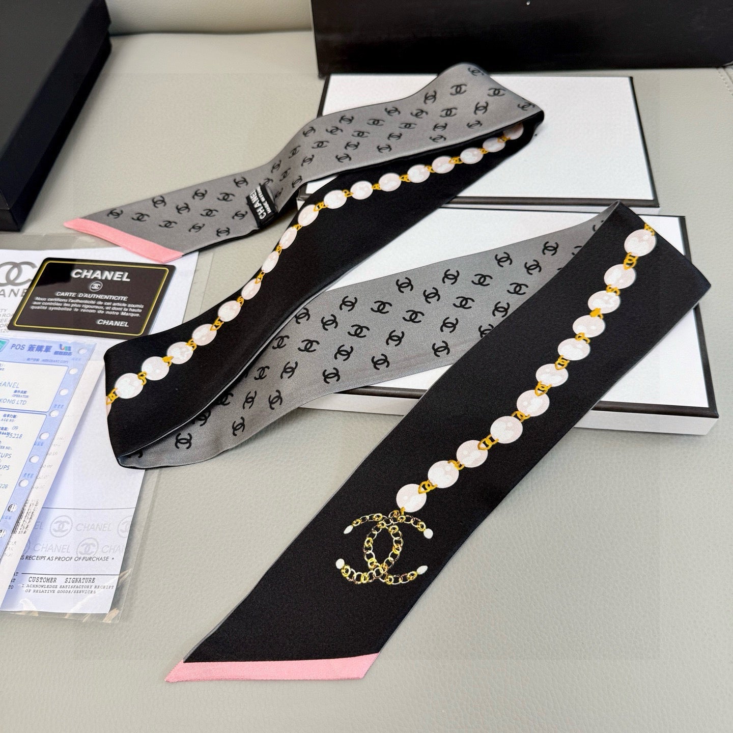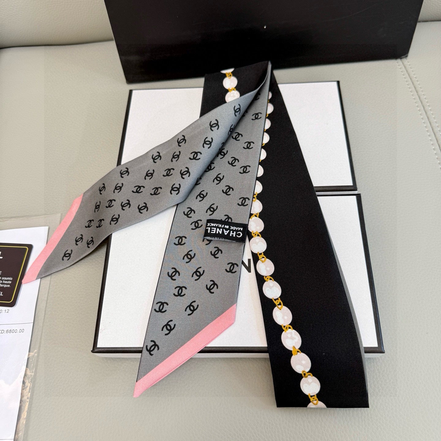 CC  Twilly Mini Star 120cm Gray Black Mulberry Silk 935262