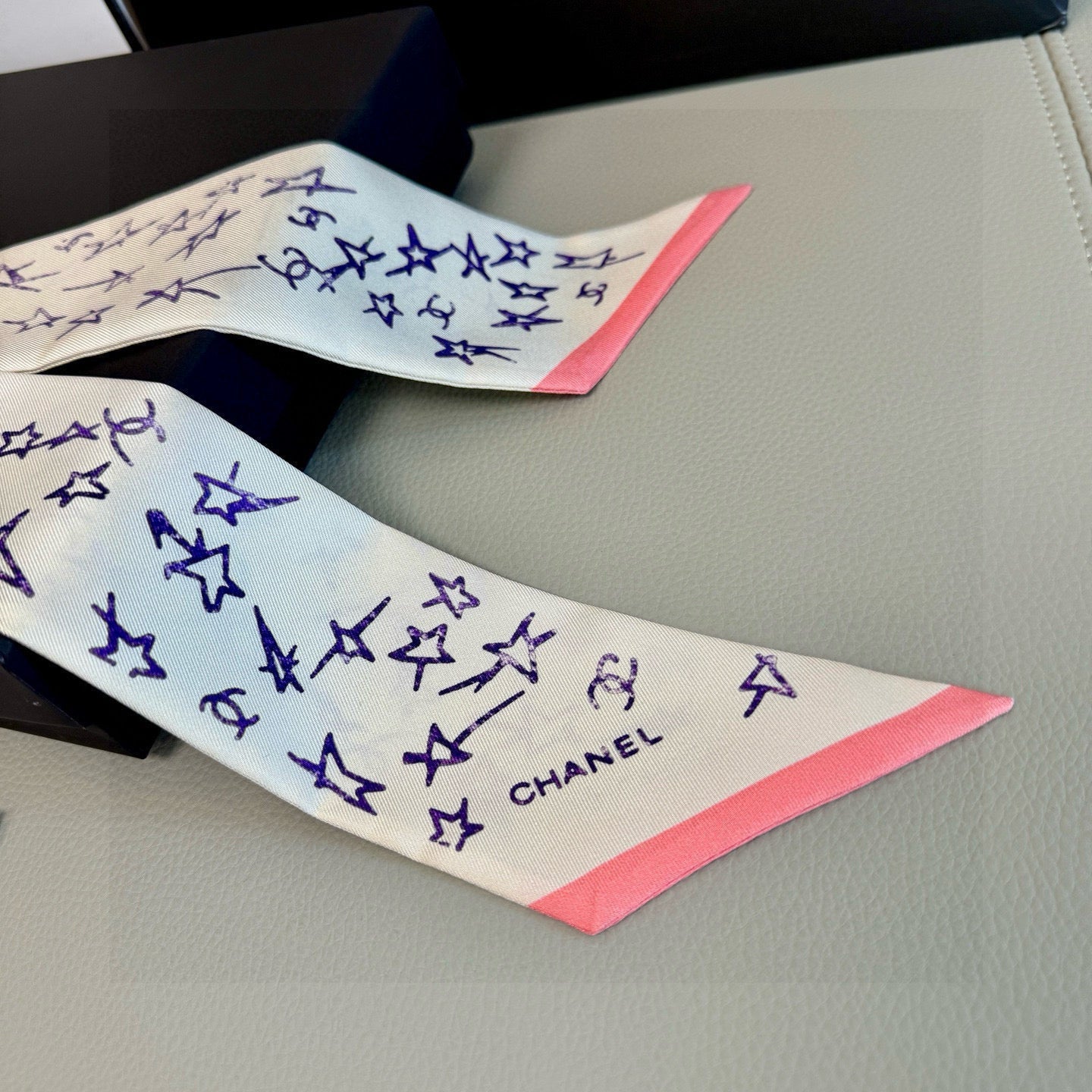 CC  Twilly Mini Star 120cm White Blue Mulberry Silk 941930