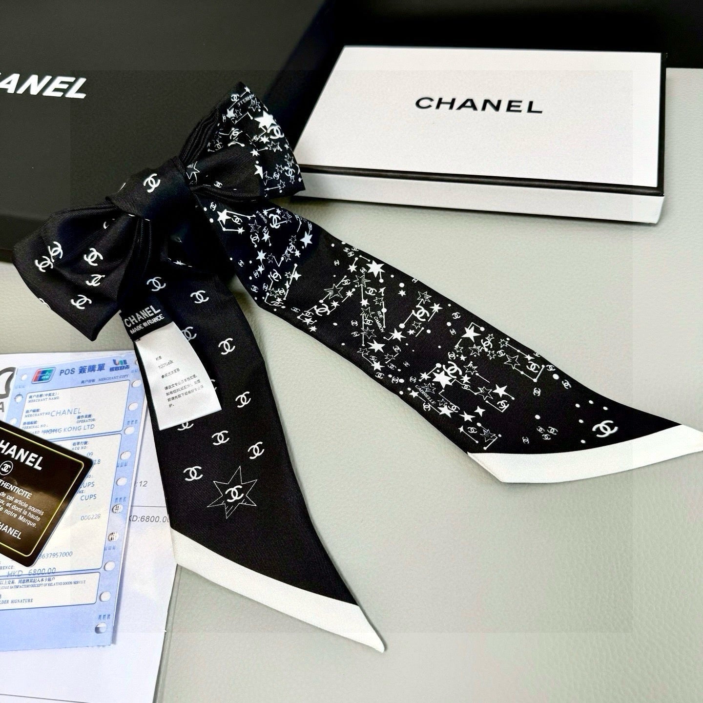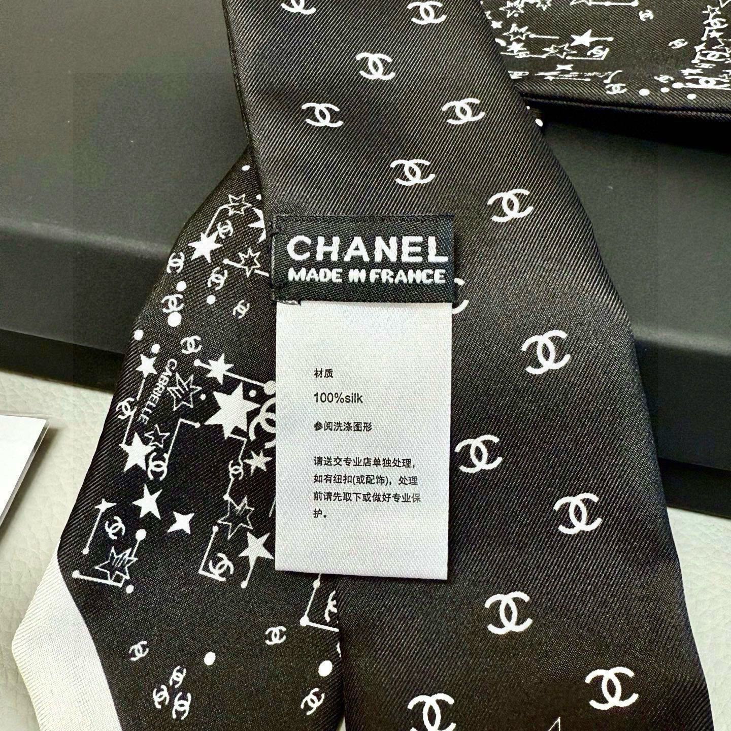 CC  Twilly Mini Star Scarf 120cm Black Mulberry Silk 945724