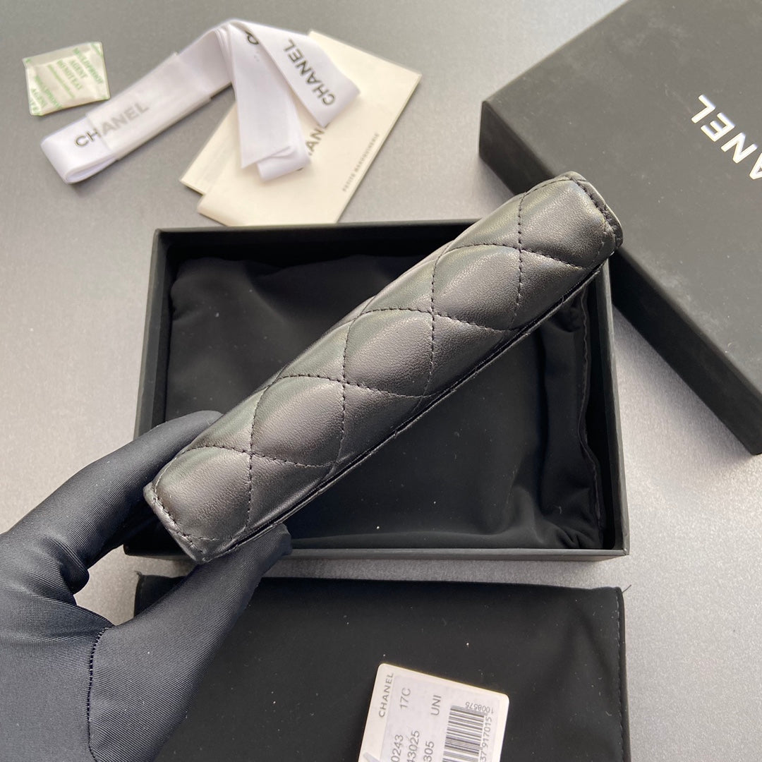 cc wallet 15cm black lambskin gold hardware