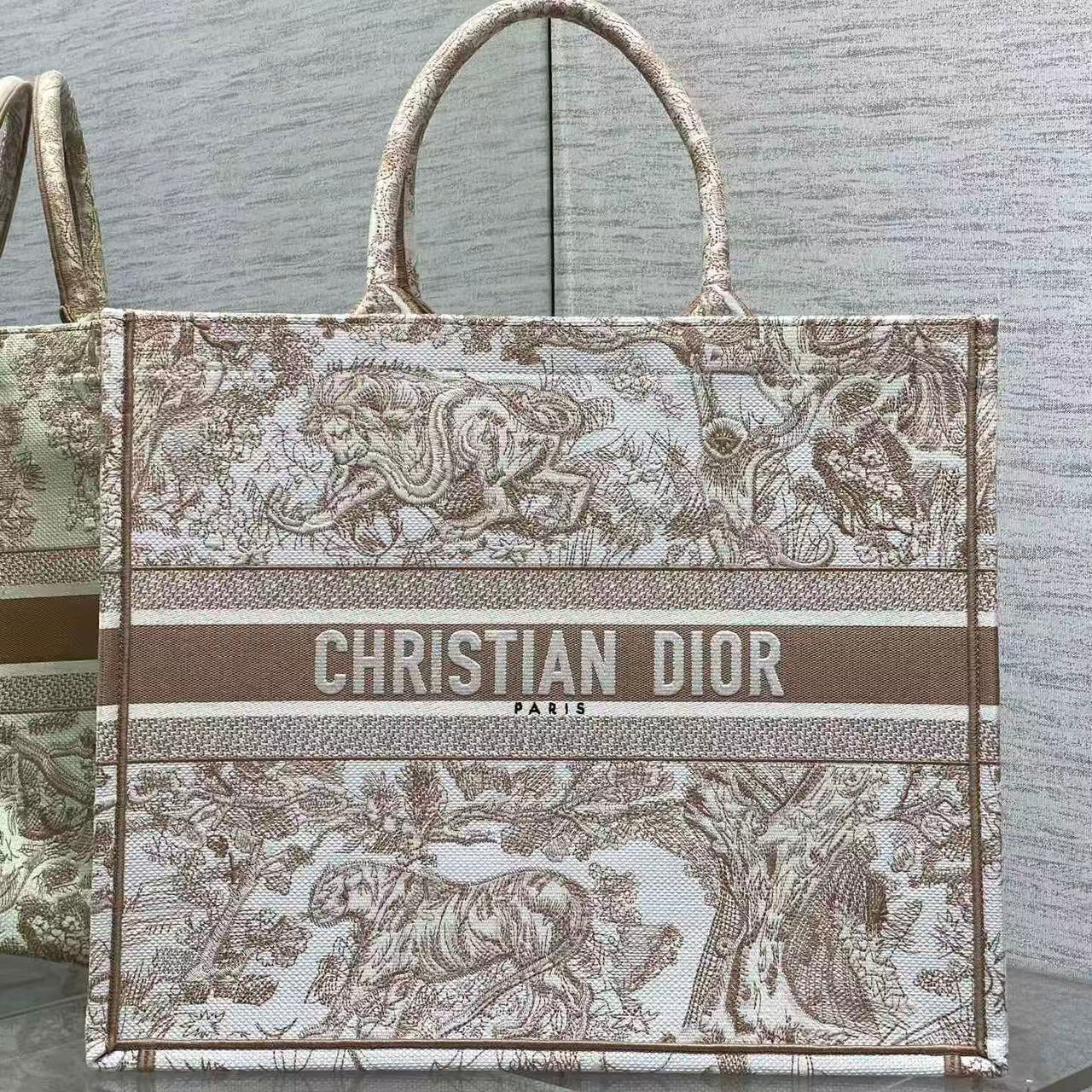 CD 2025 Book Tote 41cm Bag Brown White Canvas