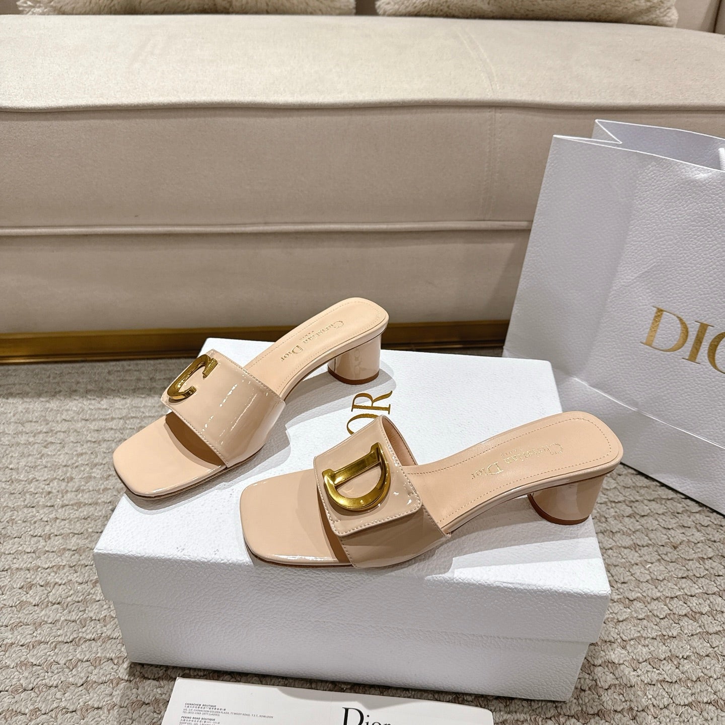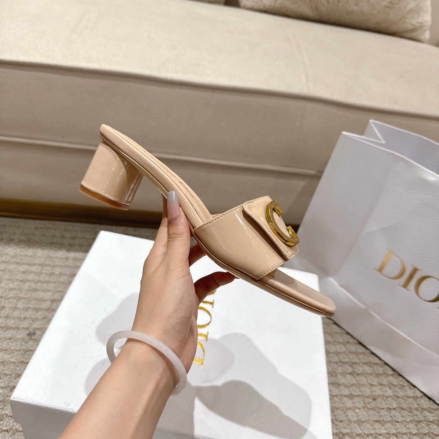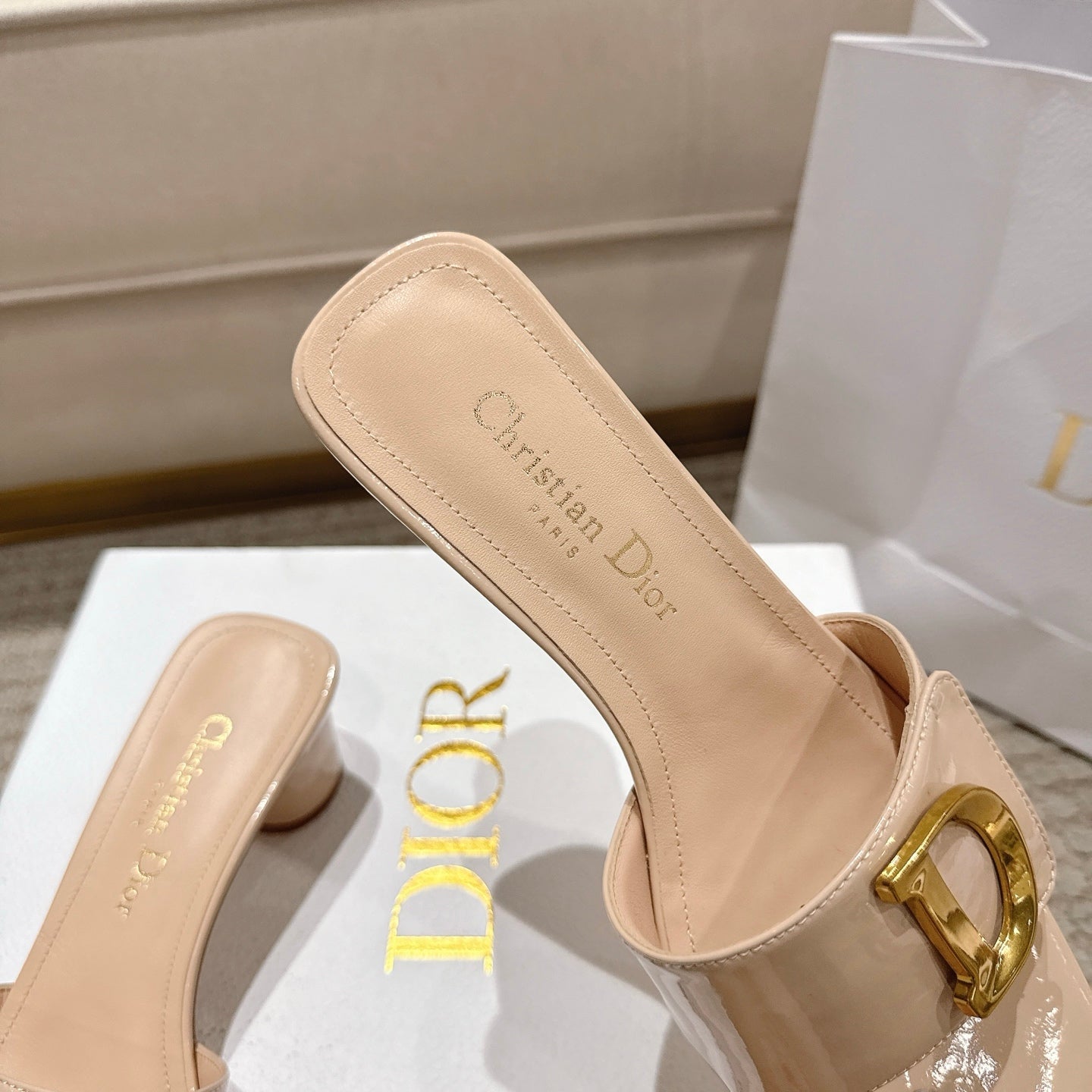 CD 25 C'EST DIO light beige patent leather 396128