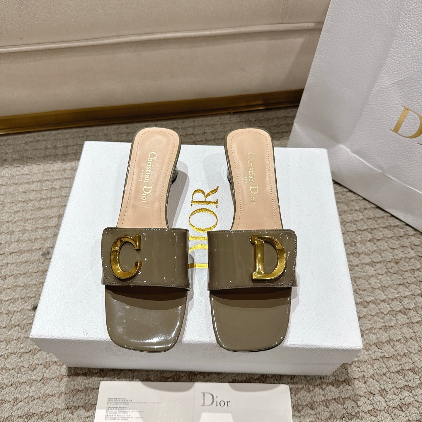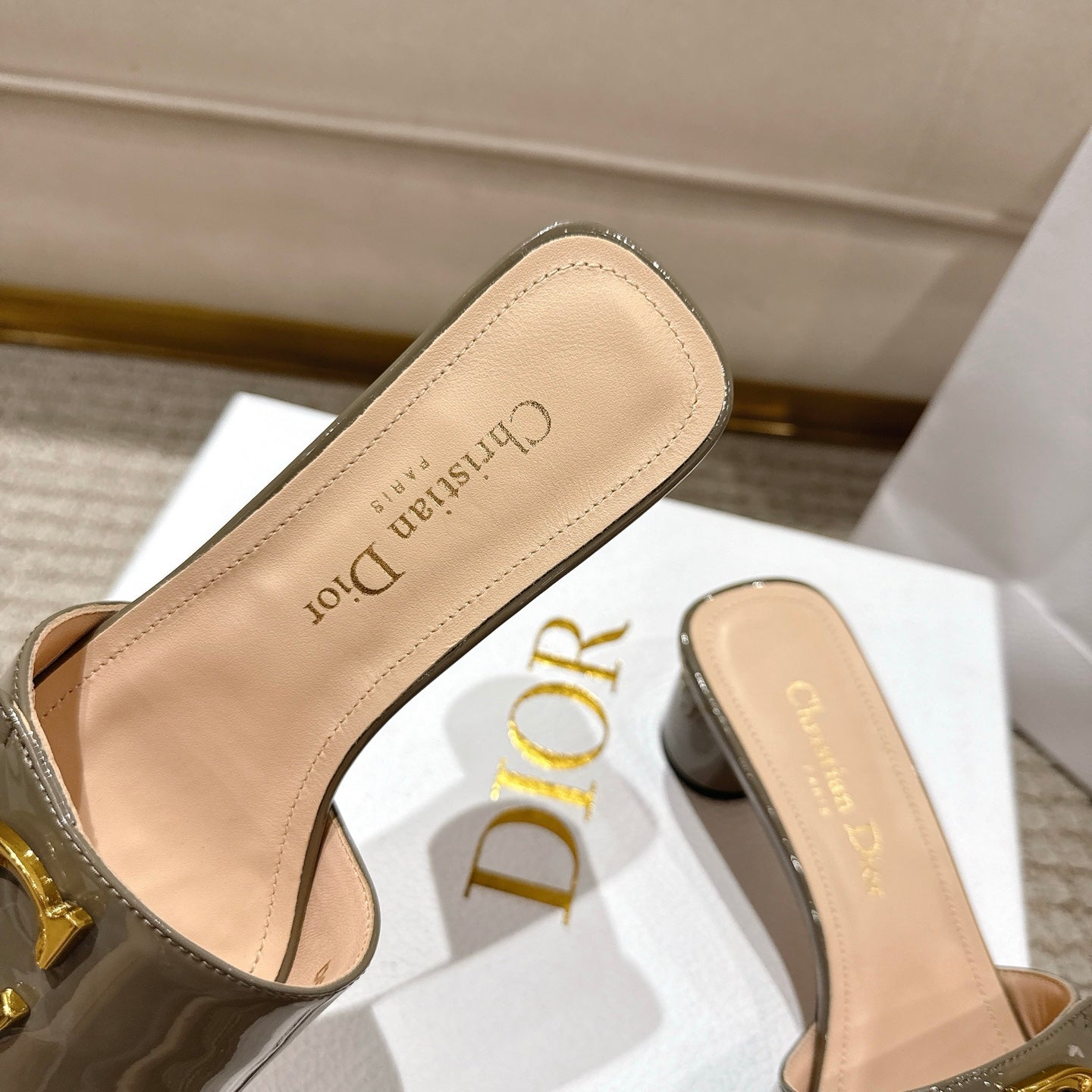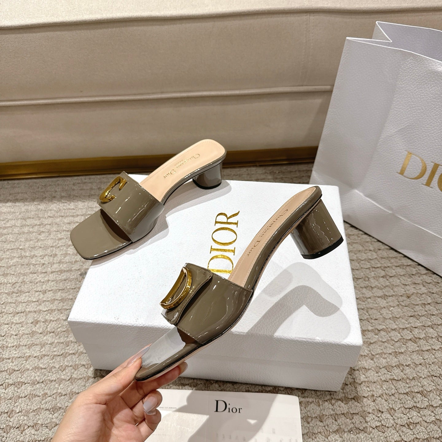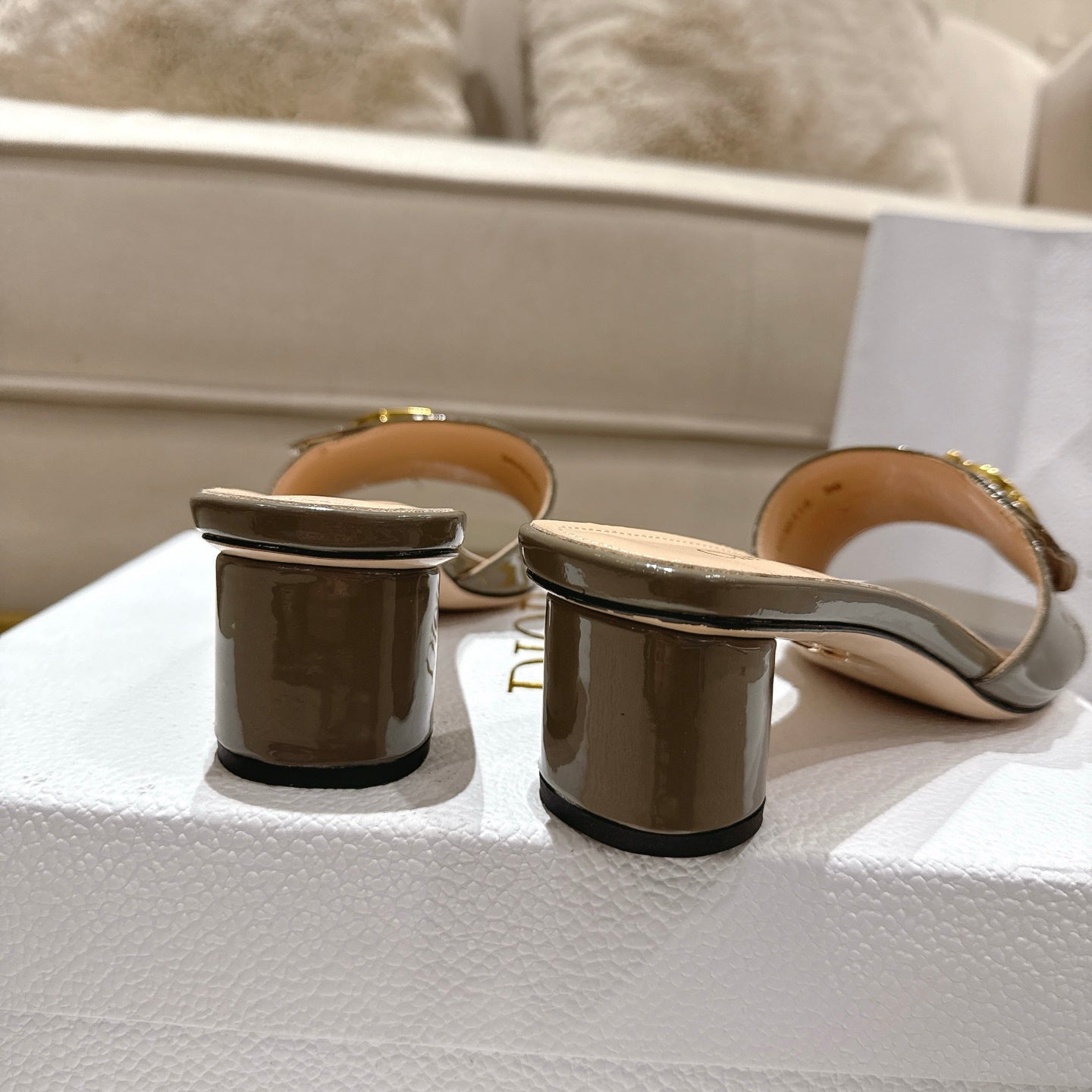 CD 25 C'EST DIO olive green patent leather 396127