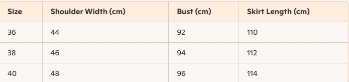 - For more information, please see the size guide below