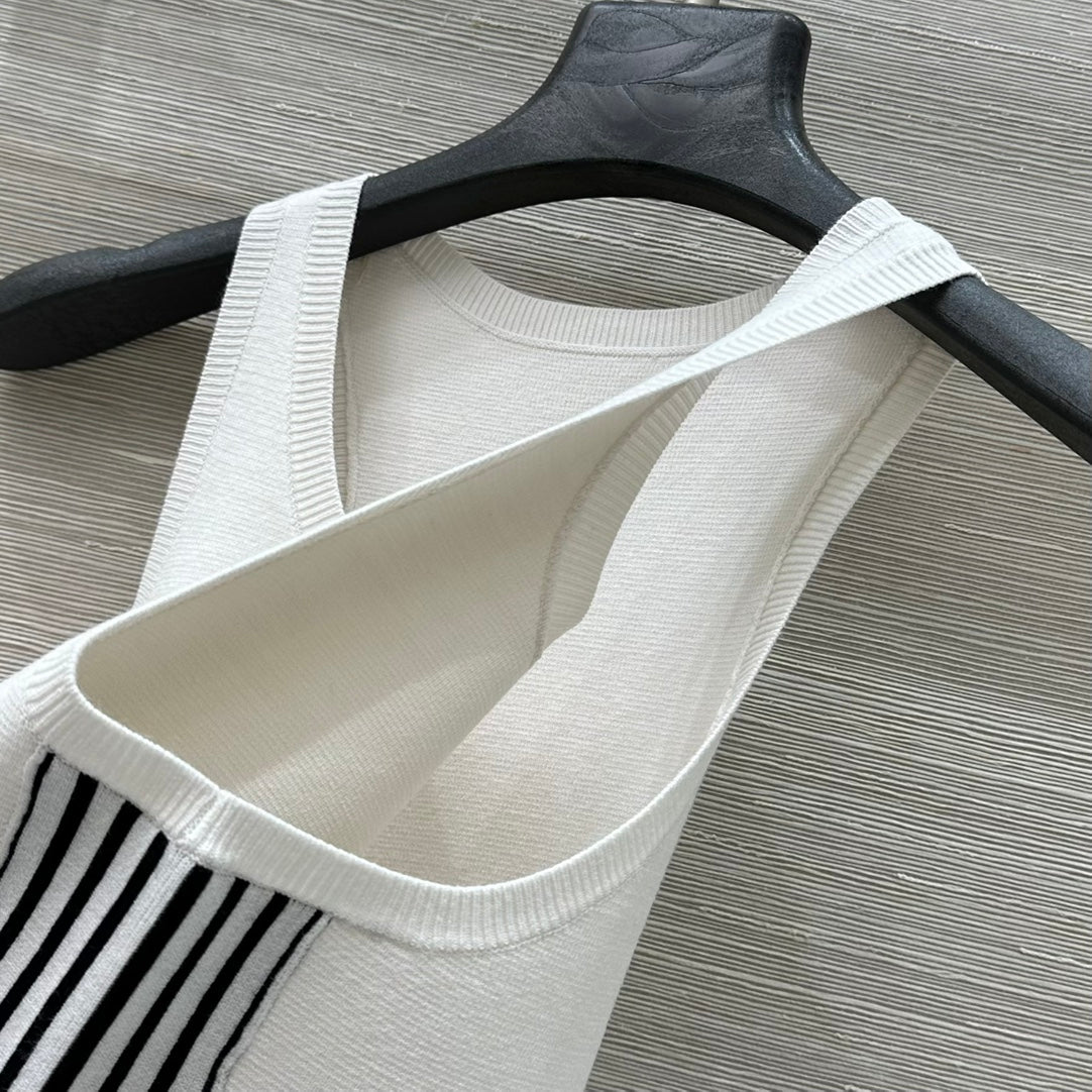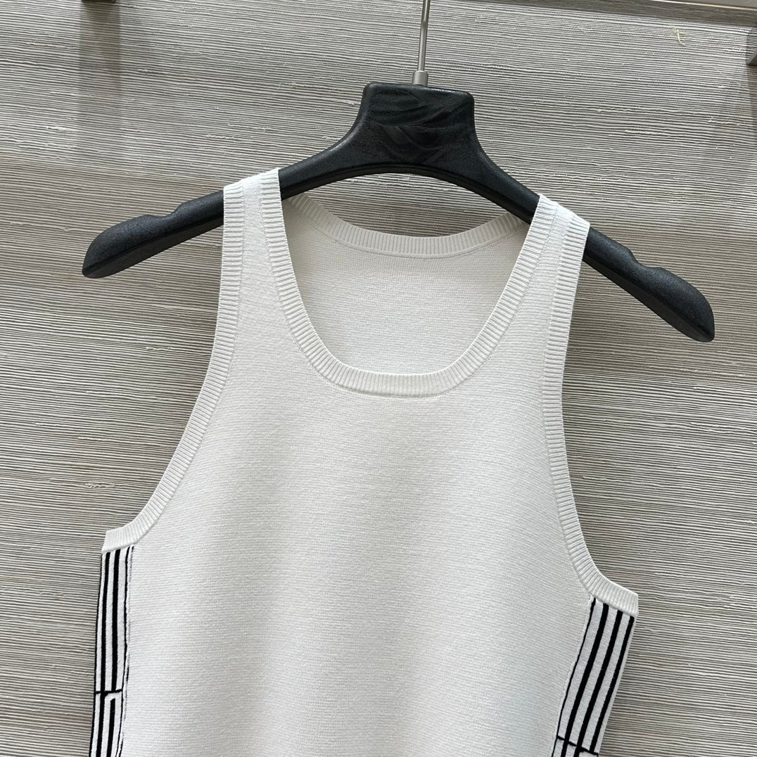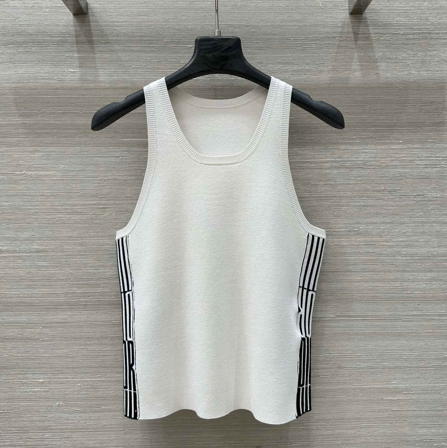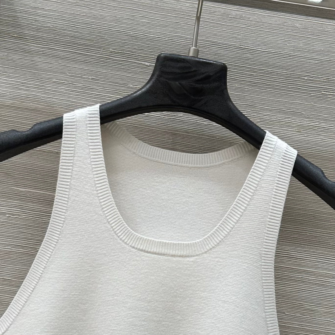CD 25 Embroidery Knitted Vest Top White Polyester Cotton