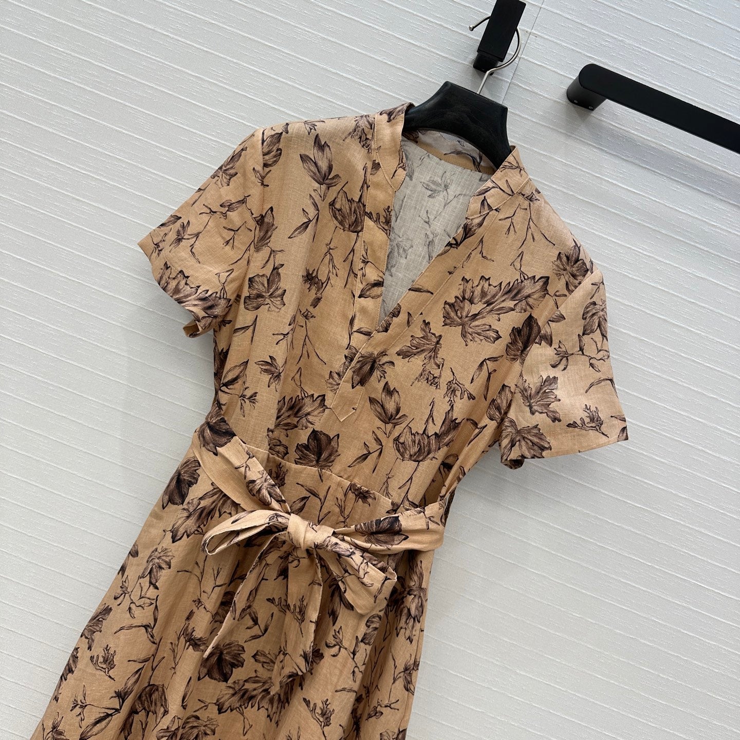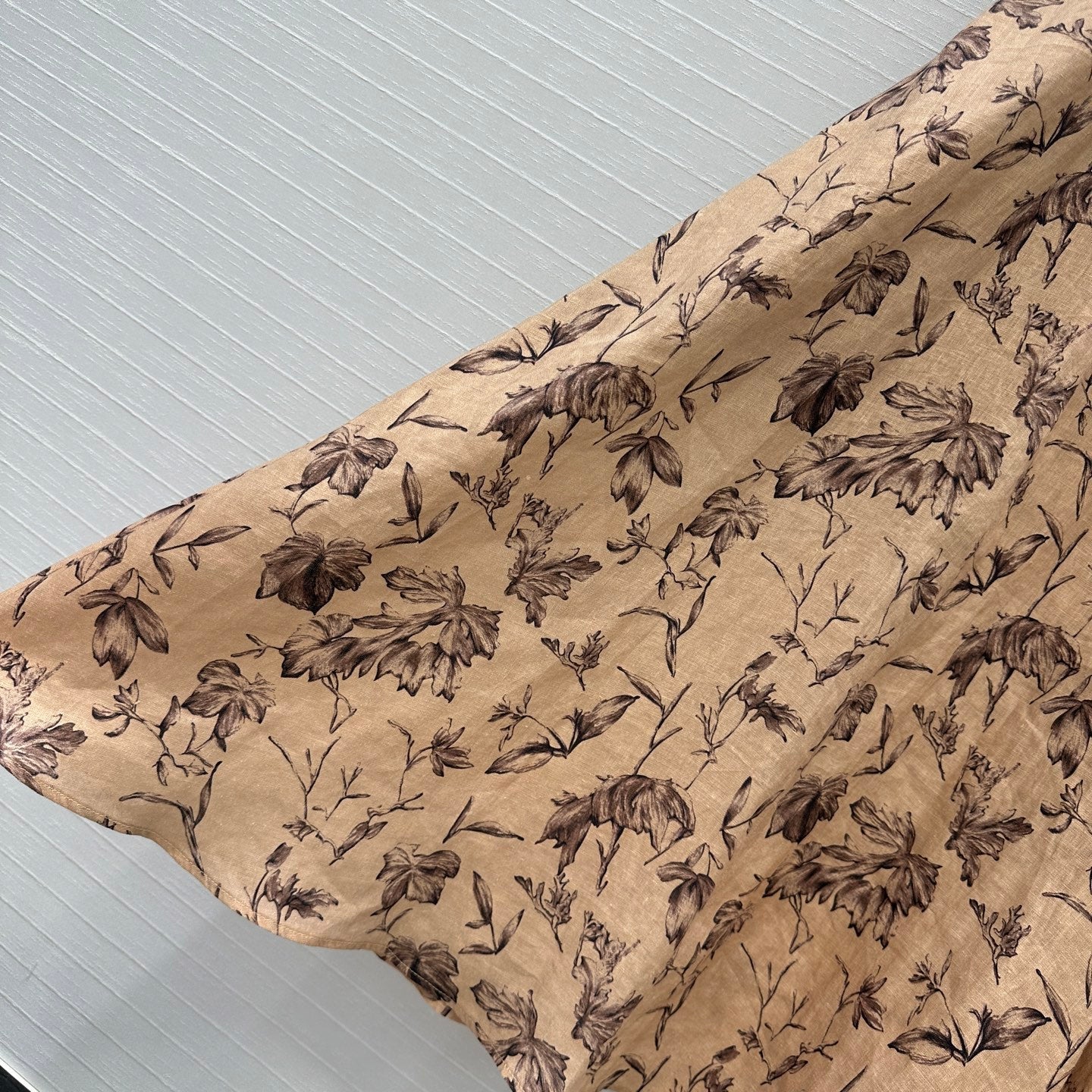 CD 25 Floral Print V-neck Long Skirt Beige mix Dark Brown Linen