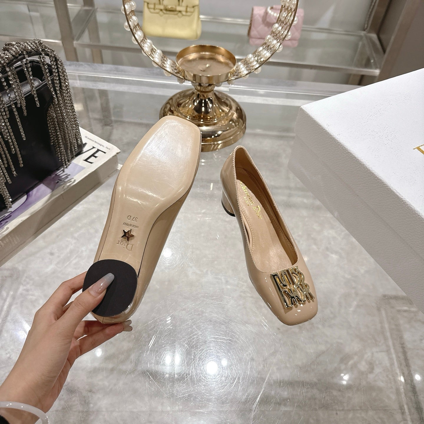 CD 25 Pump Heel Height 3cm Cream Patent Leather 393412