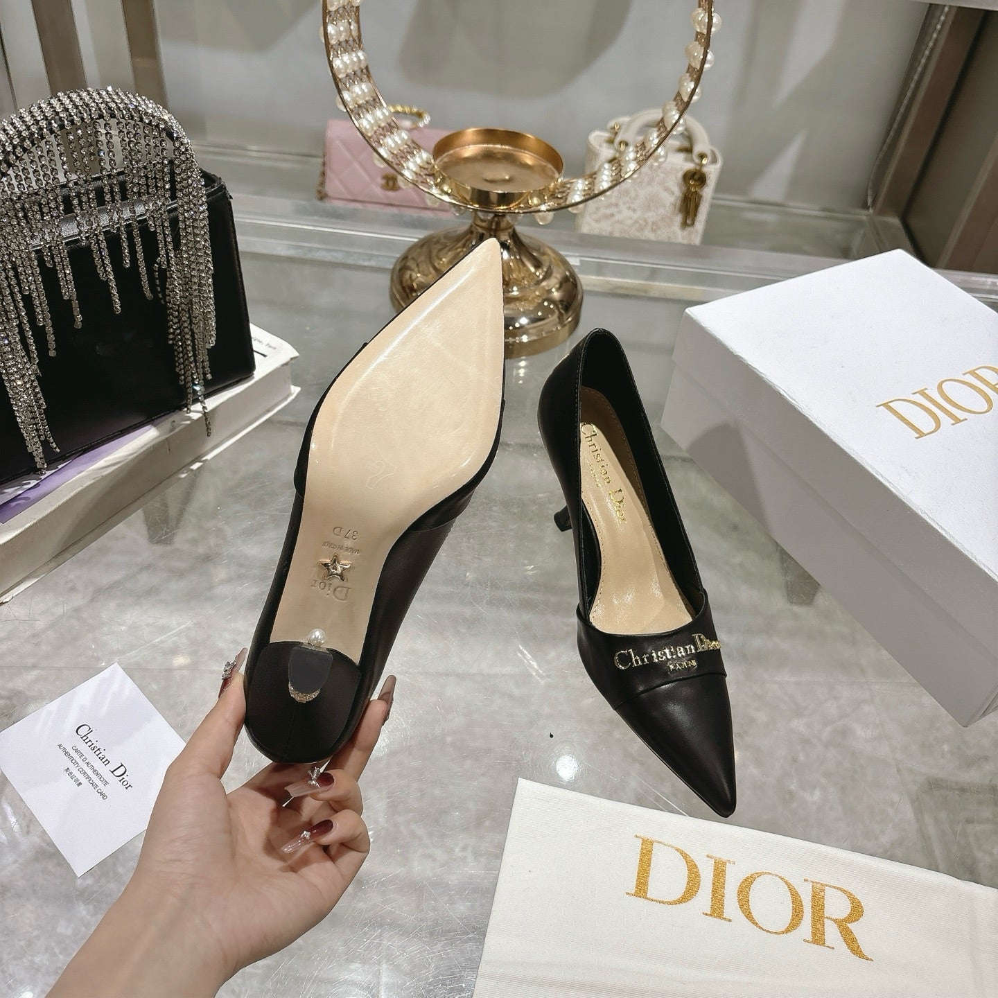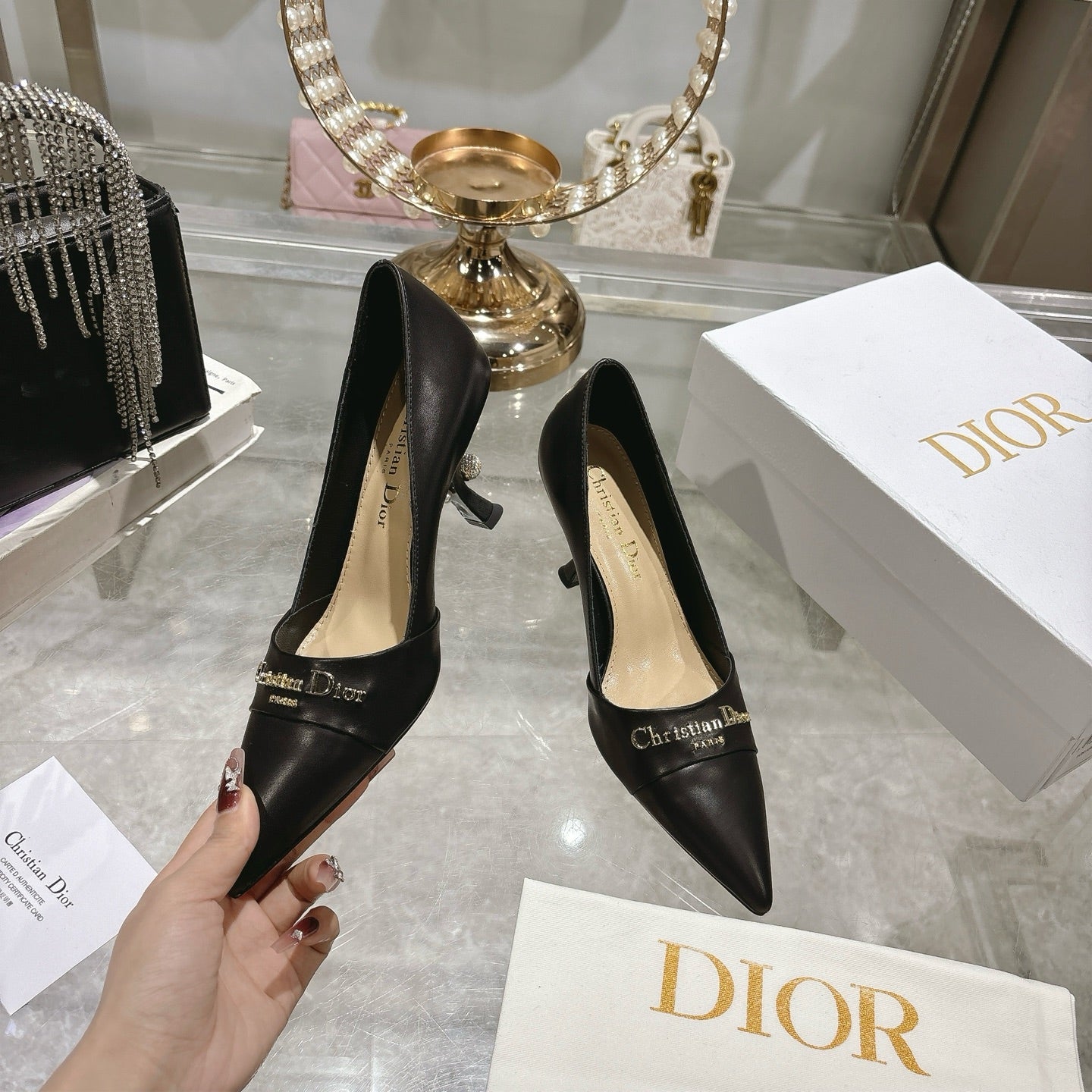 CD 25 Pump High Heels Black Leather 306925