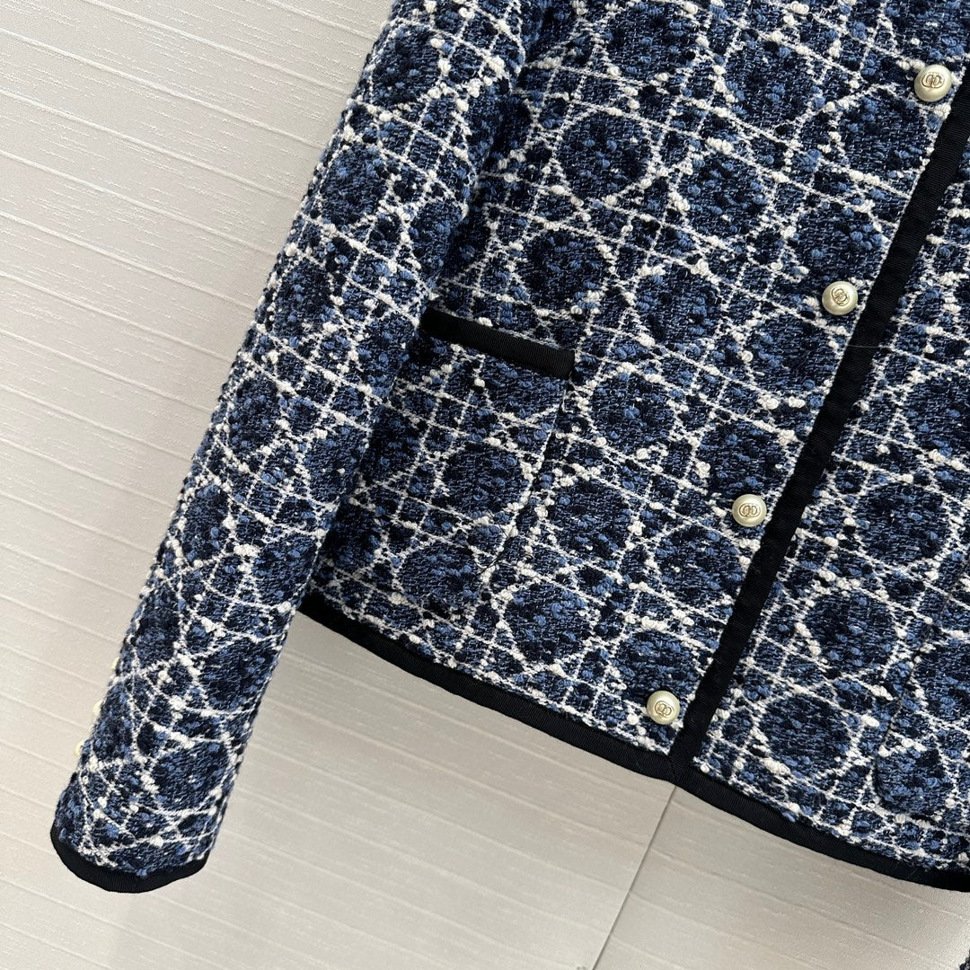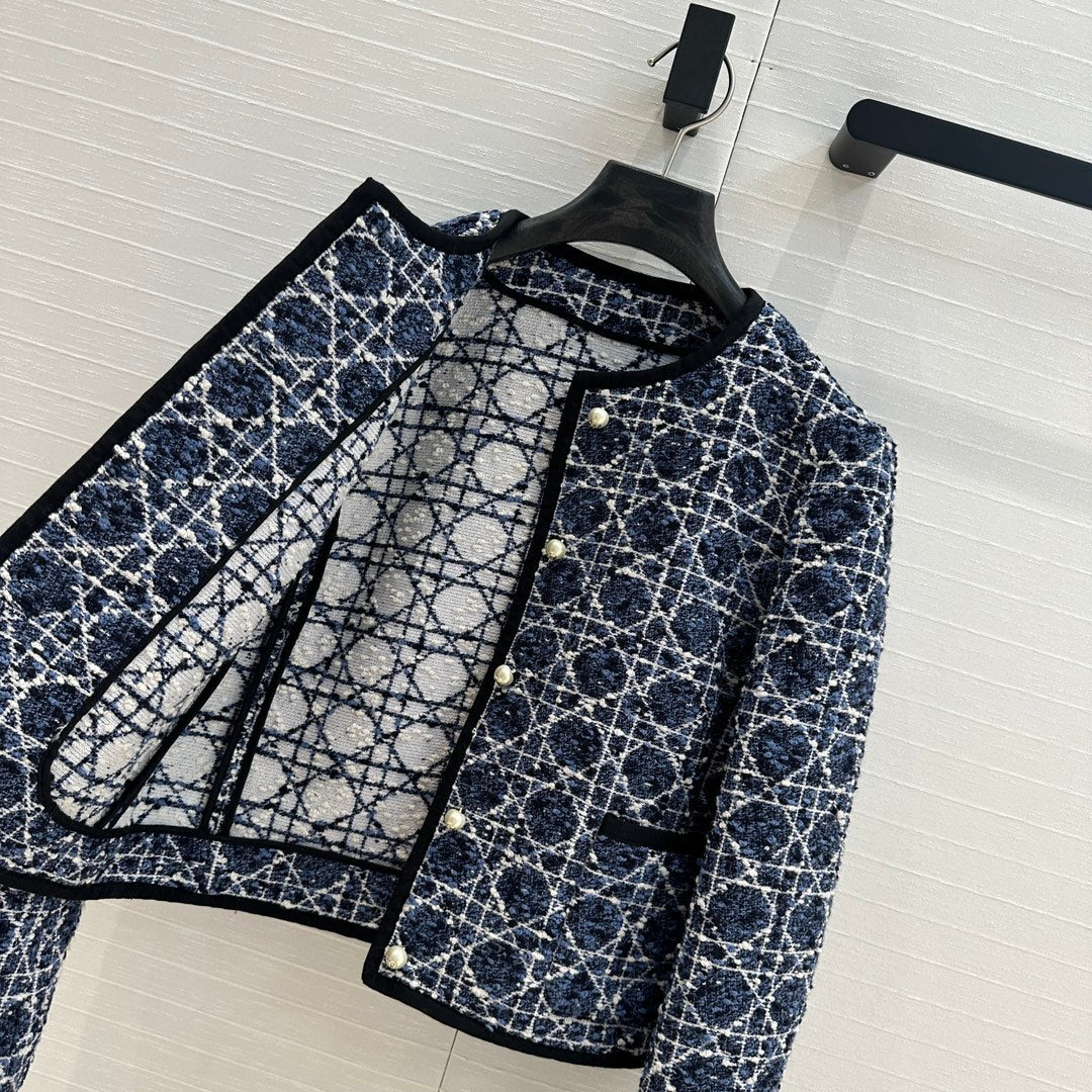 CD 25 Round Neck Suit Small Jacket Blue Cotton Silk
