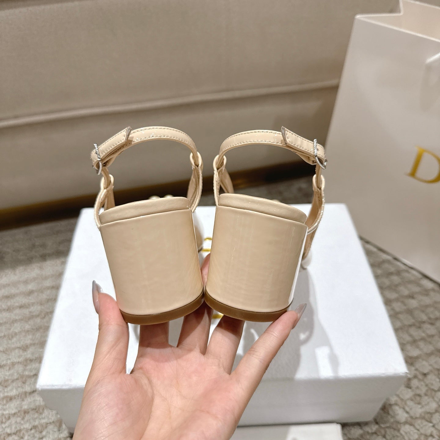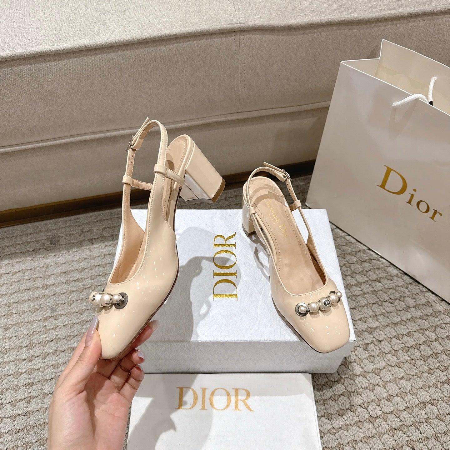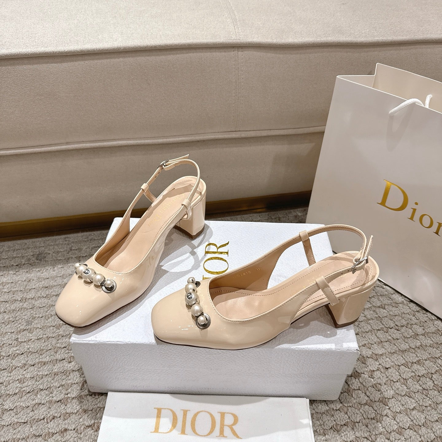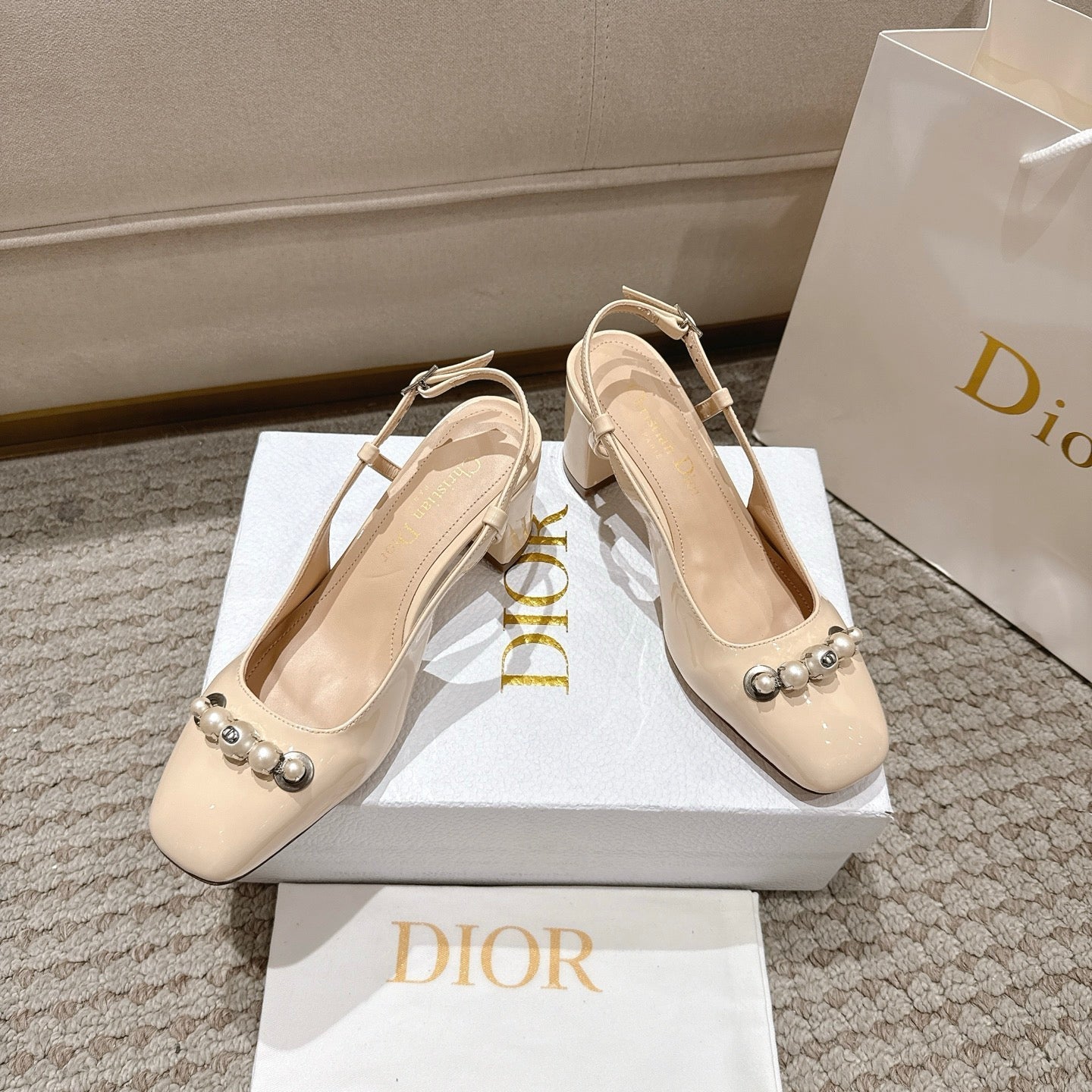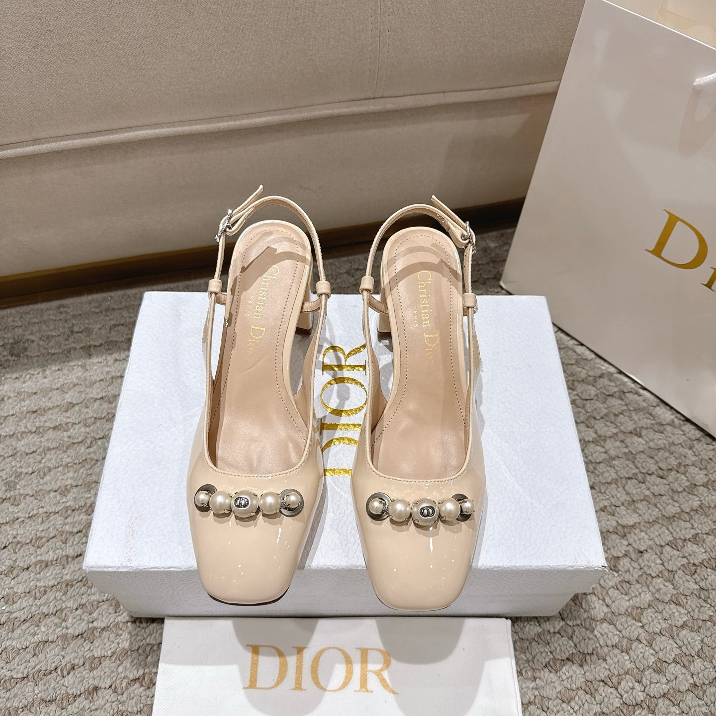 CD 25 slingback beige pearls patent leather 396118