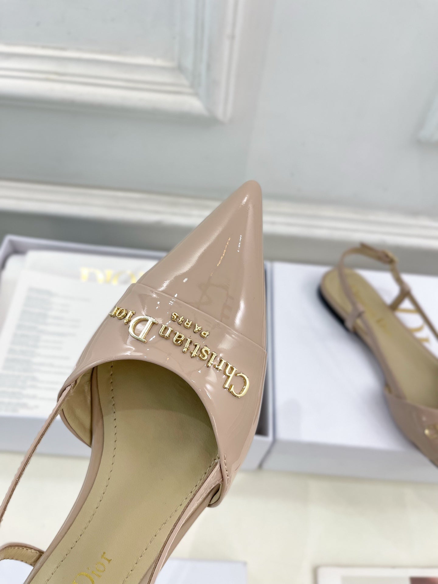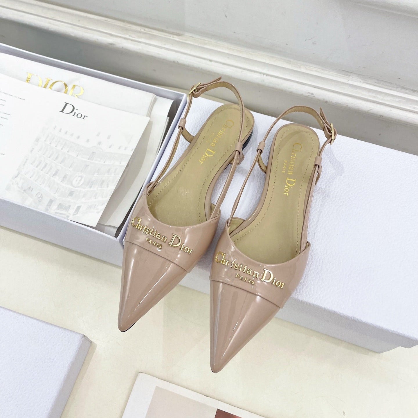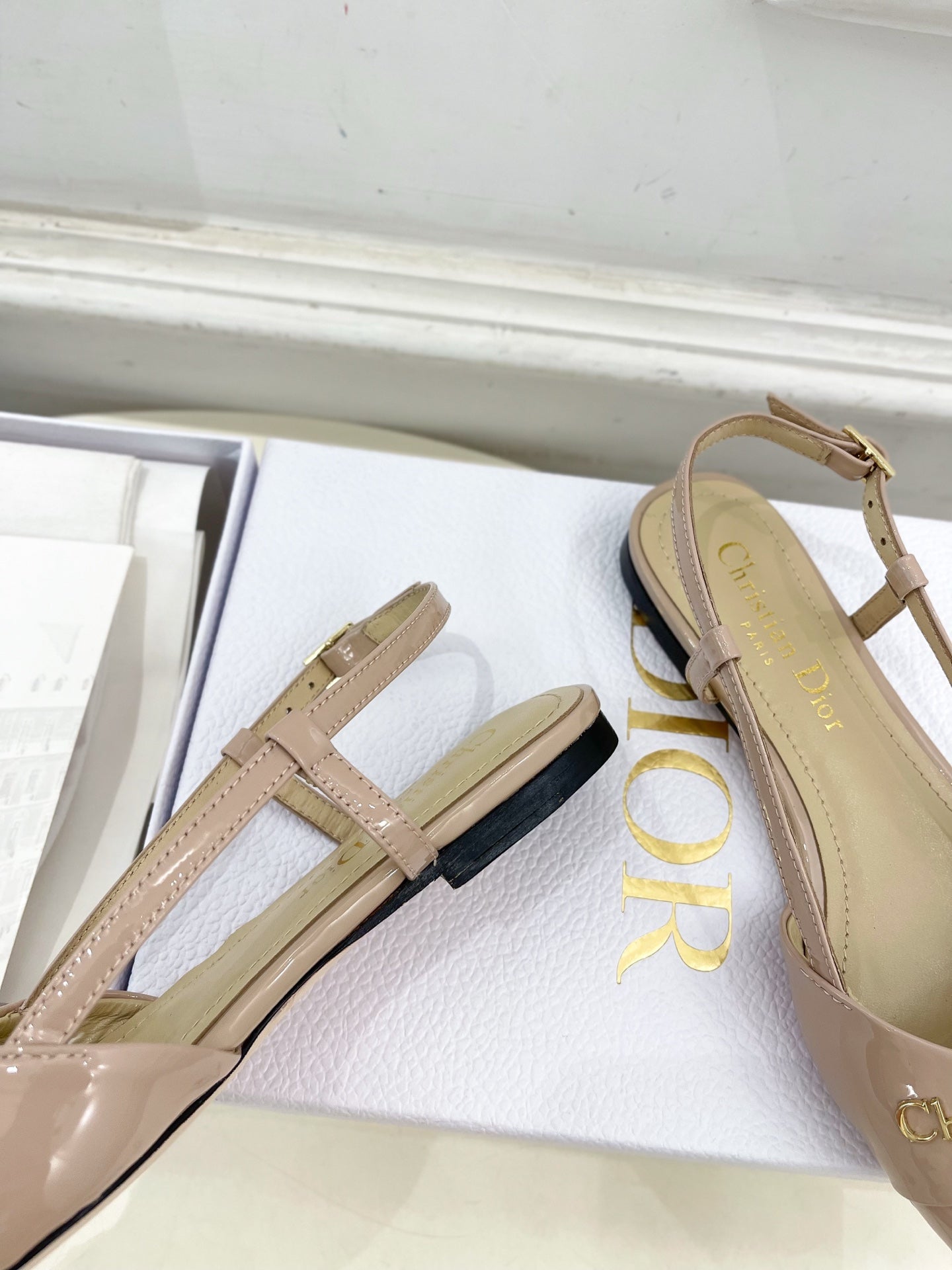 CD 25 Slingback Flat Nude Pink Patent Leather 307440