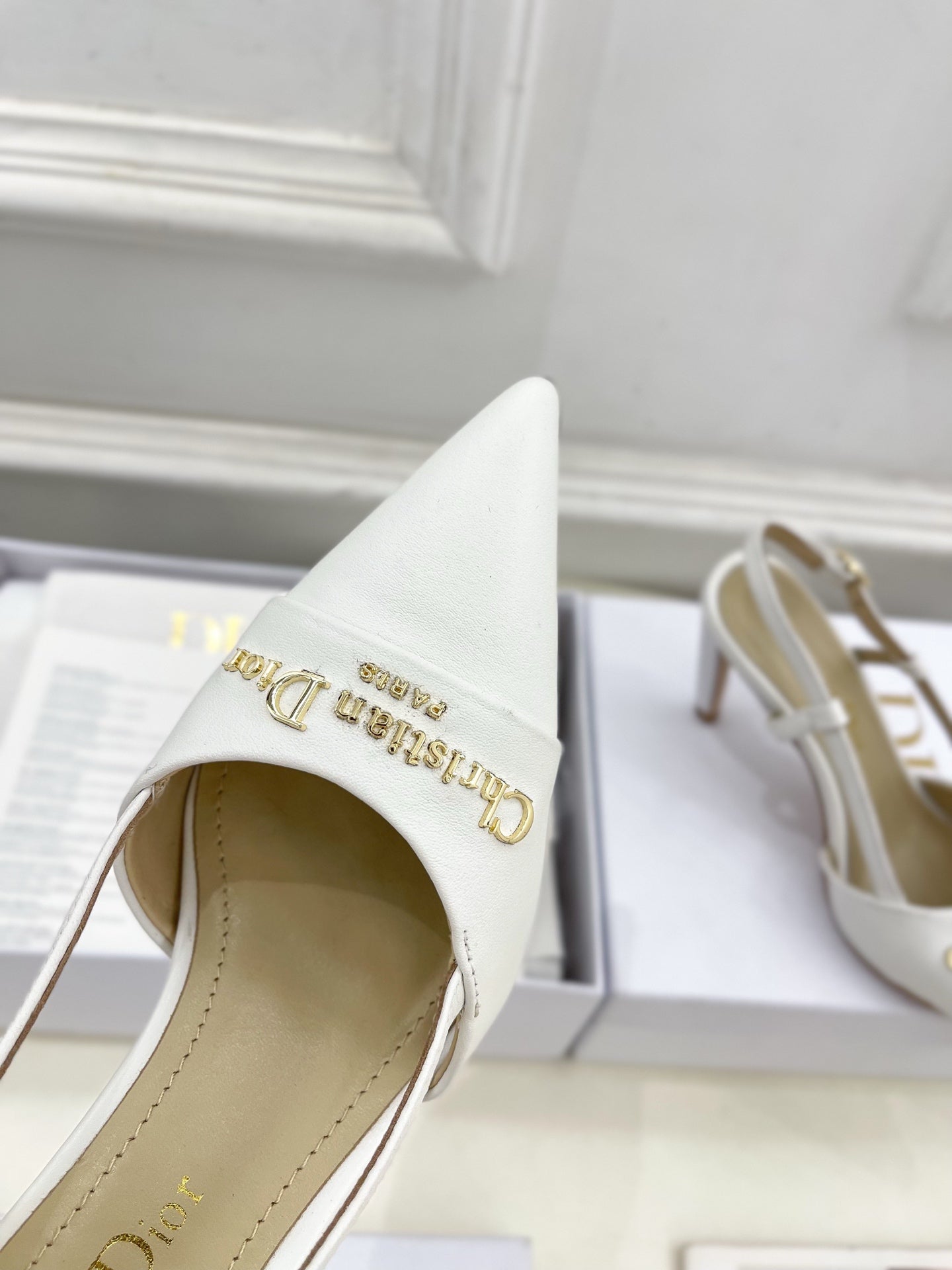 CD 25 Slingback Heel White Calfskin 307432