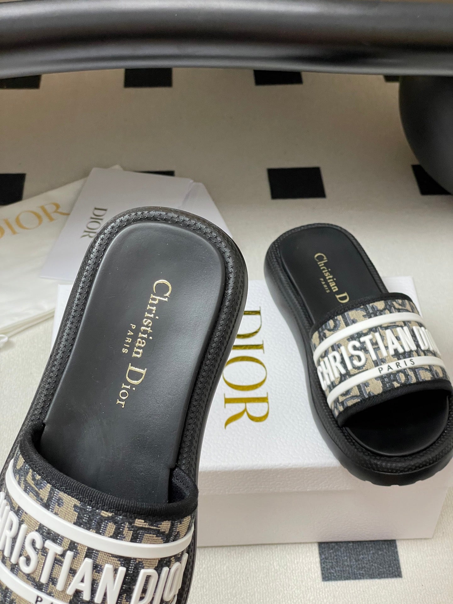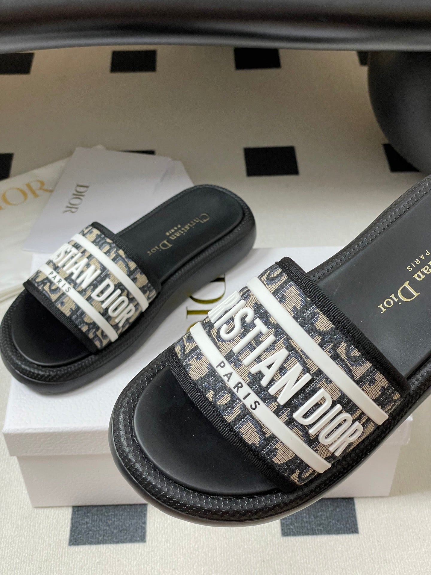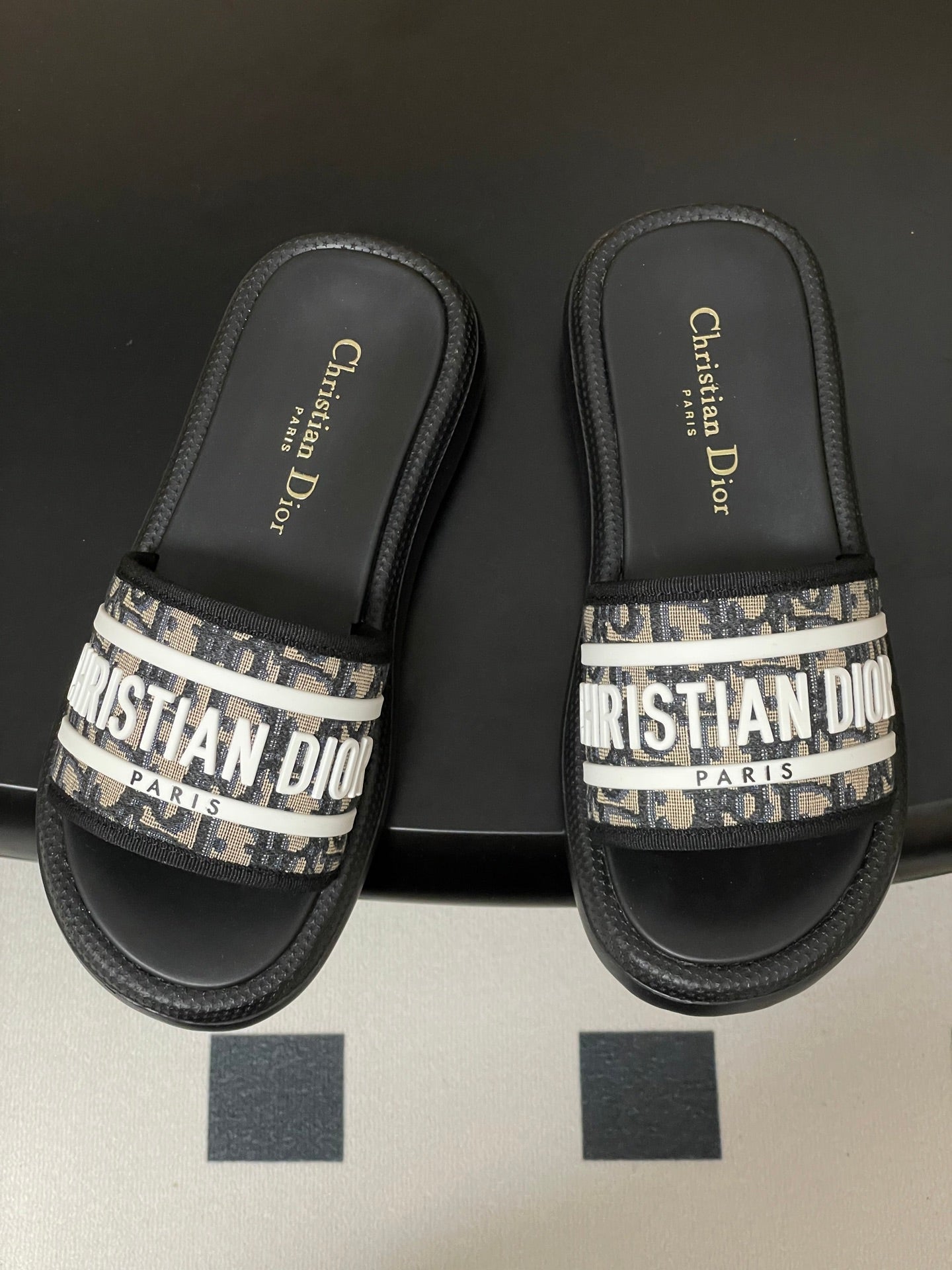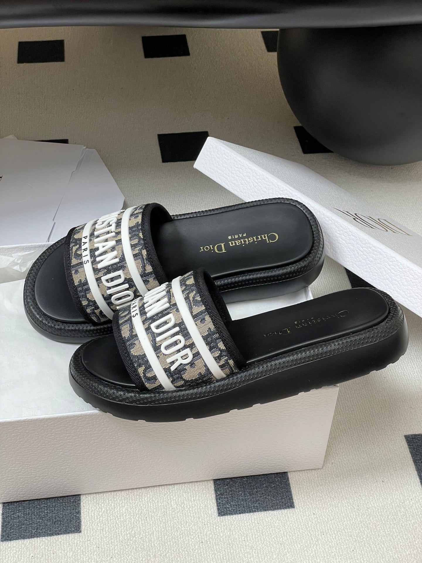 CD 25 Slippers Black White Fabric 394063