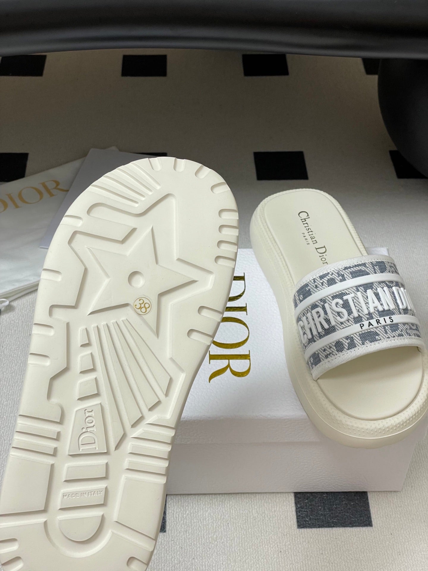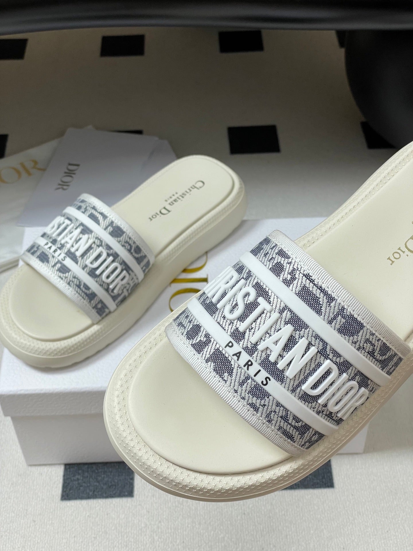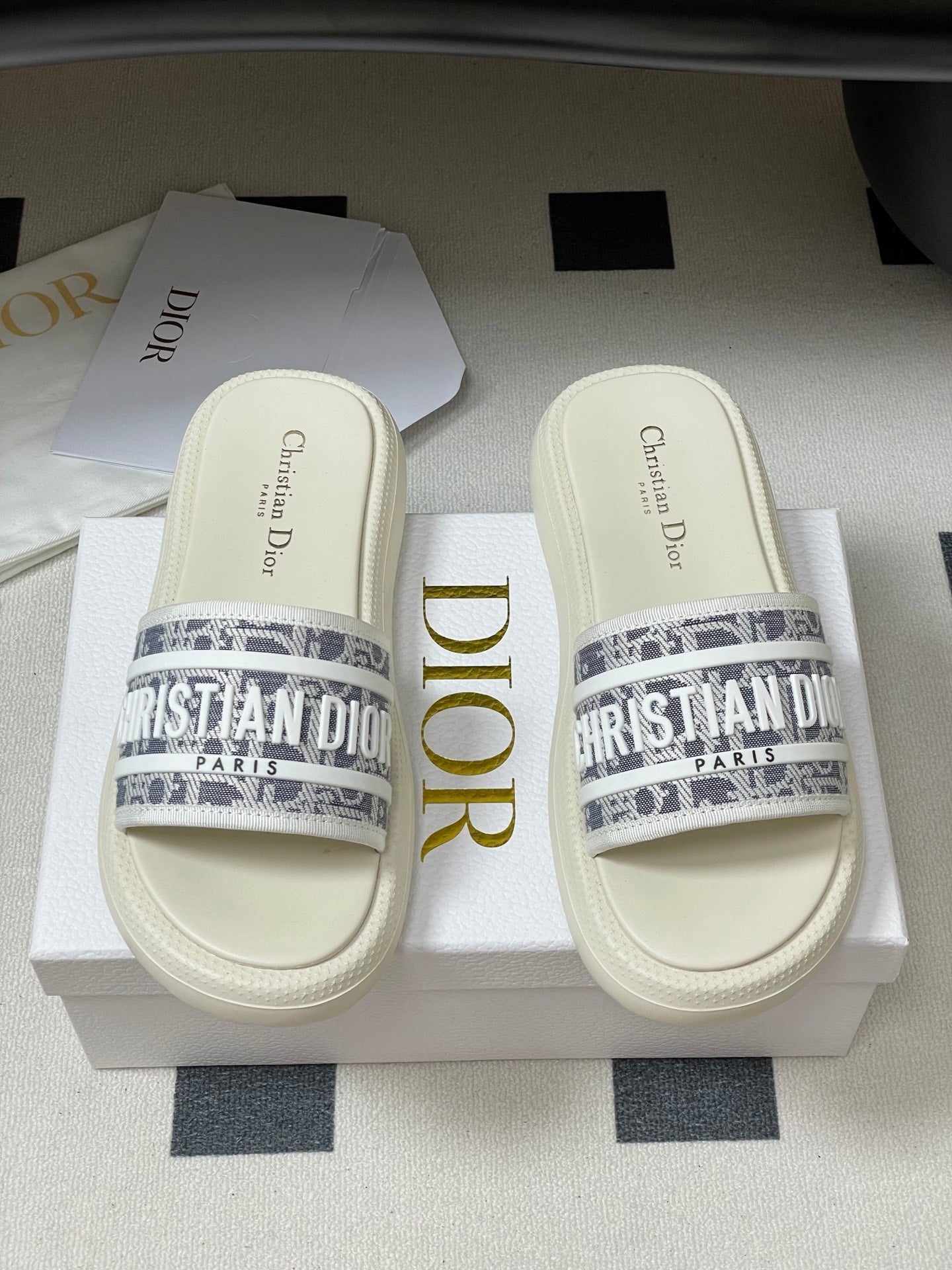 CD 25 Slippers White Gray Fabric 394062