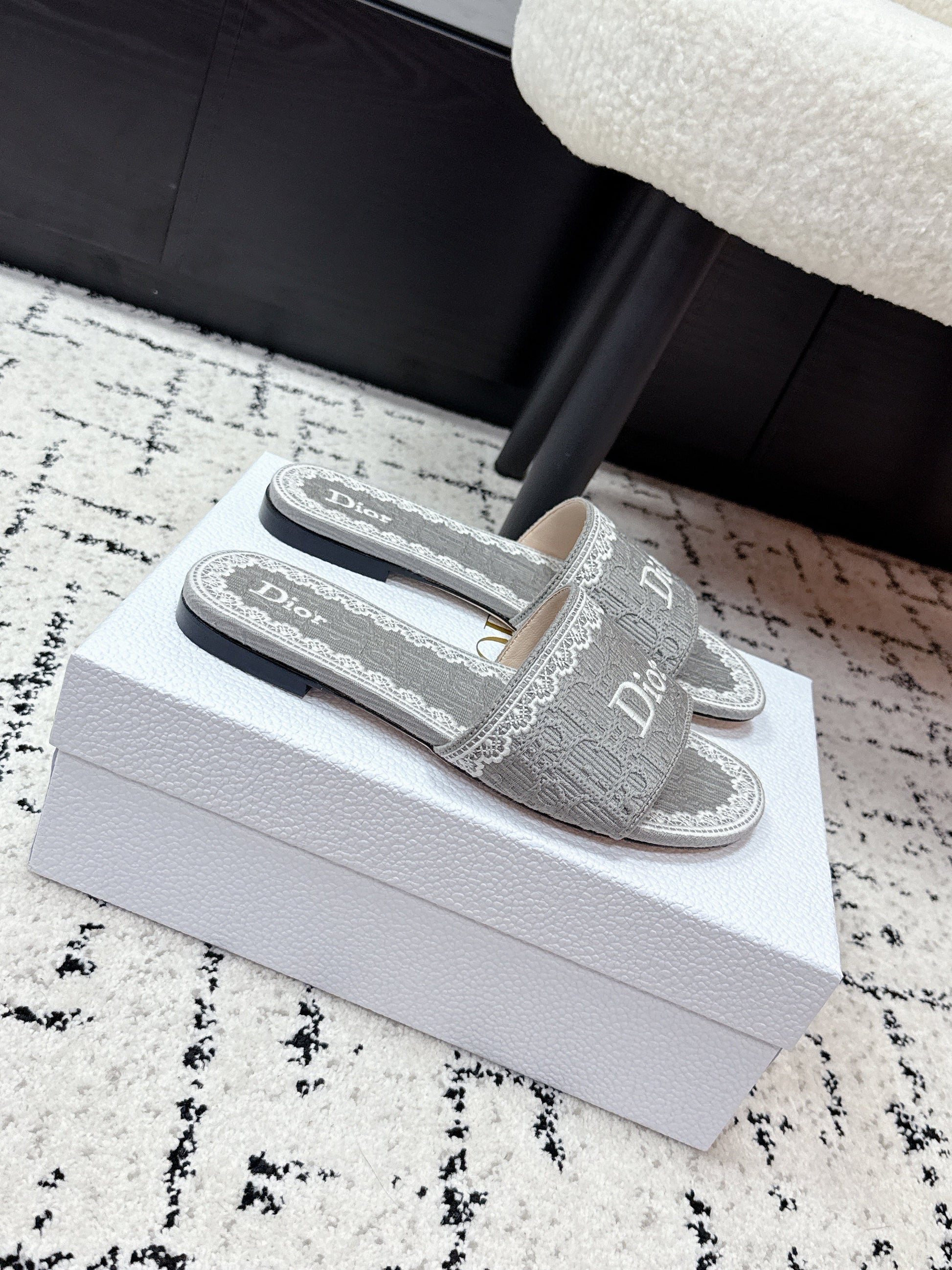 CD 26 Embroidered Slippers Gray Canvas 617080